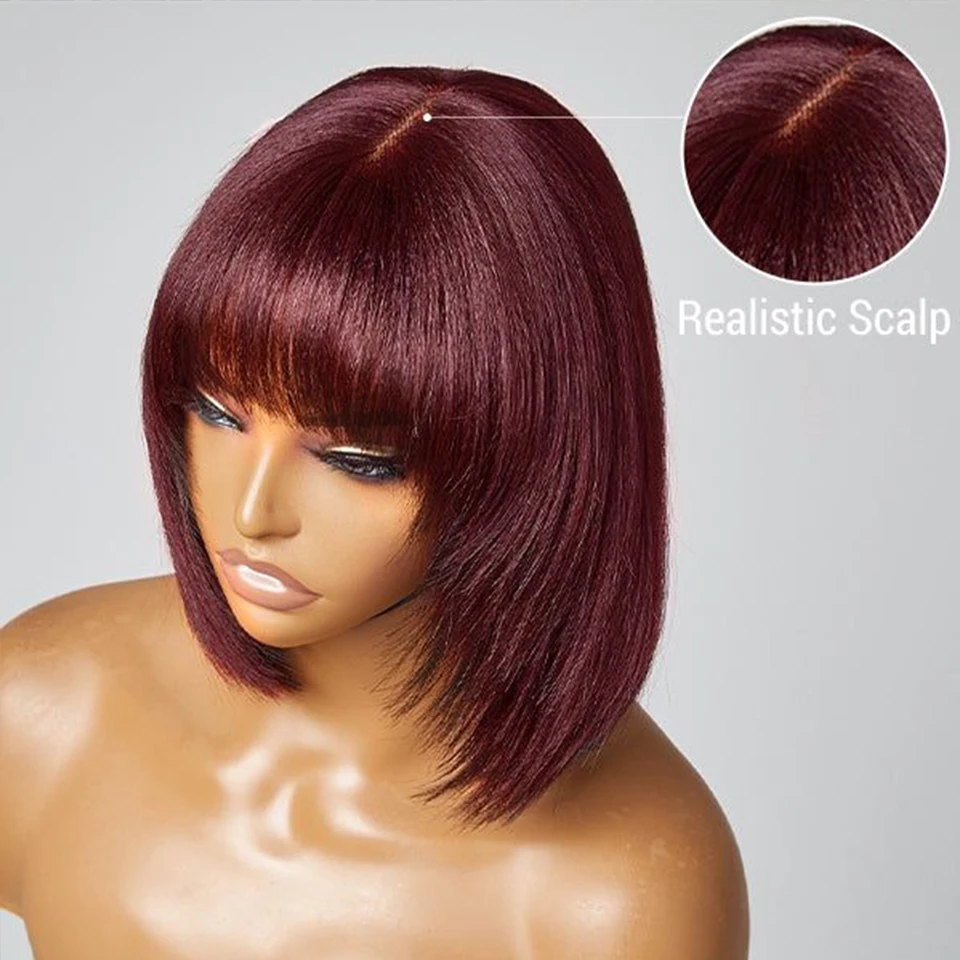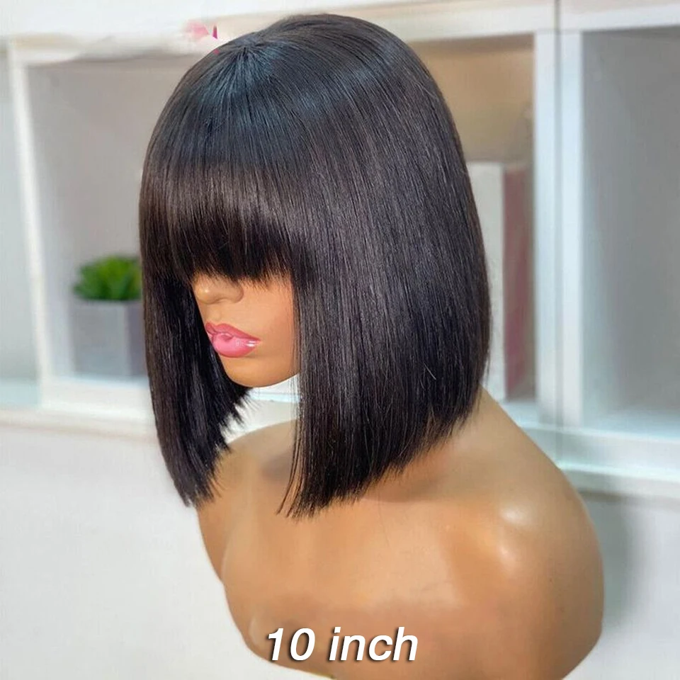 Straight Hair Bob Wigs Brazilian Human Hair Wig With Bangs Short Bob Wigs For Black Women Full Machine Made Wig Remy Hair Bobs
