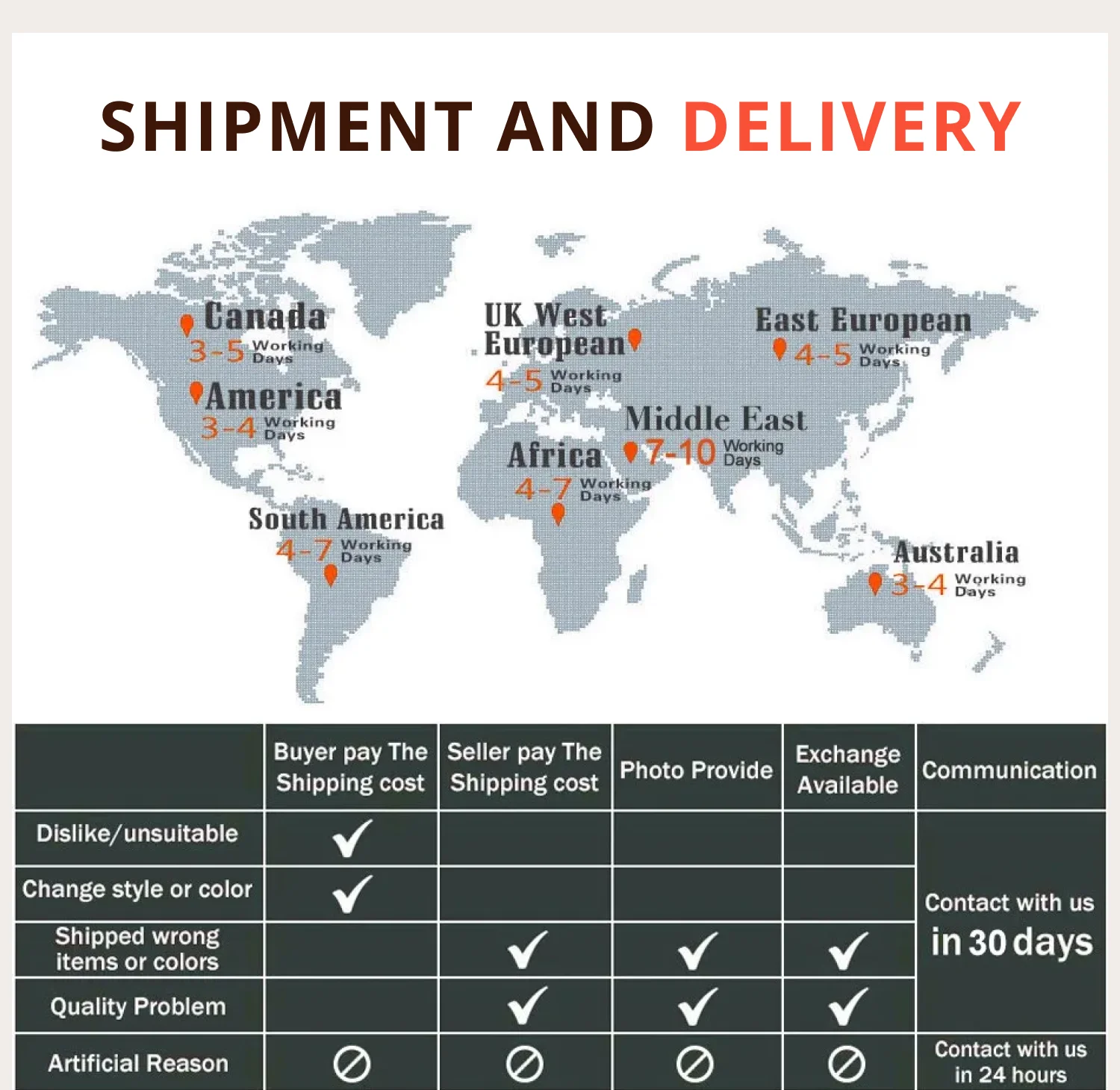 Delivery Time : 3-5 working days to US , Canada , 4-6 working days to European countries