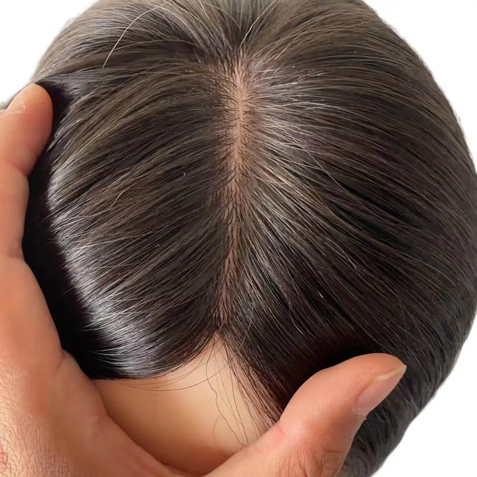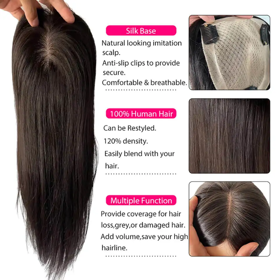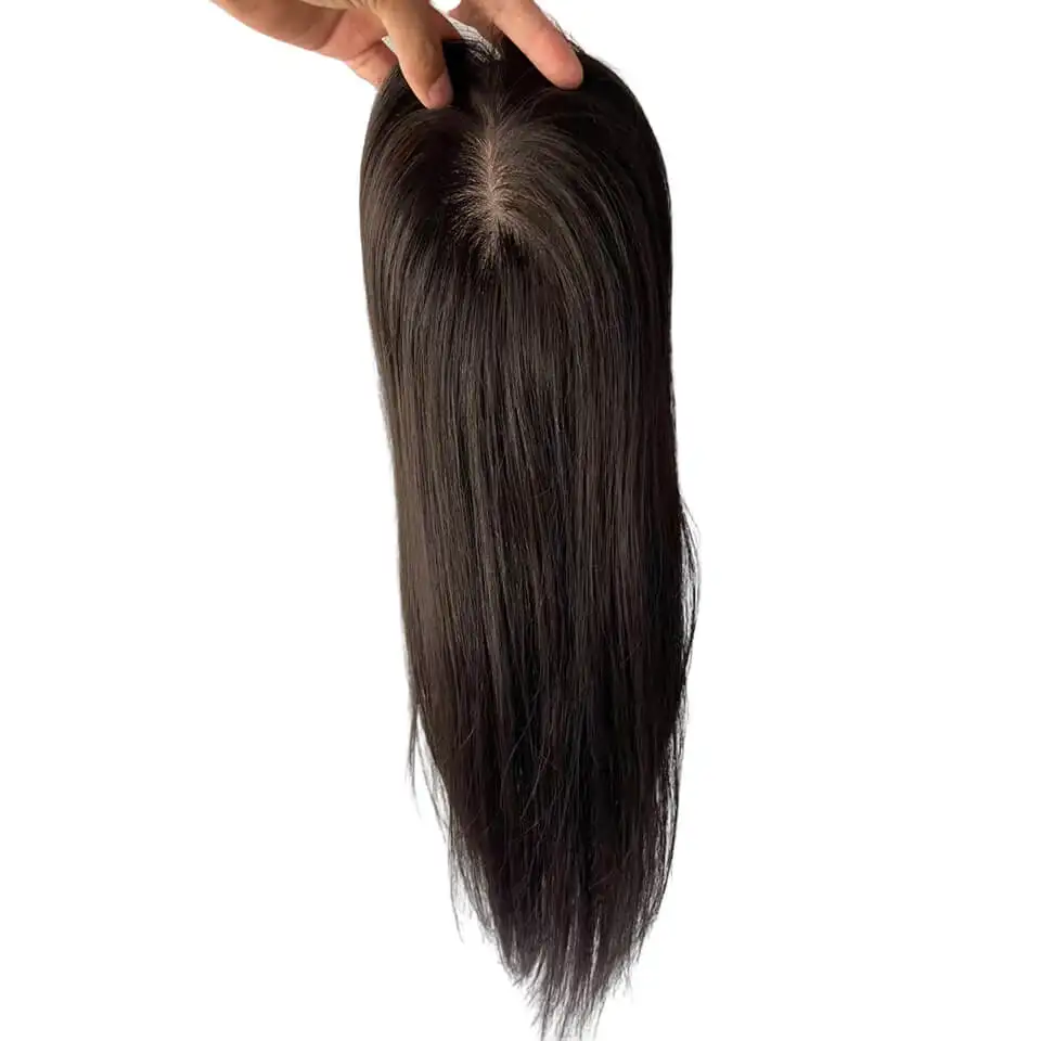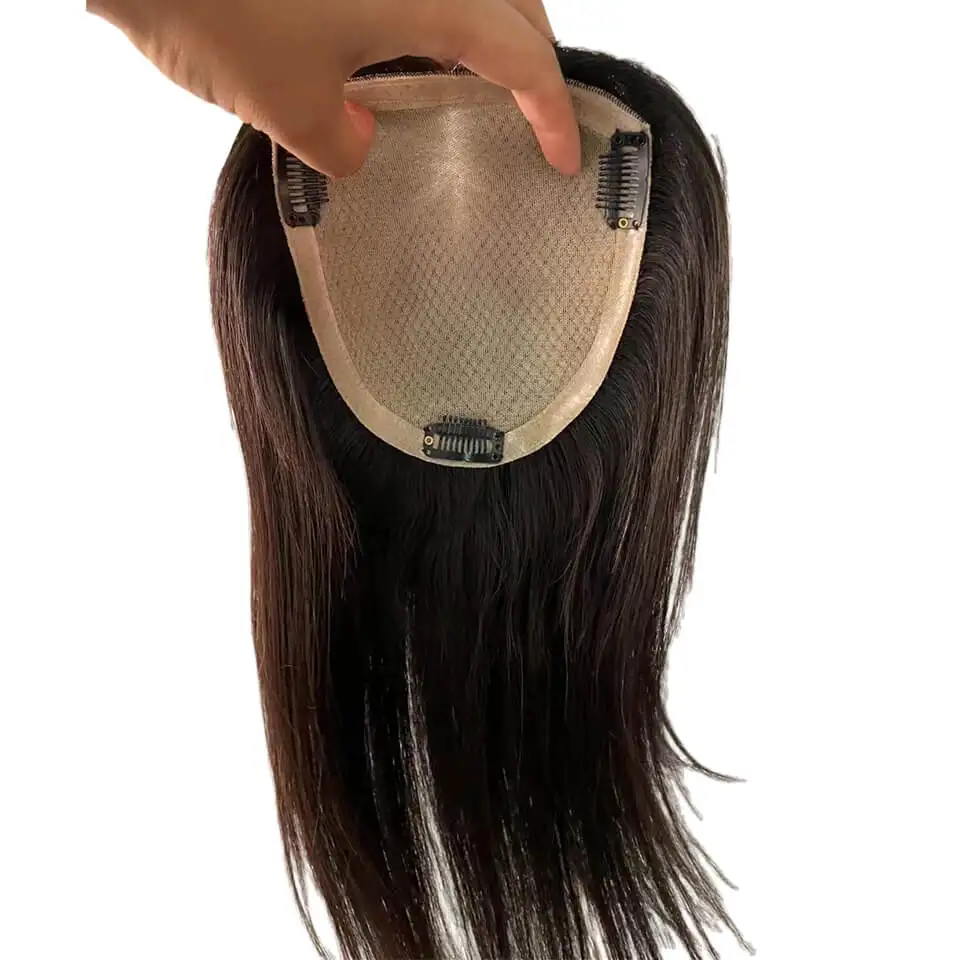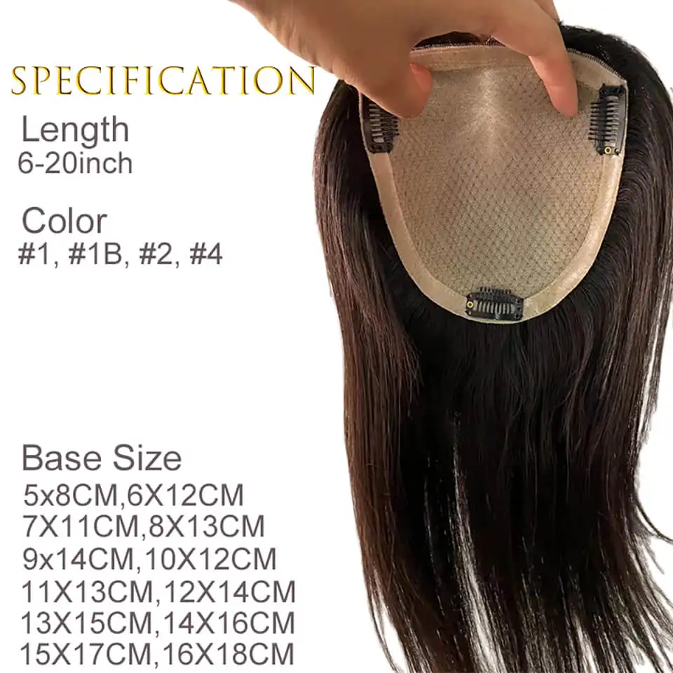 Straight Hair Toppers For Women Skin Silk Base Human Hair Topper With 3 Clips Hairpins Remy Virgin Human Hair Pieces 8-20Inch