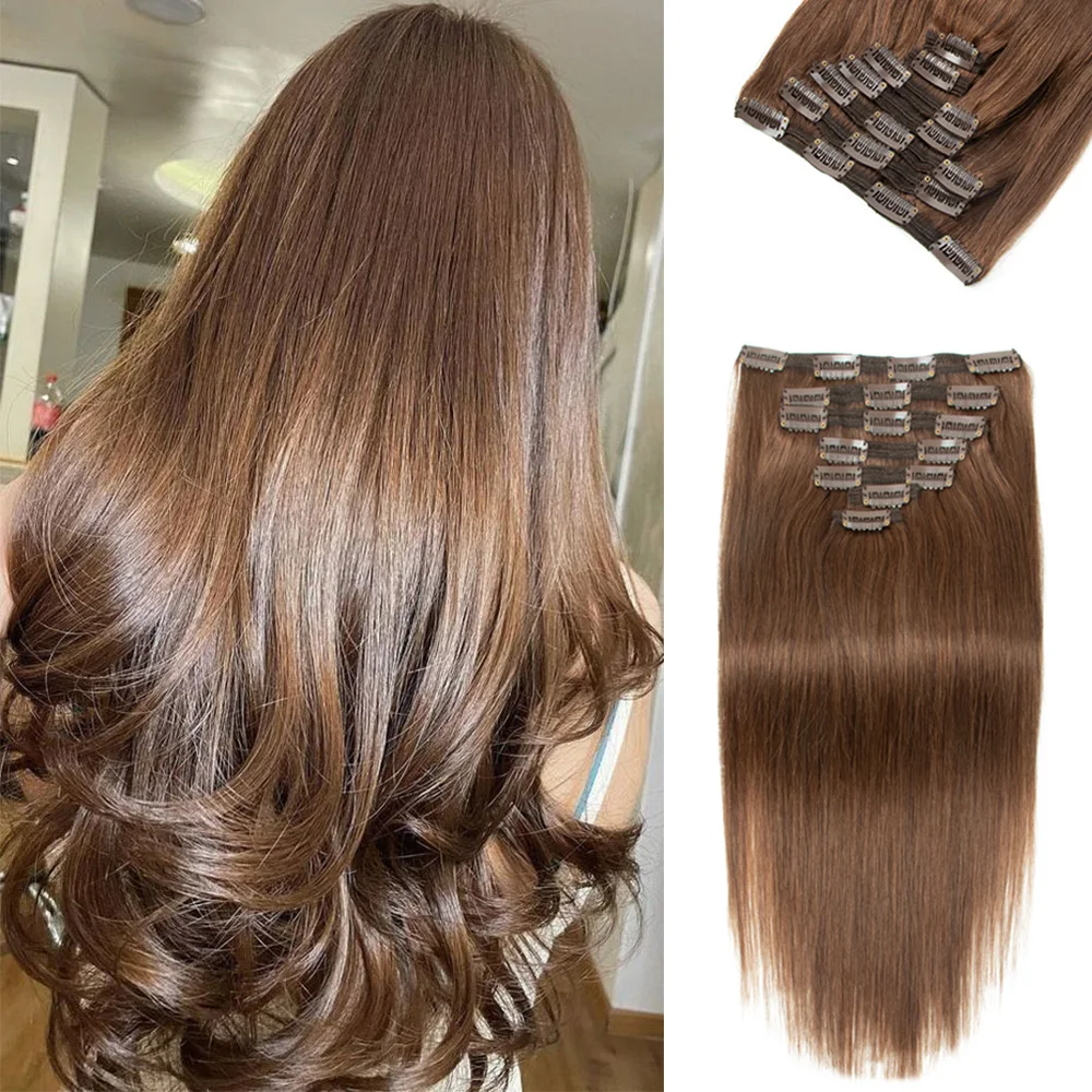 Straight Human Hair Clip in Extensions Woman Real Natural Hair 7pcs Double Weft Human Hair Extension Black Brown Blonde Clip Ins