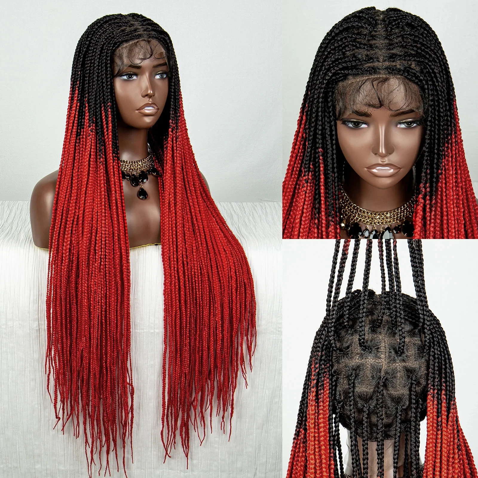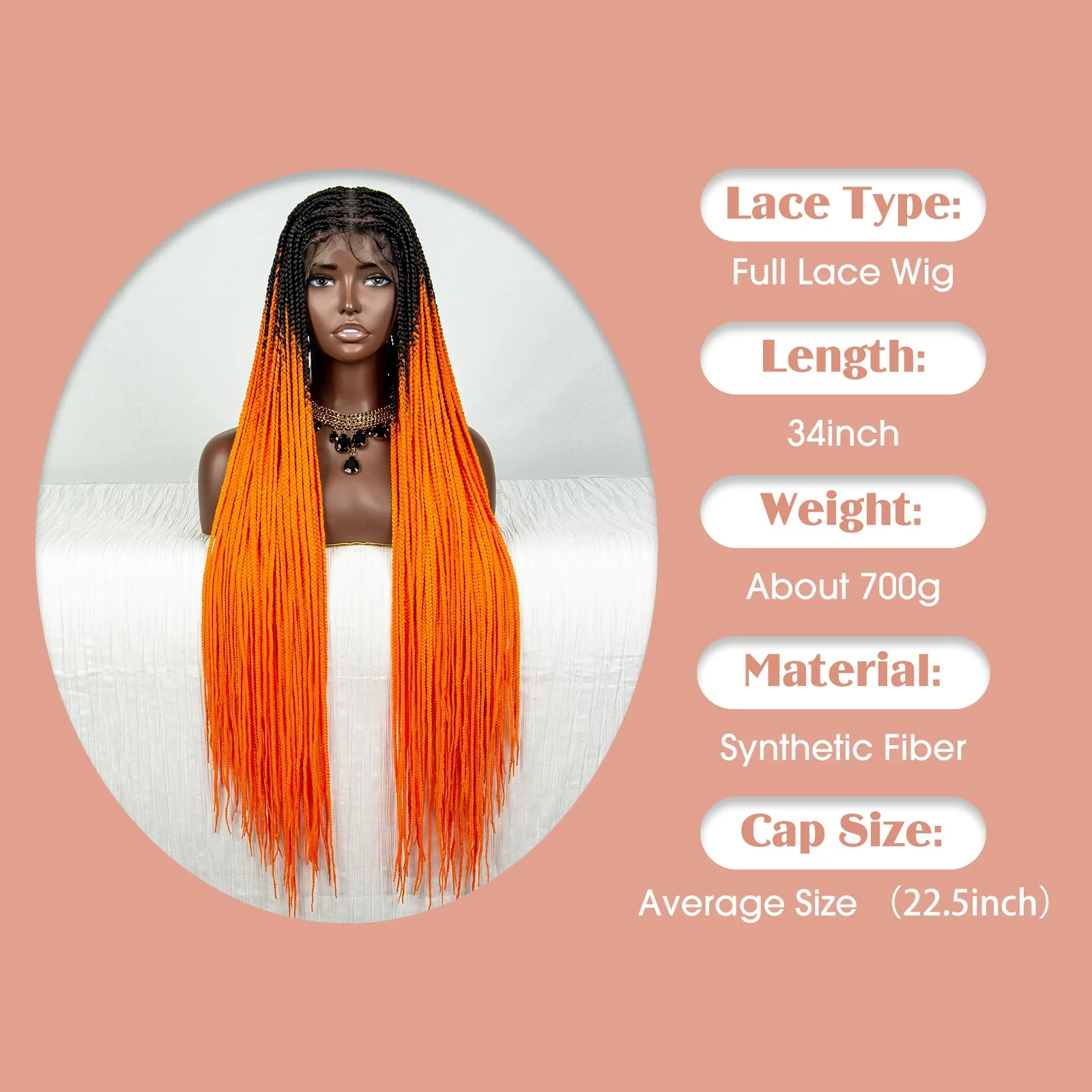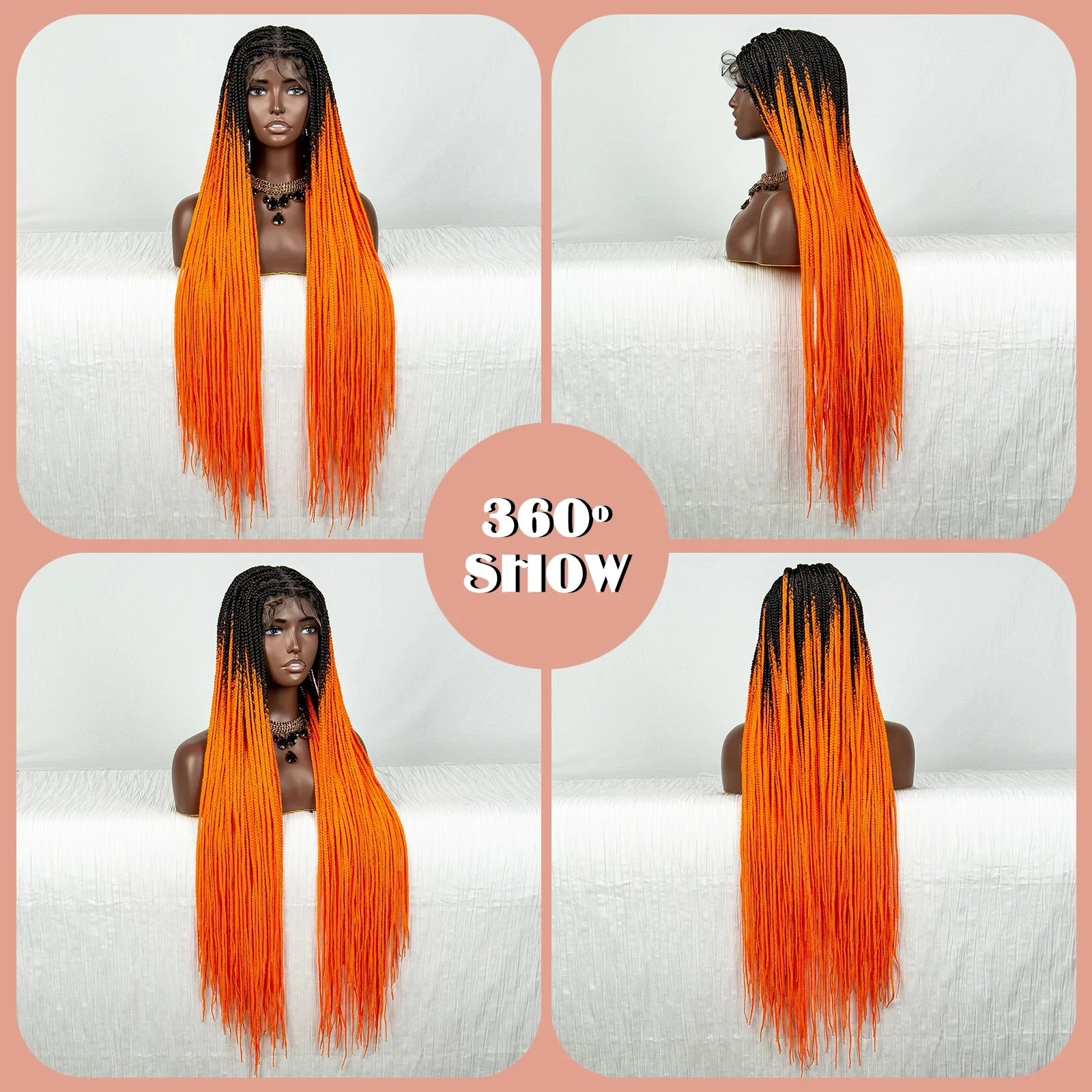 Straight Orange HD Full Lace Knotless Box Braided Wigs Synthetic Straight Lace Front Braids Wig with Baby Hair for Black Women
