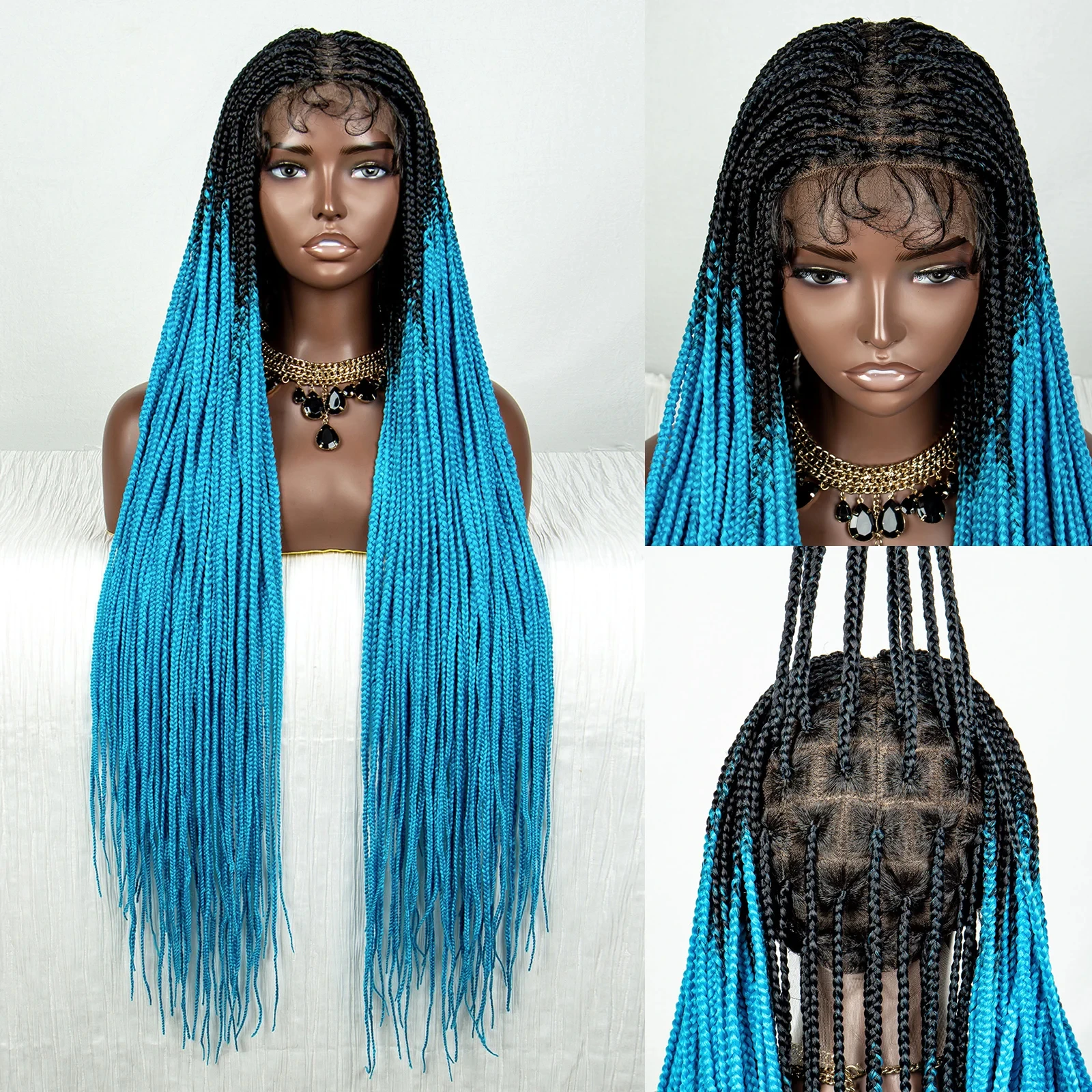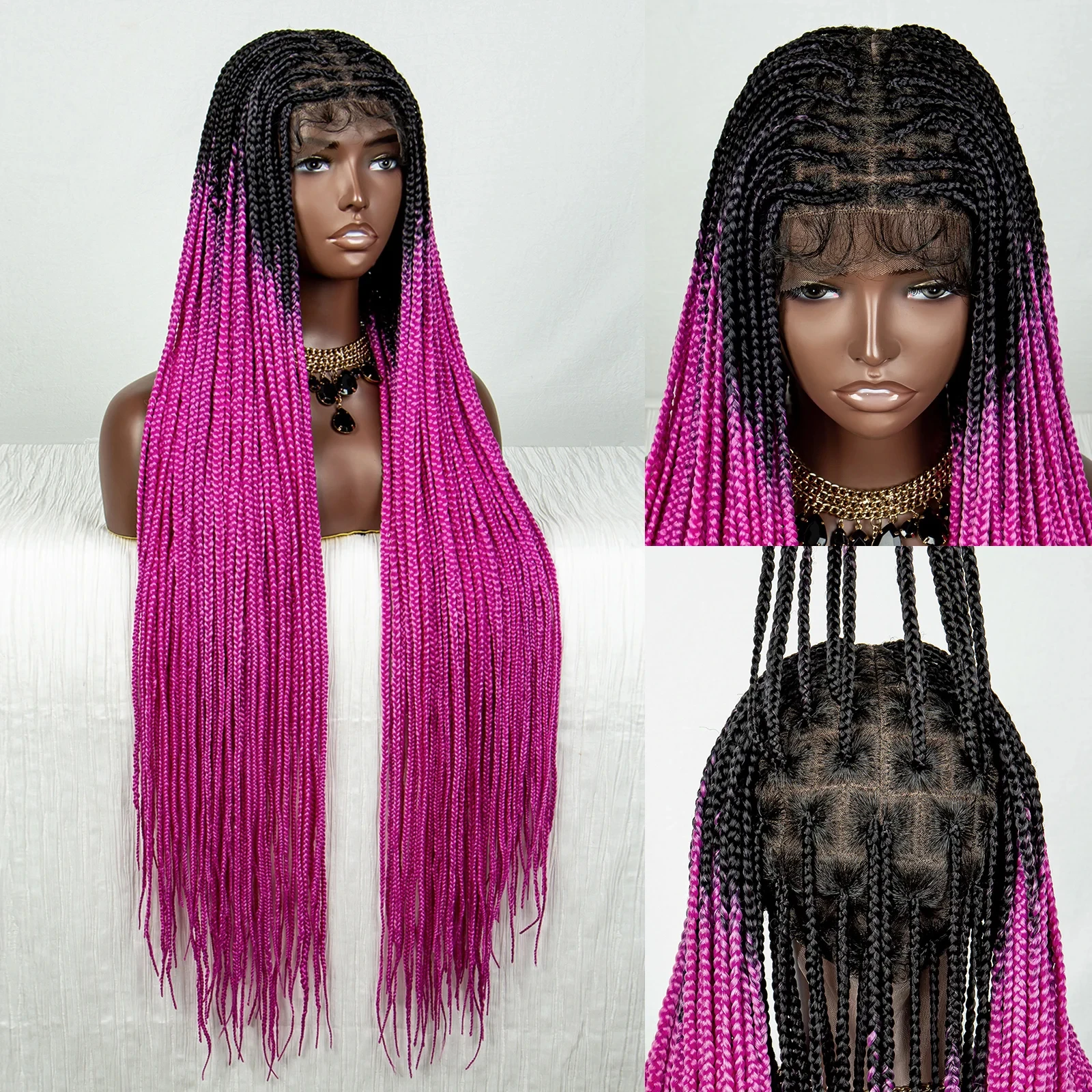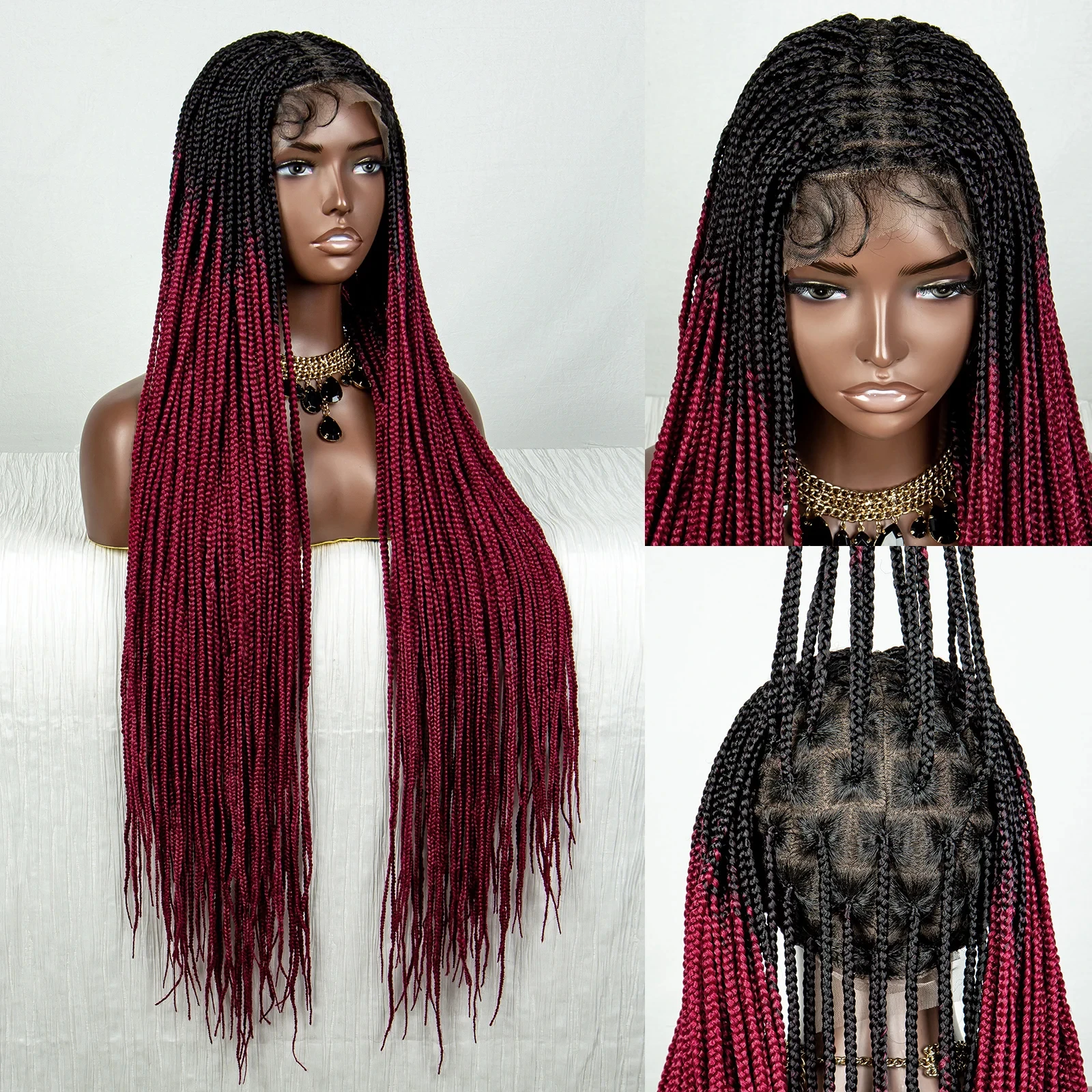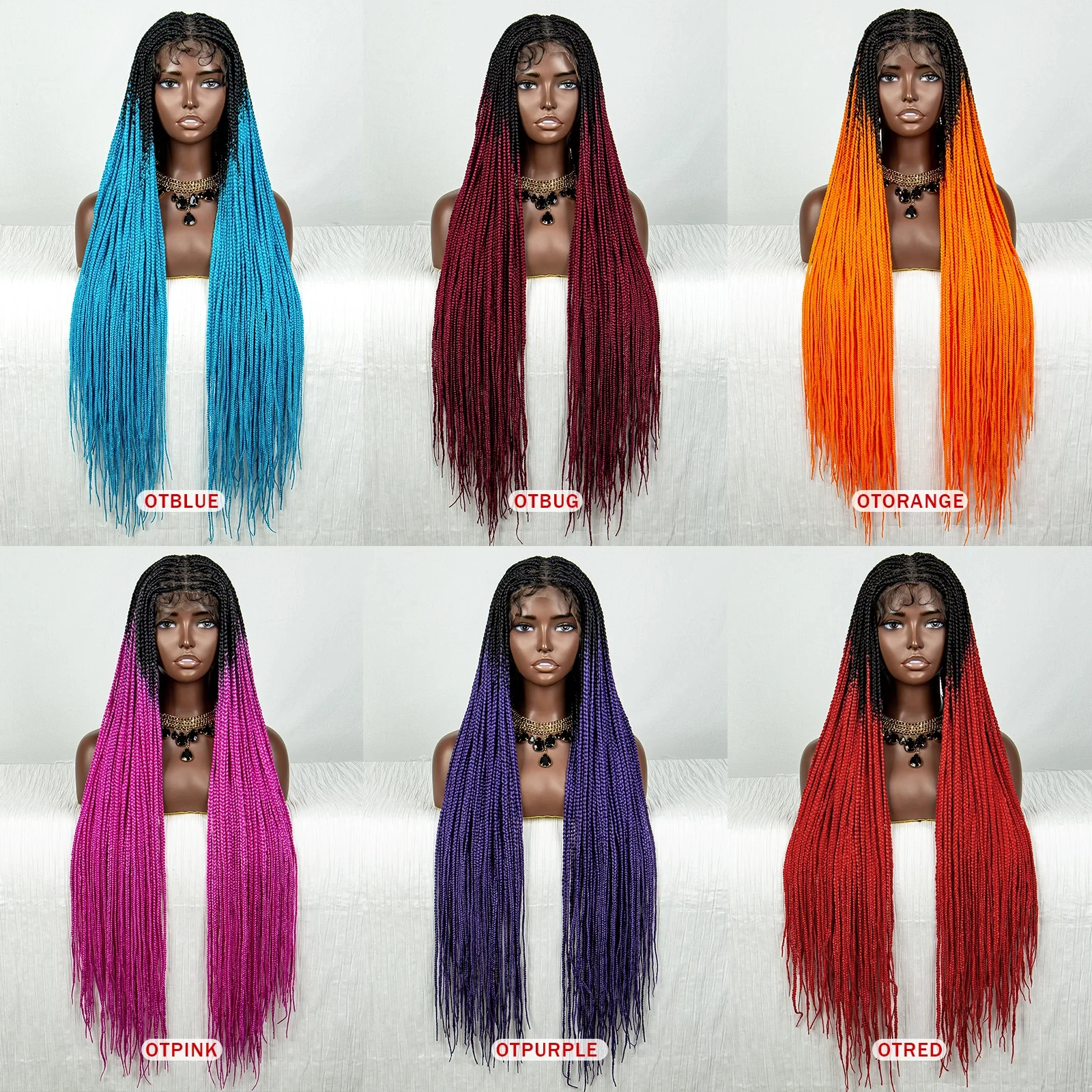Straight Orange HD Full Lace Knotless Box Braided Wigs Synthetic Straight Lace Front Braids Wig with Baby Hair for Black Women
