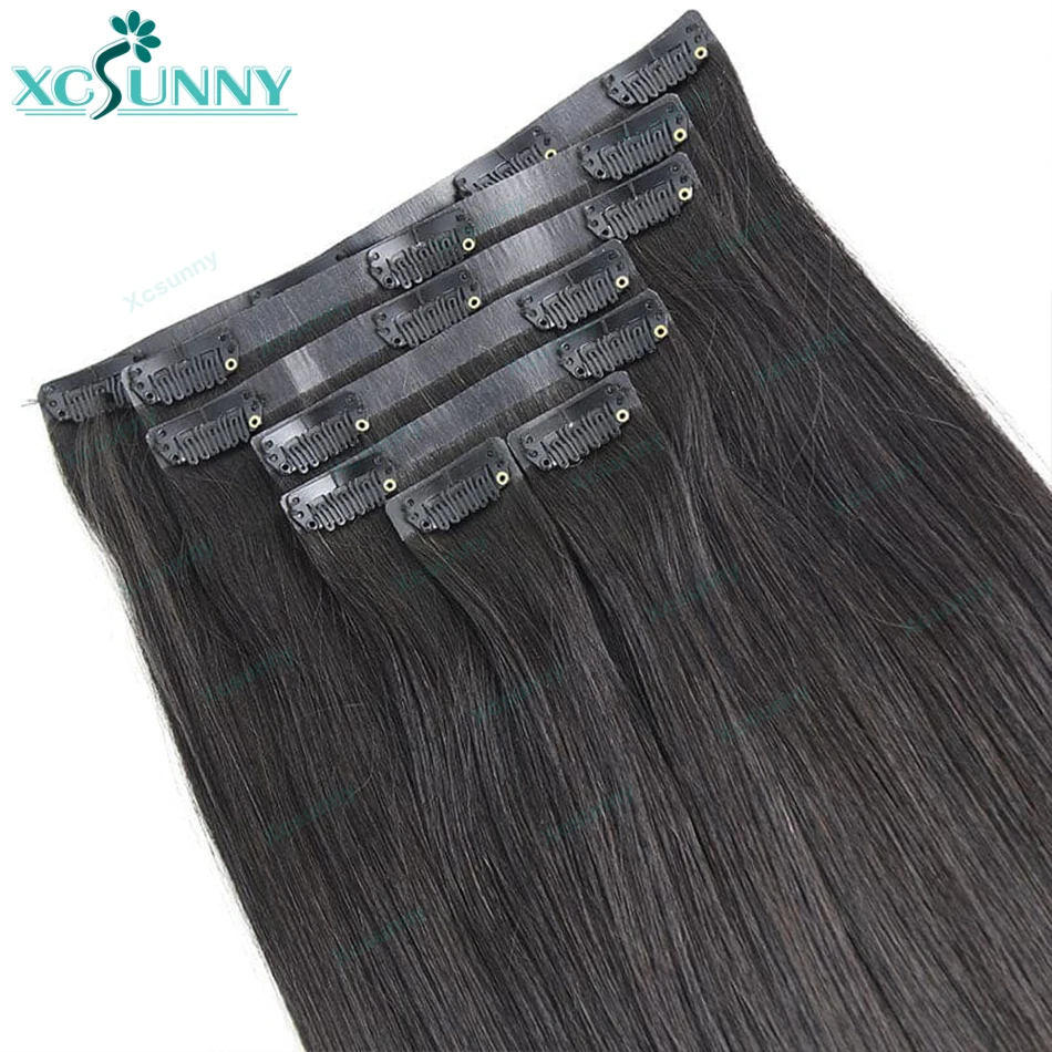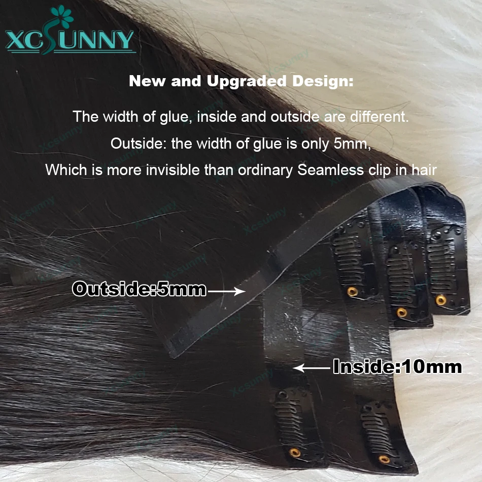 Straight Seamless PU Weft Clip In Extension Burmese Seamless Clip In Human Hair Extensions For Black Women