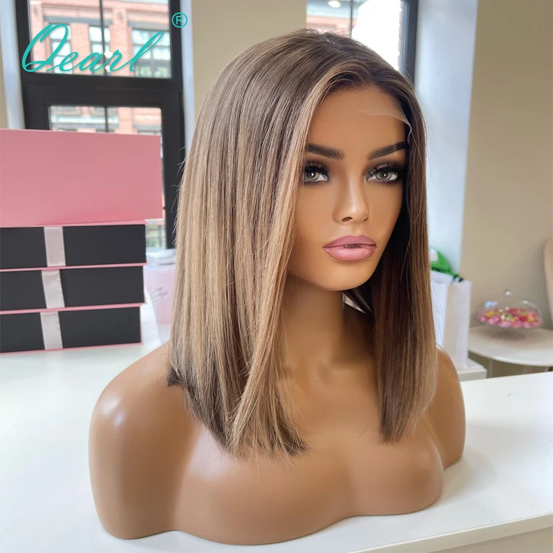 Straight Short Bob Lace Frontal Wig 13x4 Real Human Hair Wigs for Women Brown Ombre Blonde Glueless Virgin Lace Wig 150% Qearl