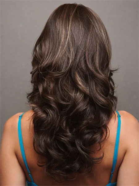SuQ Fashion Women Casual Wig Heat Resistant Synthetic Hair Brown Mixed Little Blonde Wig With Bangs Layered Long Wig Party Prom