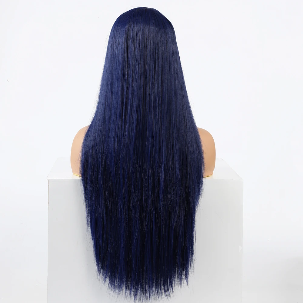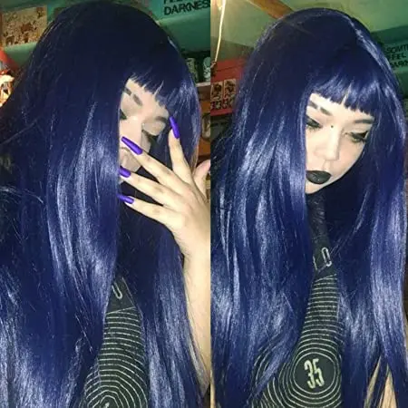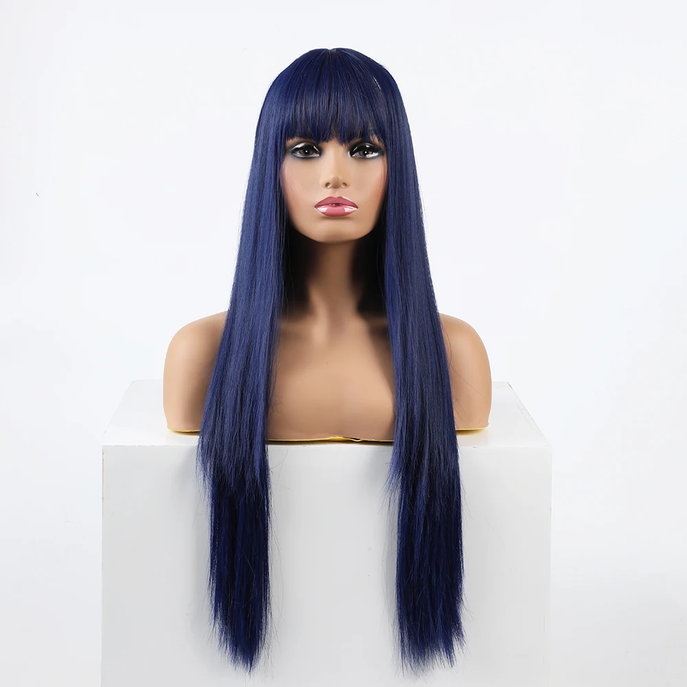 SuQ Synthetic Replacement Hair Wig With Bangs Blue Color Heat Resistant Wigs for Fashion Women