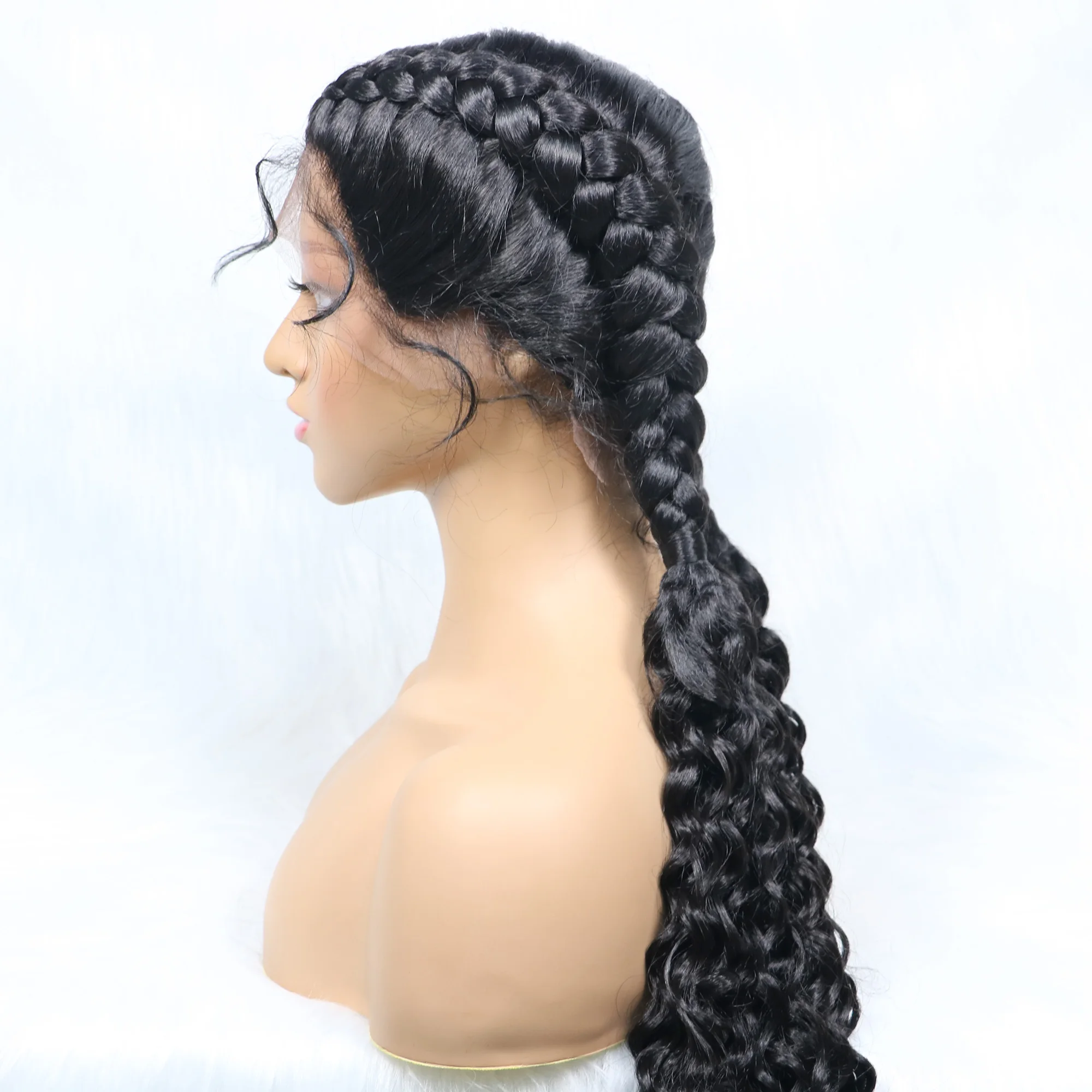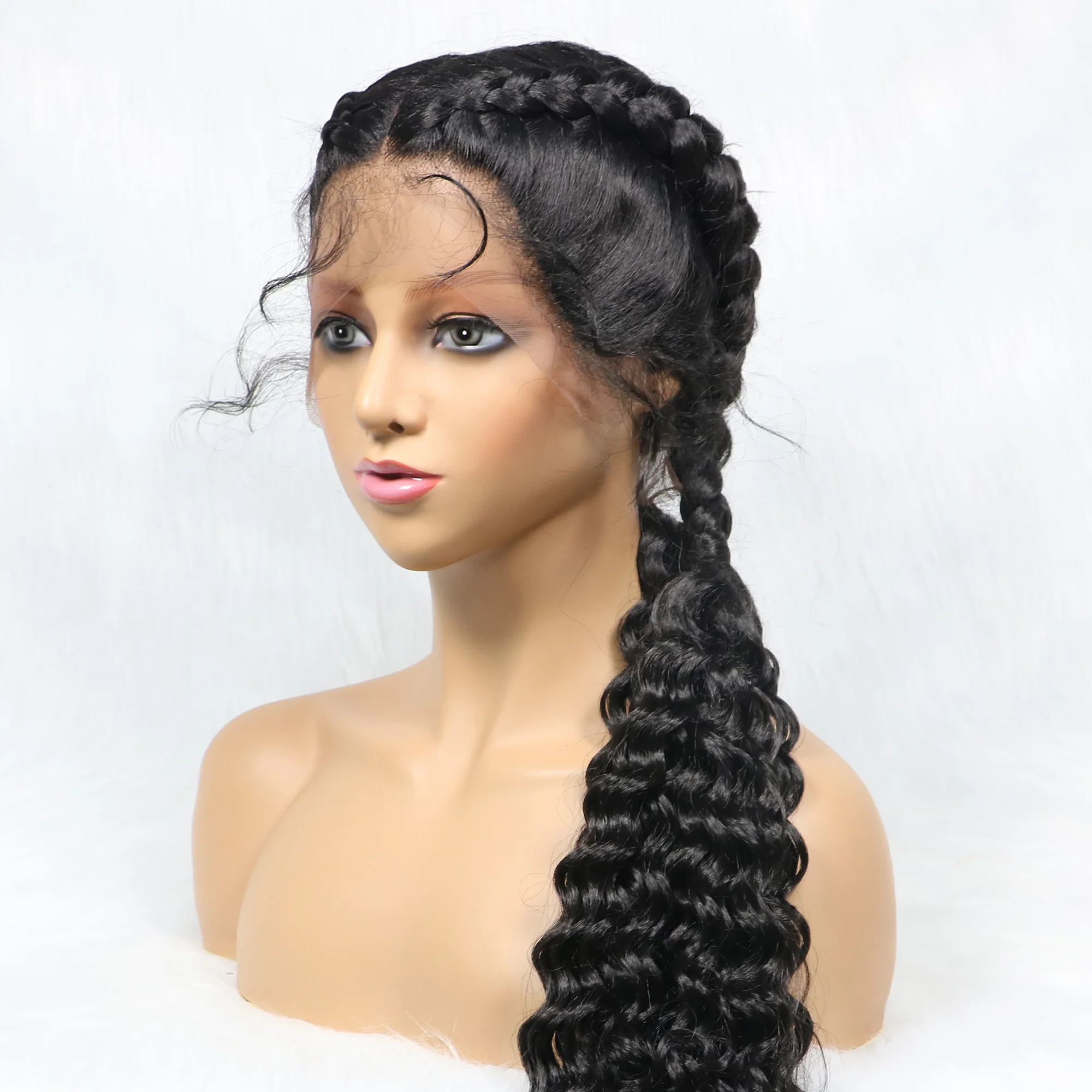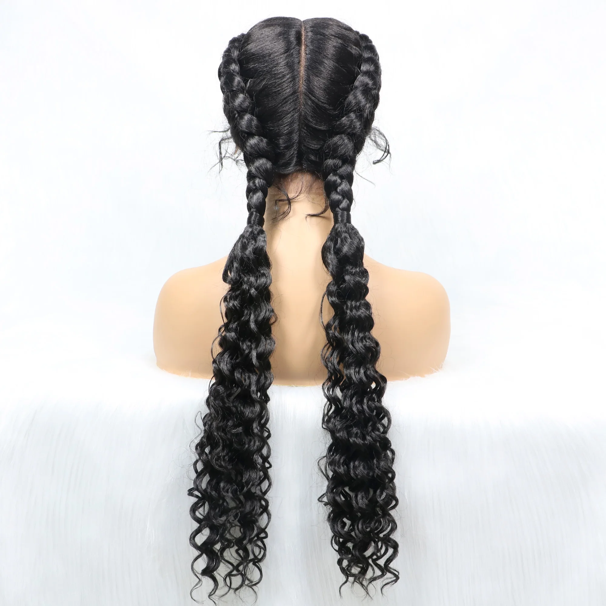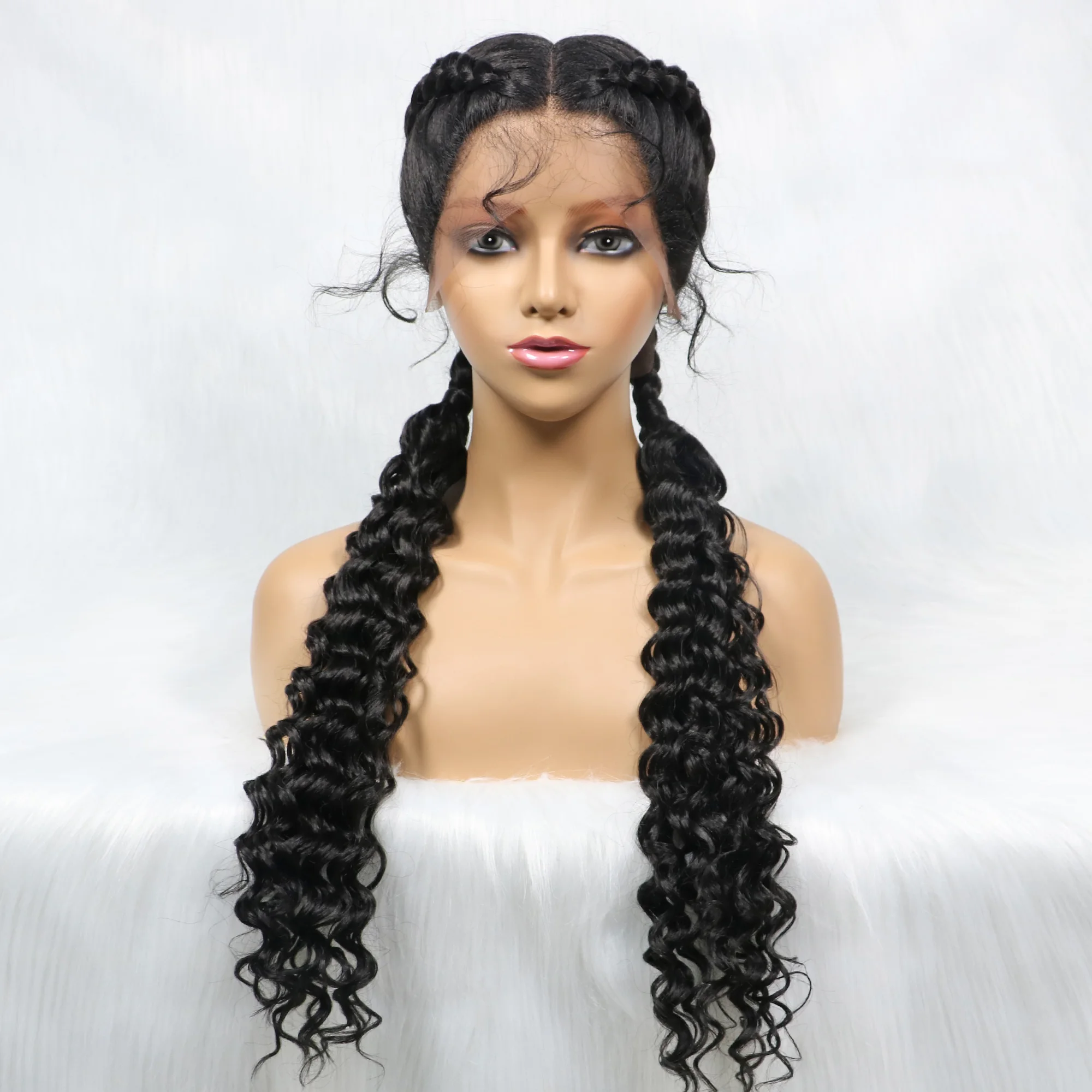 Synthetic 28 Inches Lace Front Hair Wig Black Curly Long For African Woman Afro Frontal Cornrow Twist Boxing Braided Wigs