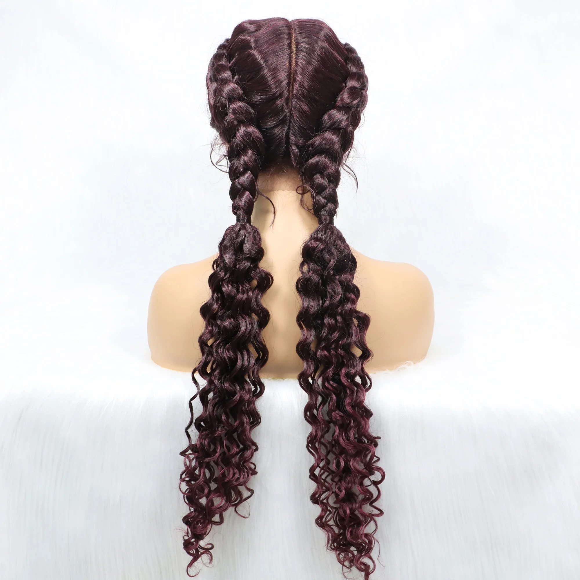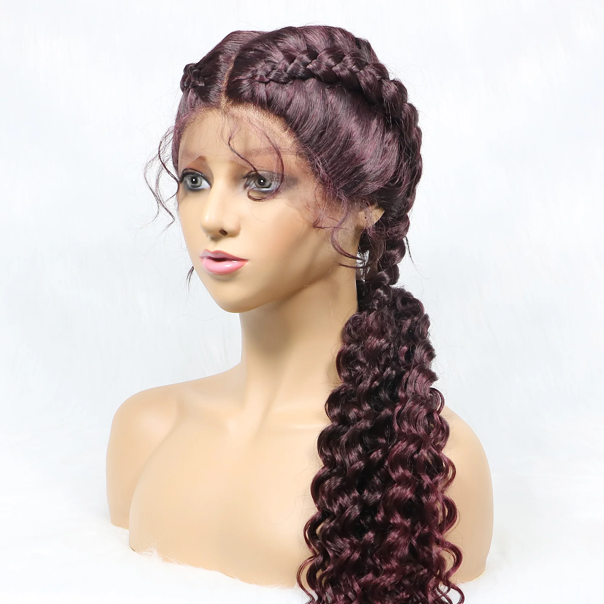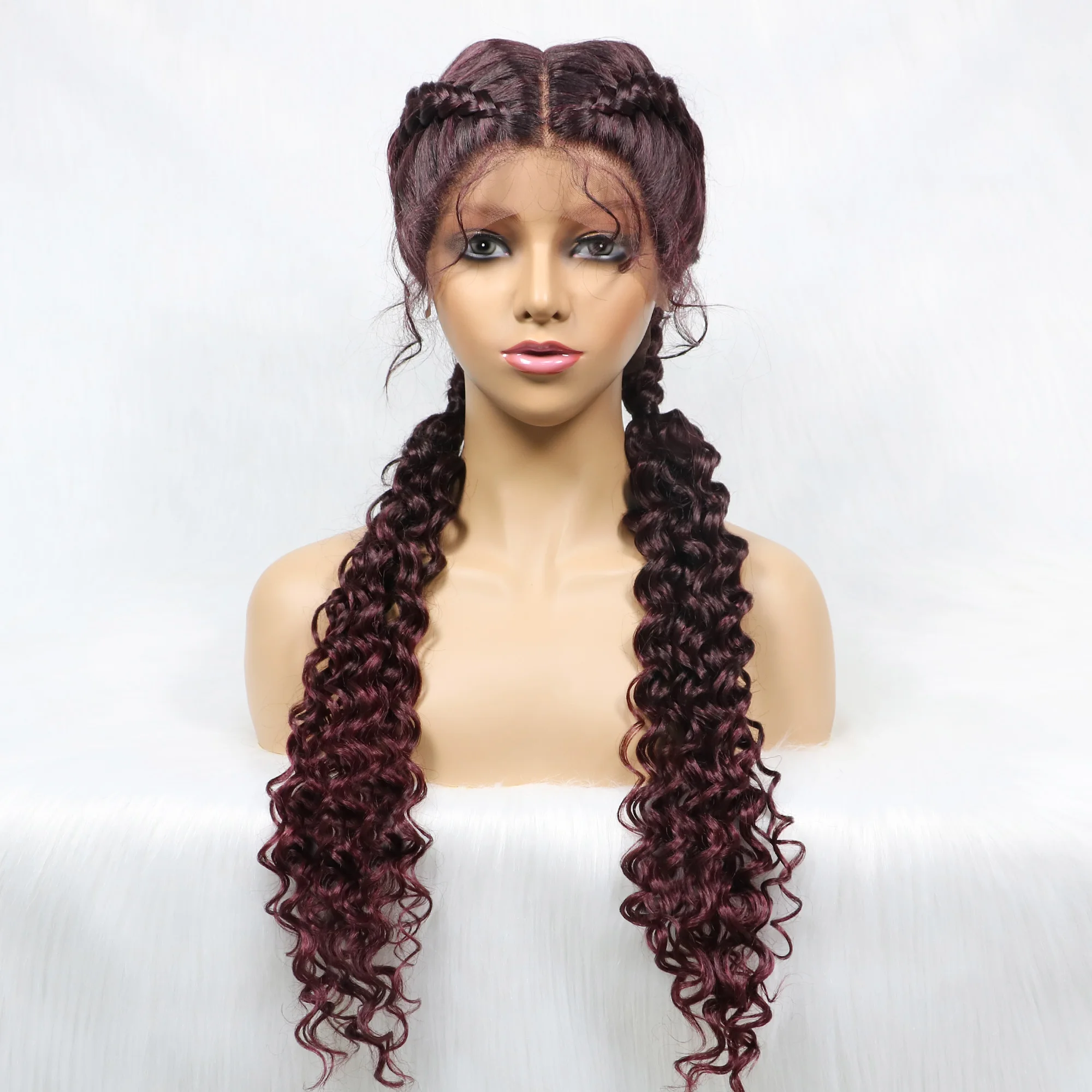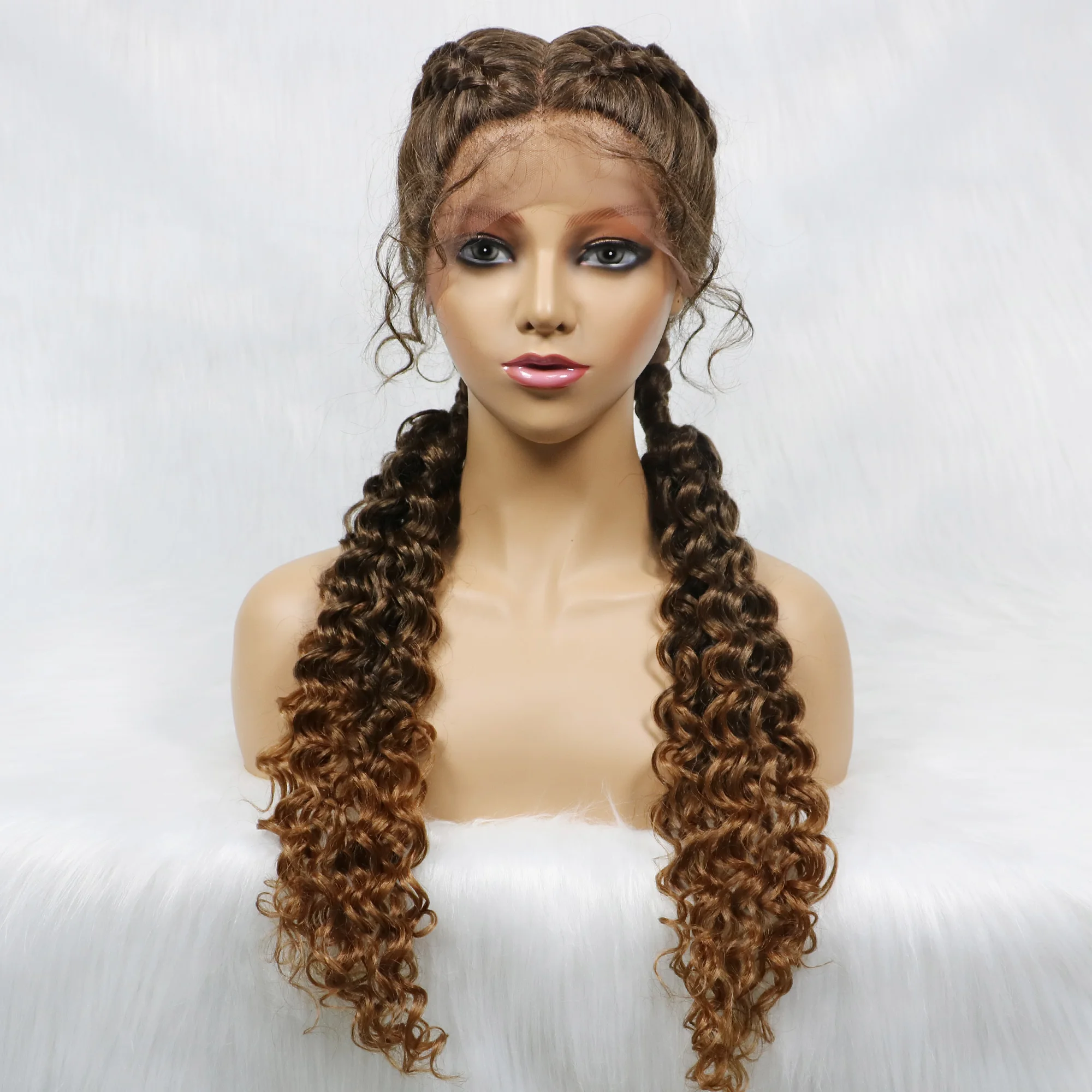 Synthetic 28 Inches Lace Front Hair Wig Black Curly Long For African Woman Afro Frontal Cornrow Twist Boxing Braided Wigs