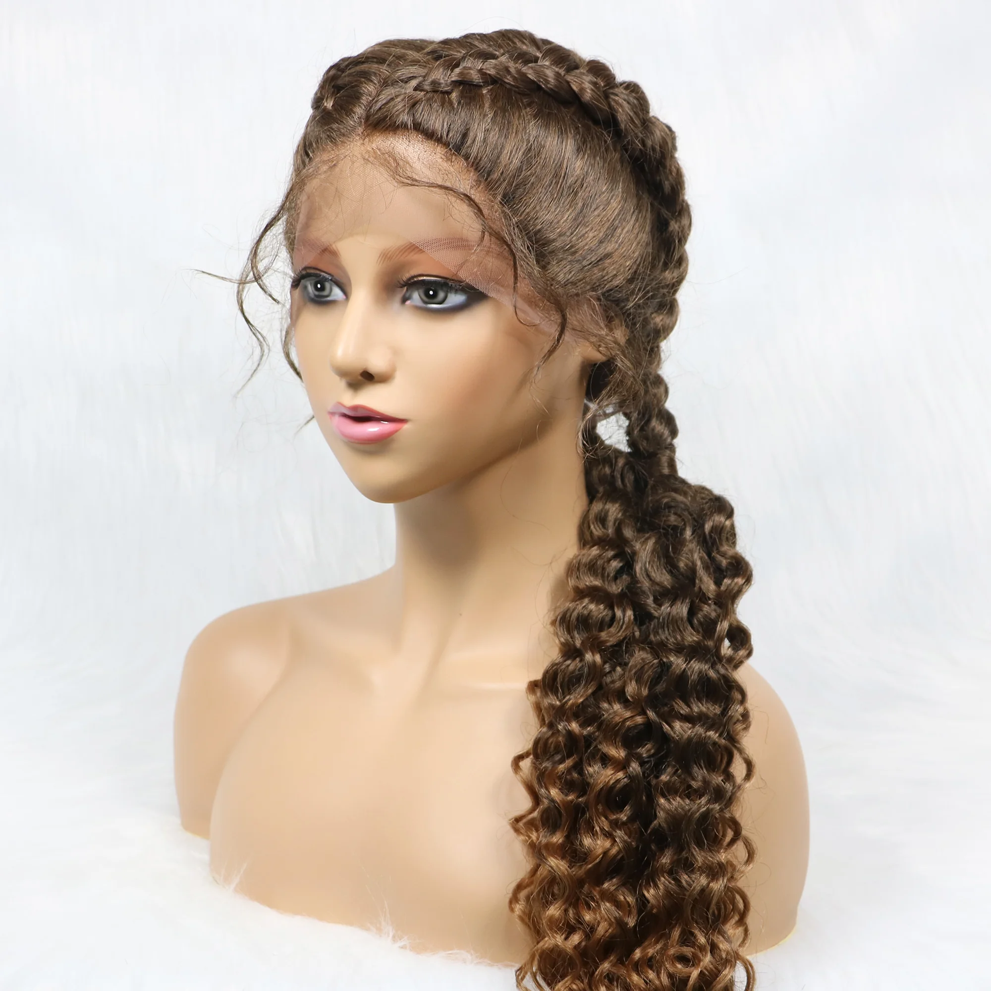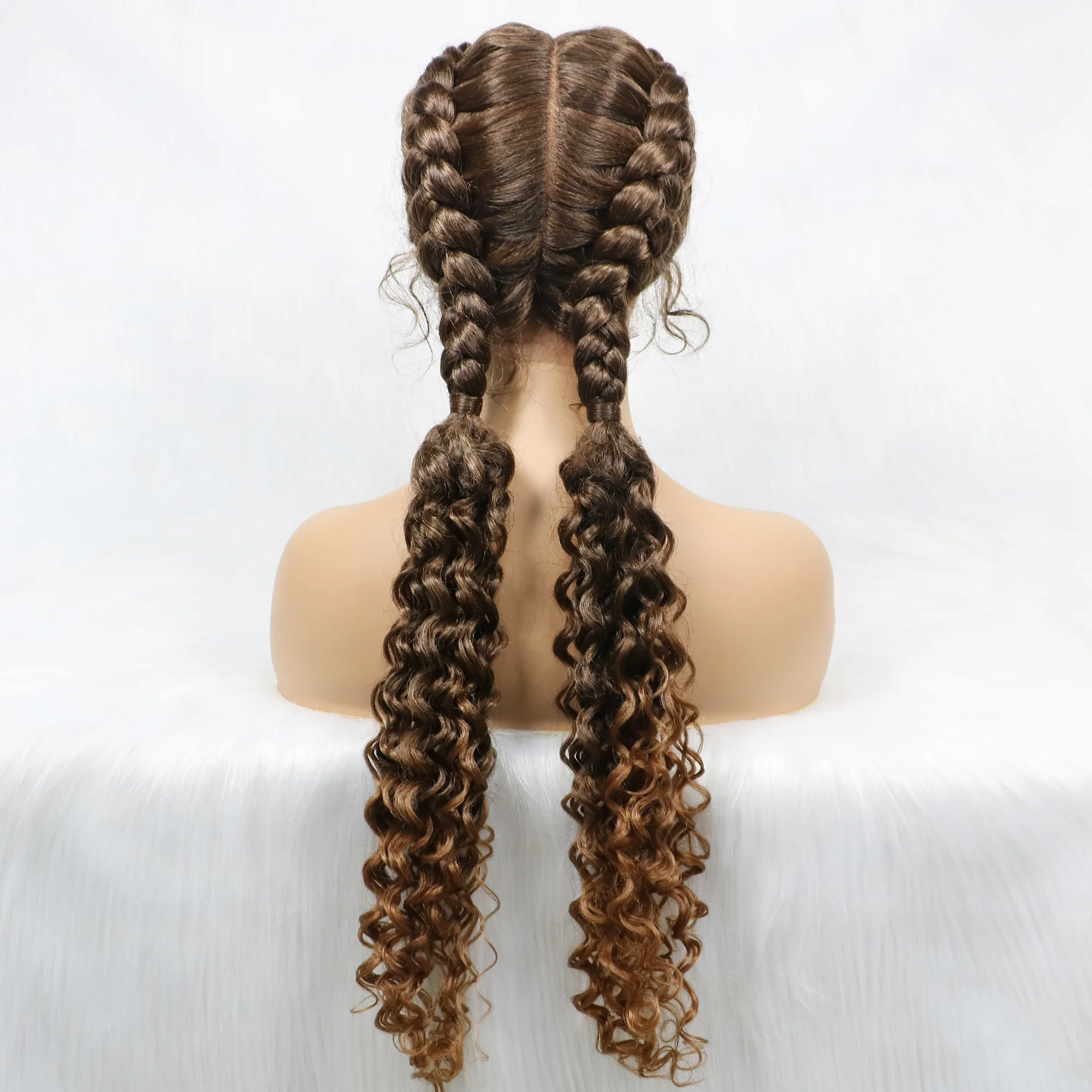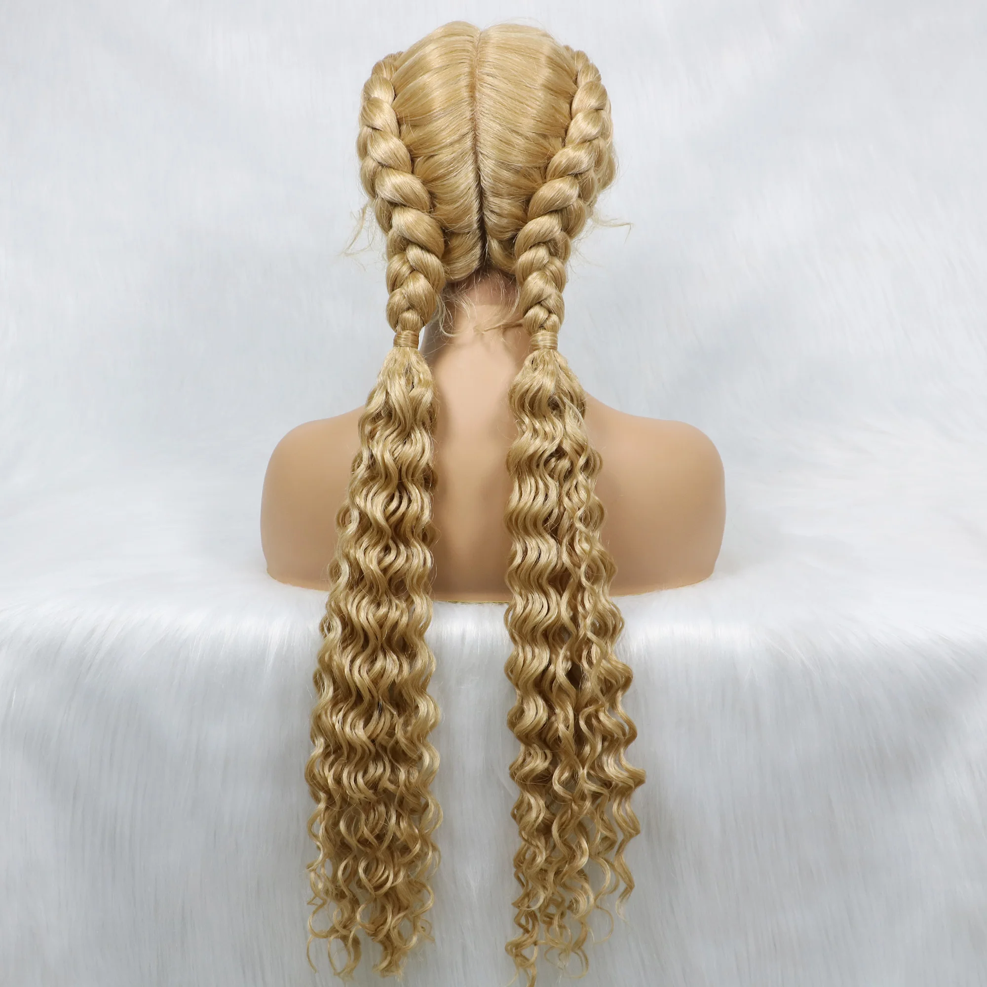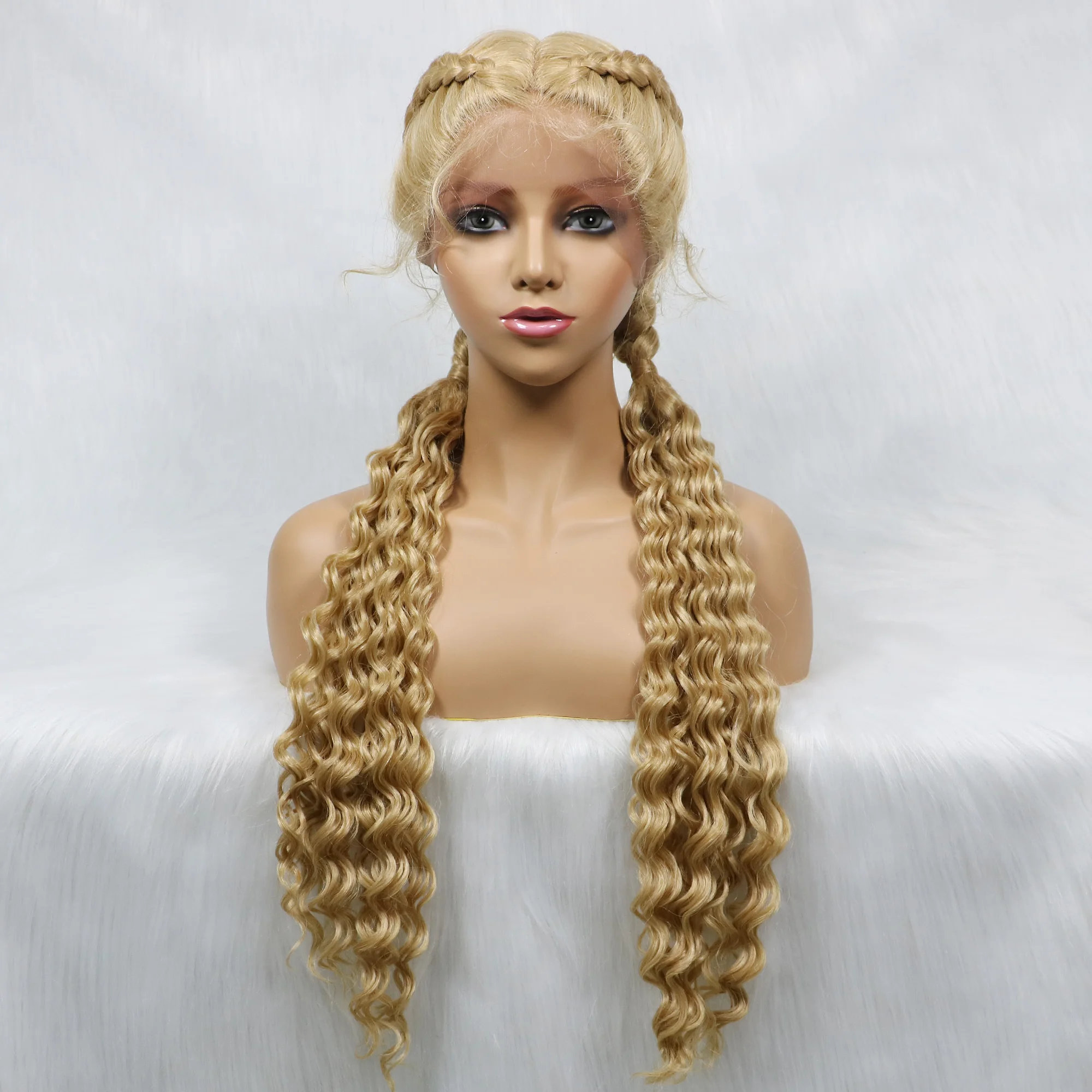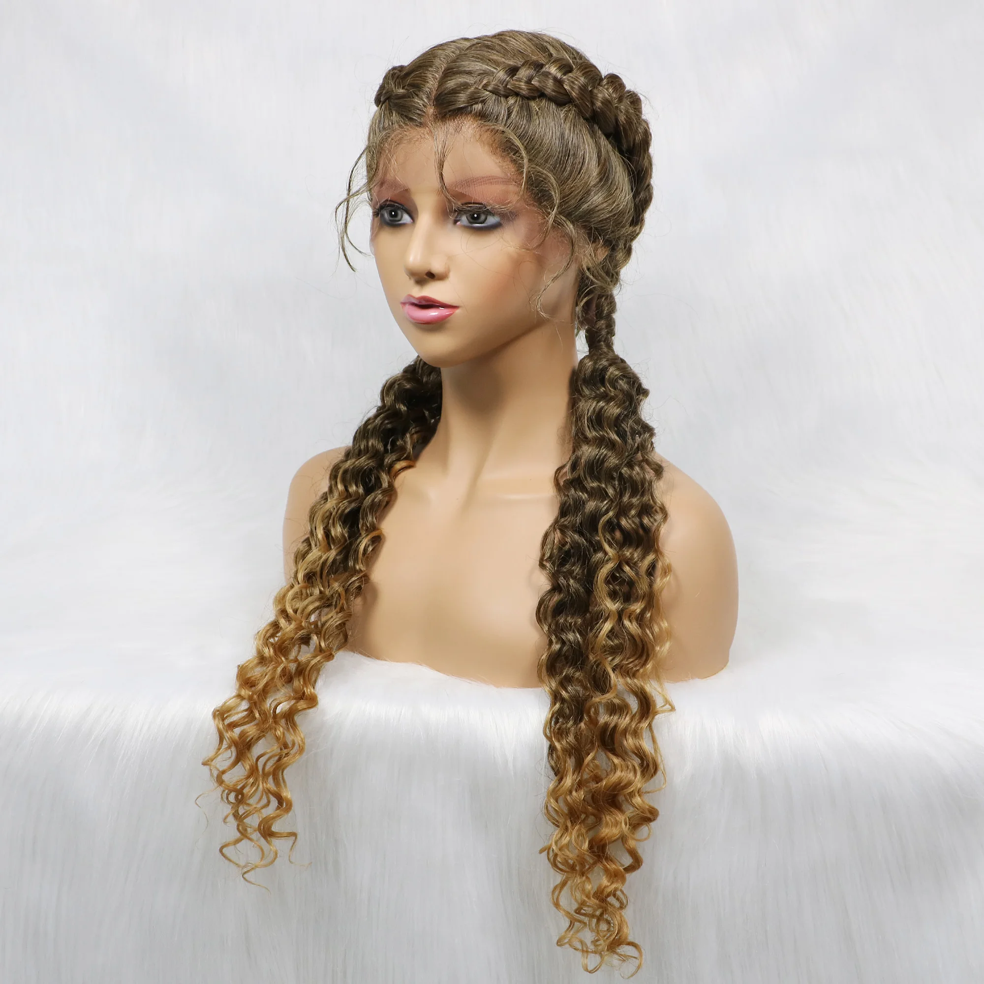Synthetic 28 Inches Lace Front Hair Wig Black Curly Long For African Woman Afro Frontal Cornrow Twist Boxing Braided Wigs