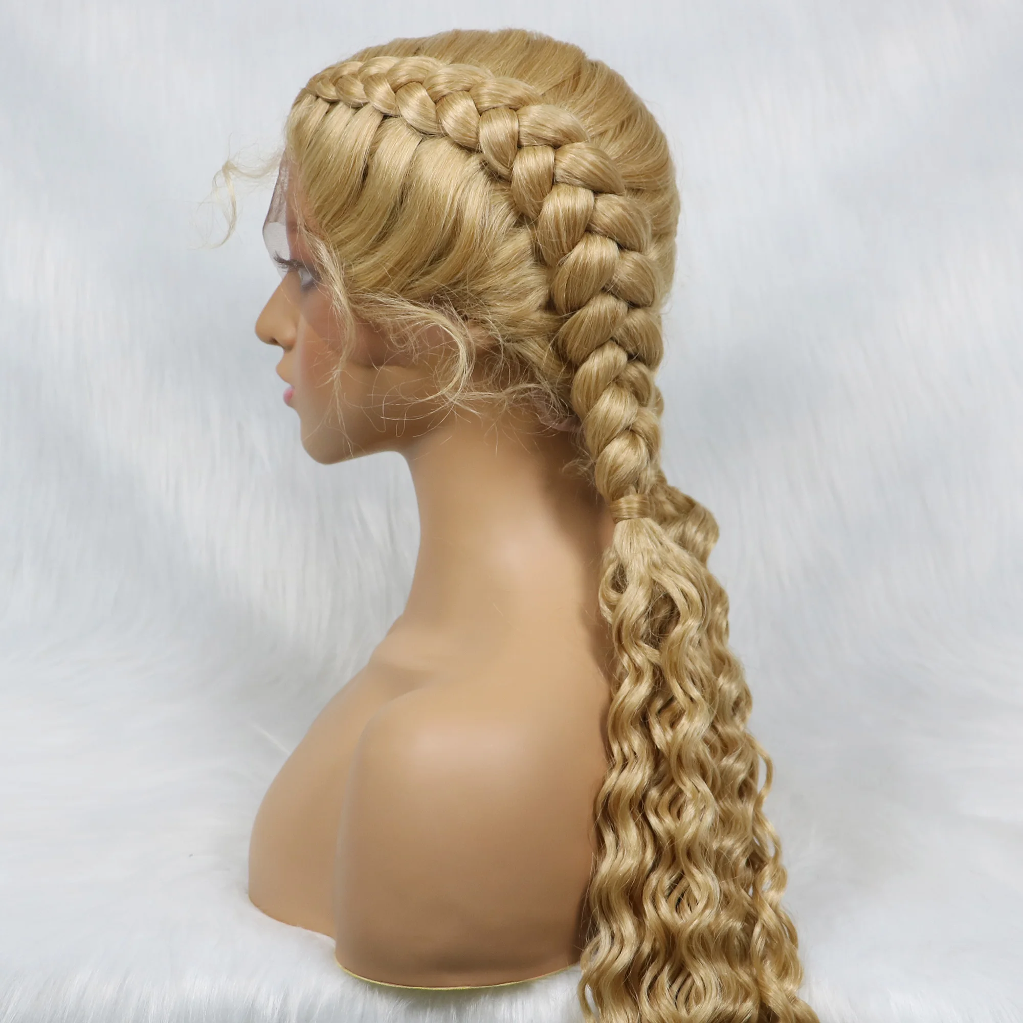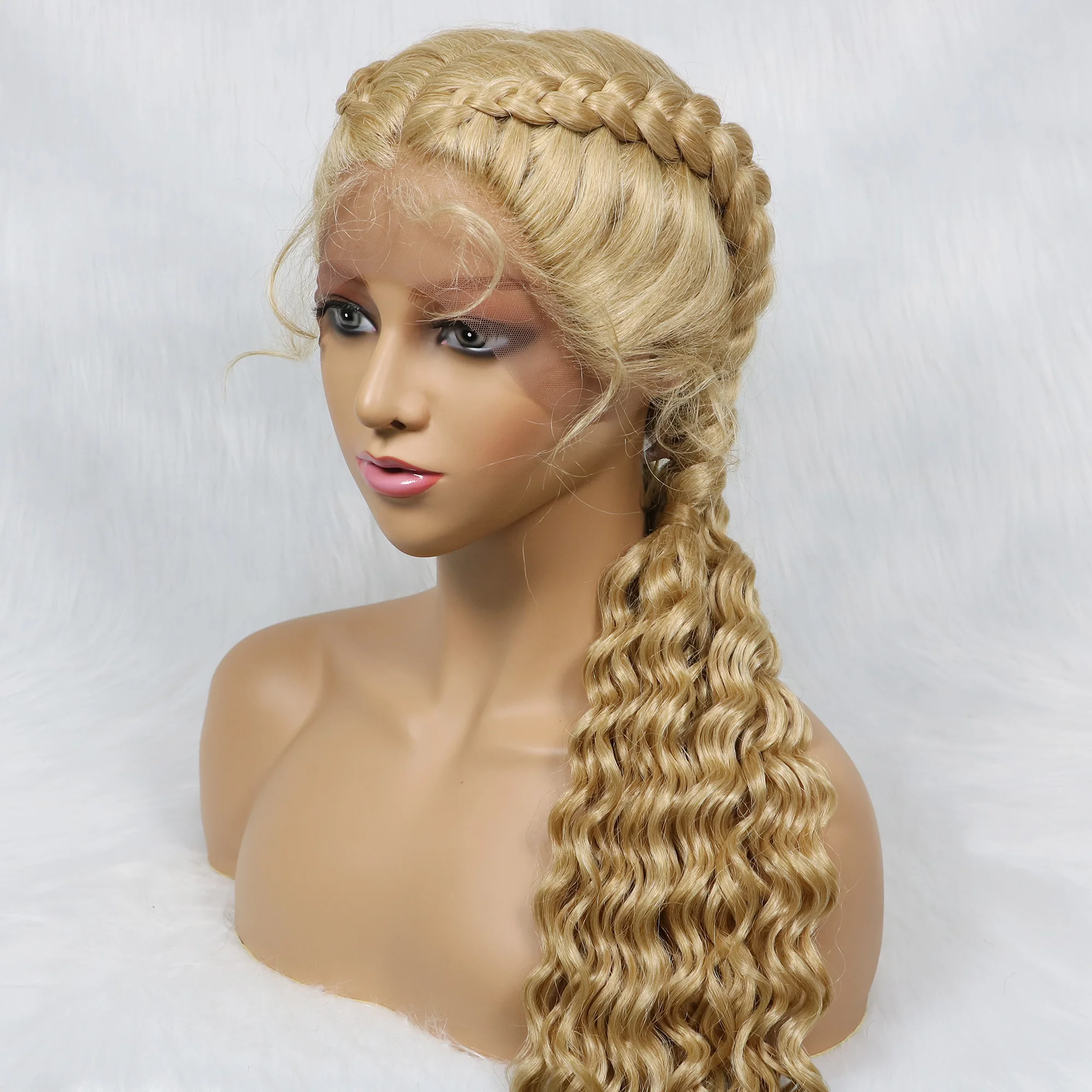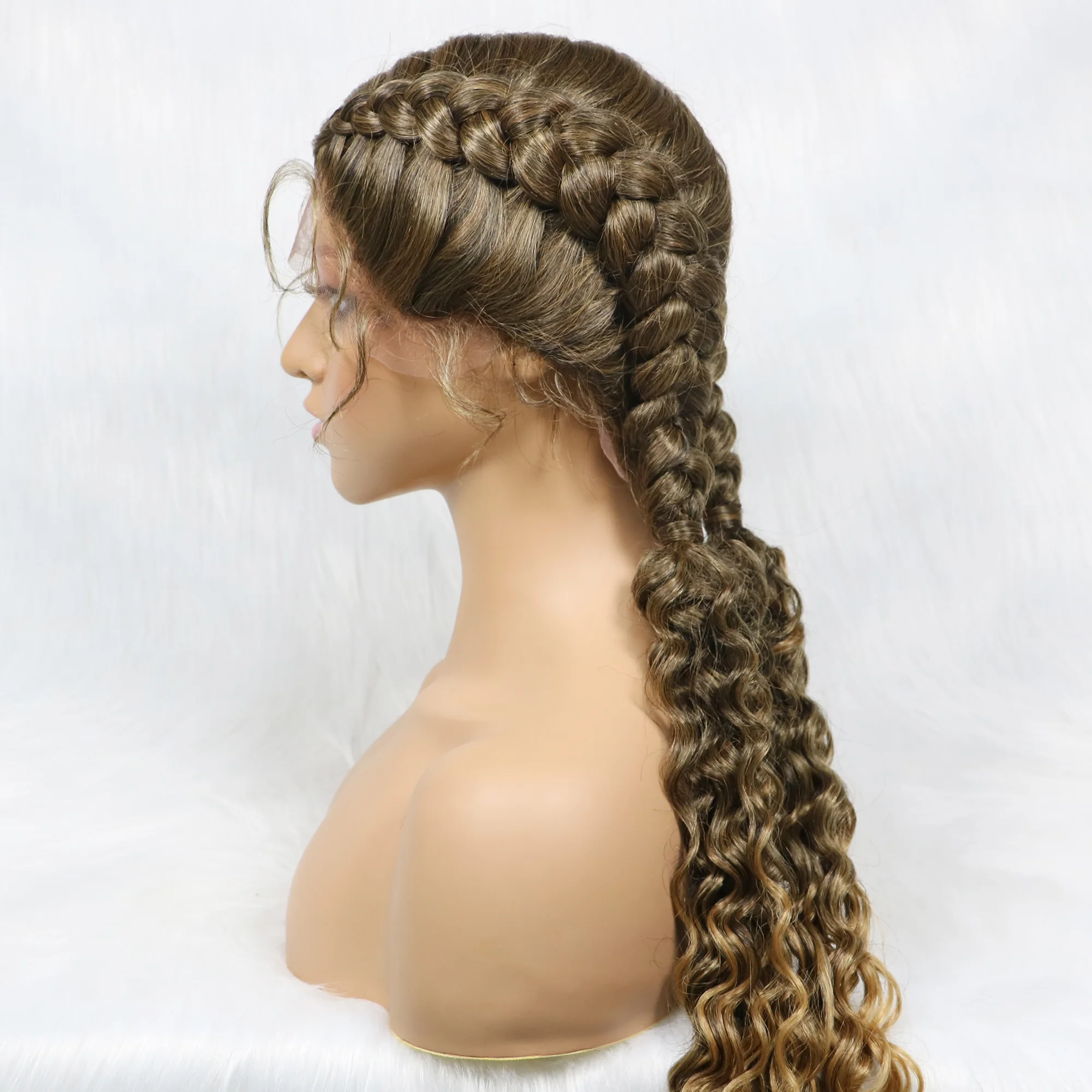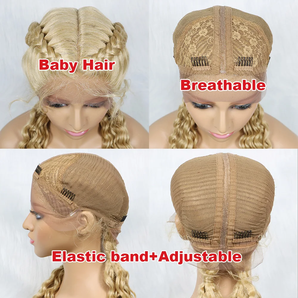 Synthetic 28 Inches Lace Front Hair Wig Black Curly Long For African Woman Afro Frontal Cornrow Twist Boxing Braided Wigs