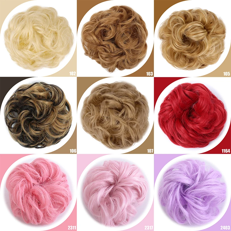 Synthetic 2PCS Clip-on Hair Red Wig HairBun HairPiece Wigs For Women Hair Clips For Hair Spring Summer Updo Chignon Messy Buns