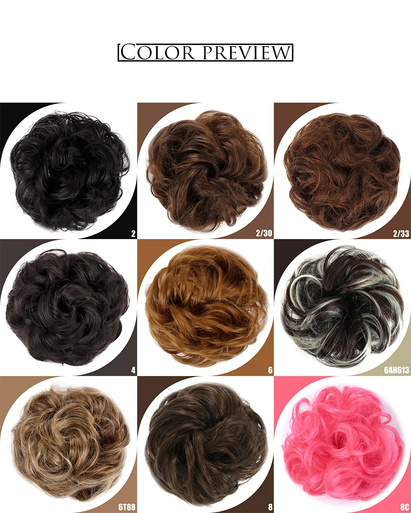 Material:Premium Quality Synthetic Hair, feels silky and soft like real human hair. Fit to all head sizes. Attached by a claw/crocodile clip with drawstring which will make you comfortable for all day Weight: 80G, Length:6"-8" Multiple Colors available in your choice as shown in
