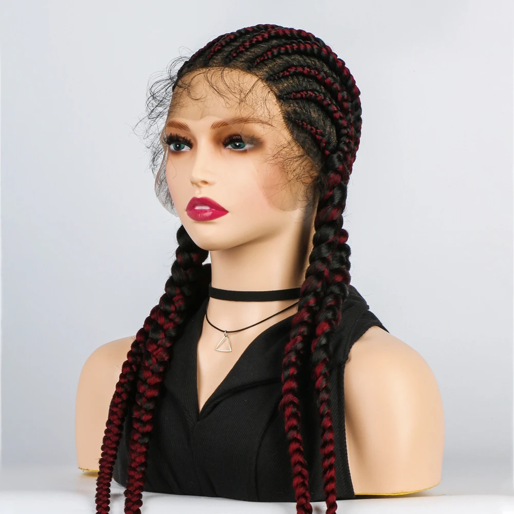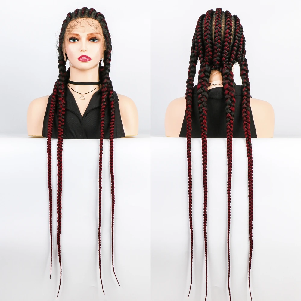 Synthetic 36 Inches Long Box Braided Wig With Baby Hair For Black Women With Gift Synthetic Lace Front Wigs Full Lace Wigs