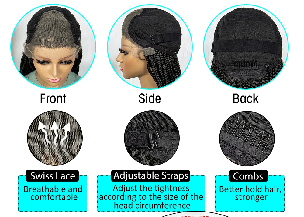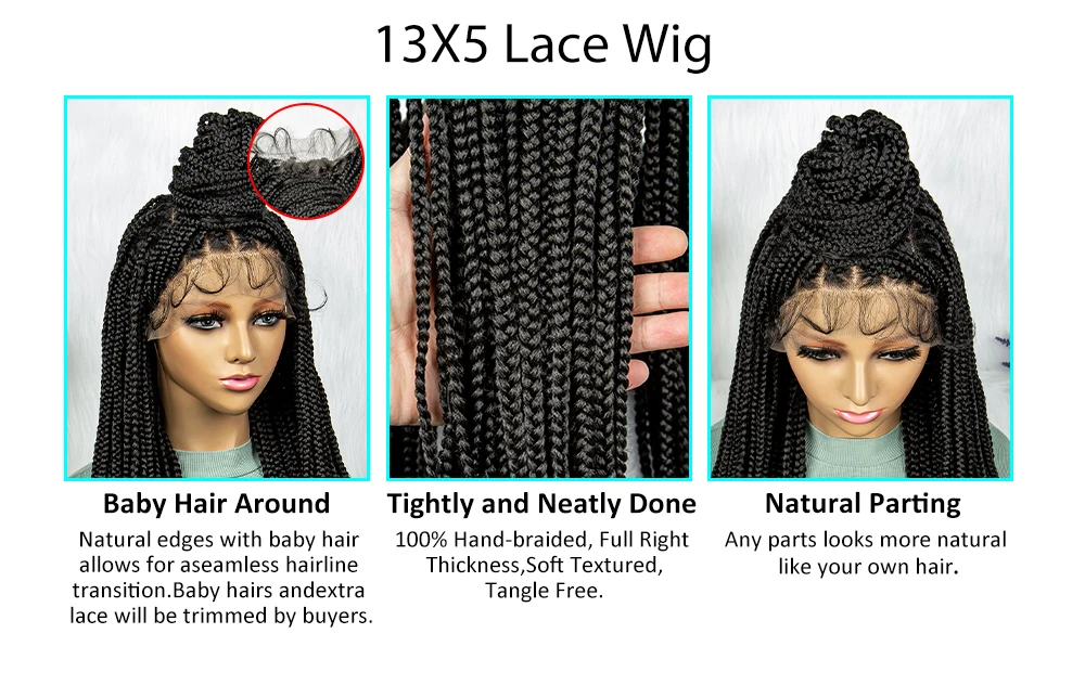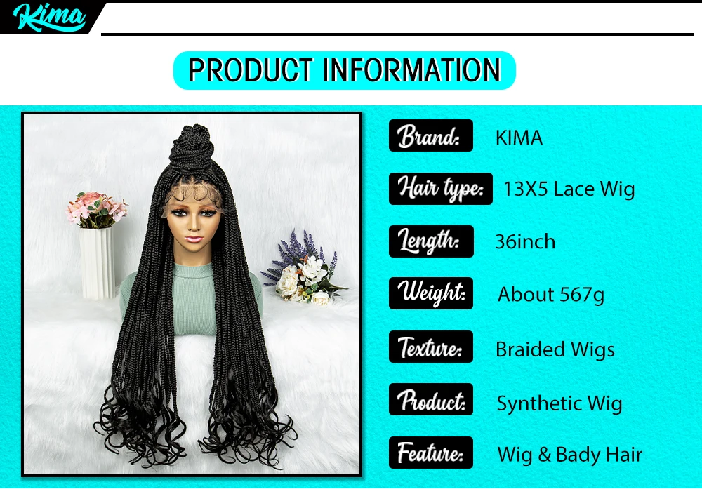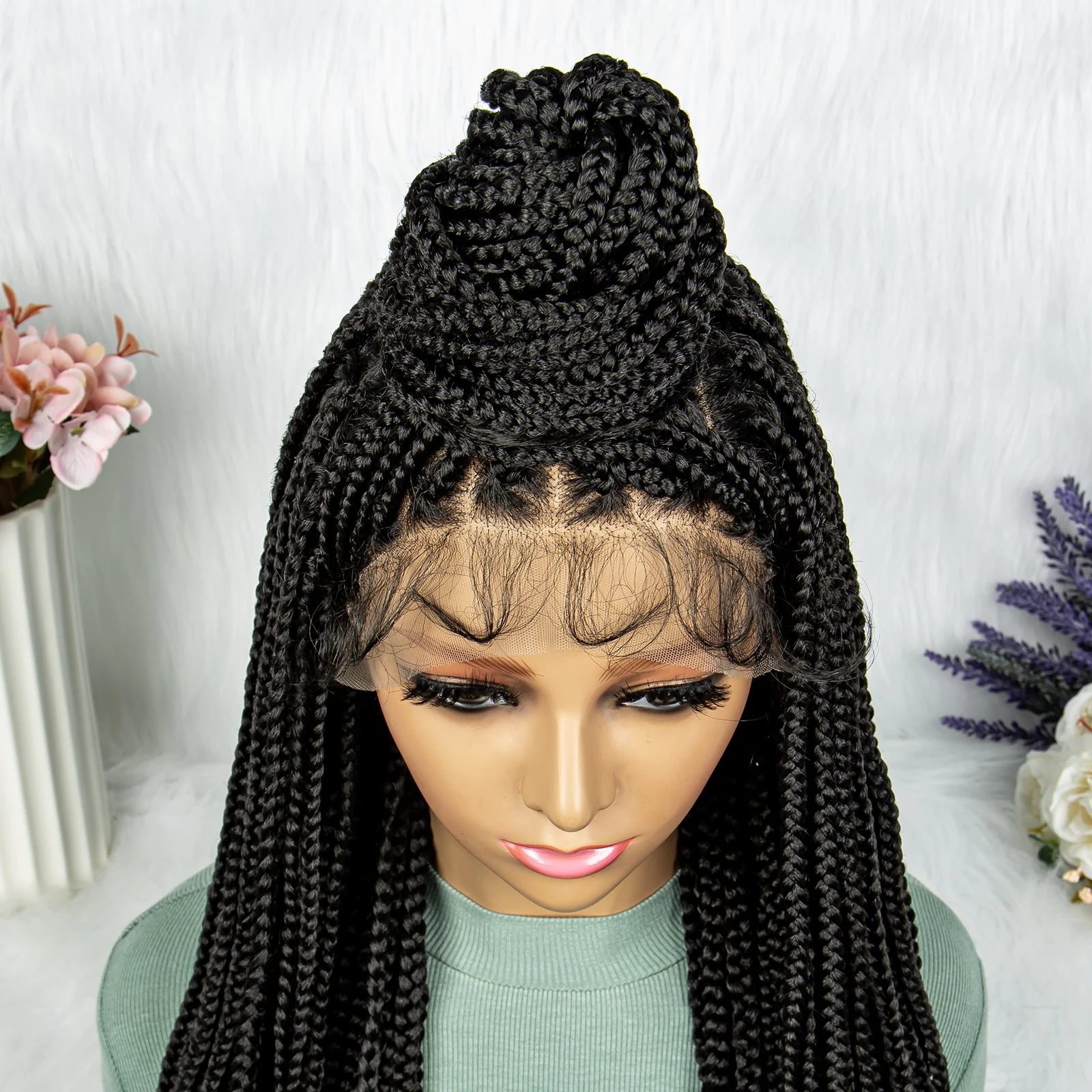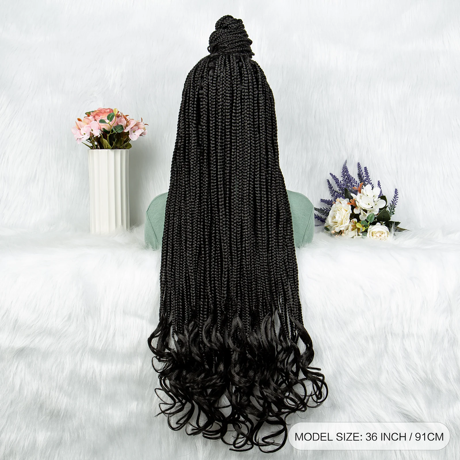 Synthetic Box Braided Wig With Bun Lace Front Long Braiding Hair Wavy Ends Knotless Braids Wig For Black Women