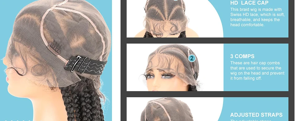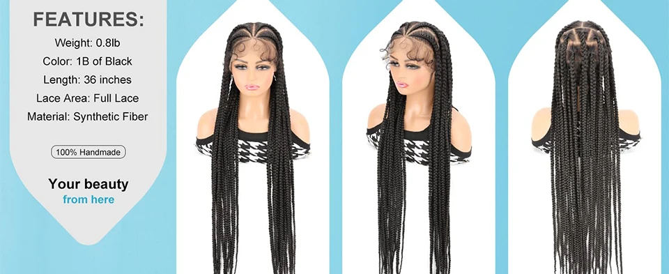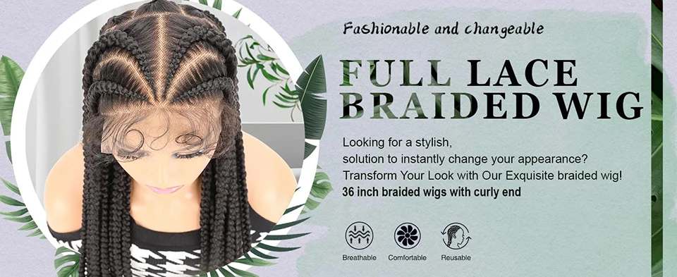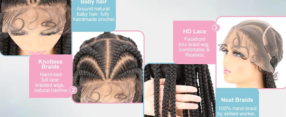 Synthetic Box Braided Wigs for Black Women 36 inch HD Full Lace Knotless Cornrow Braid Wig with Baby Hair Afro Lace Front Wig