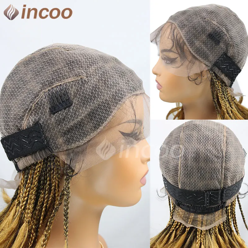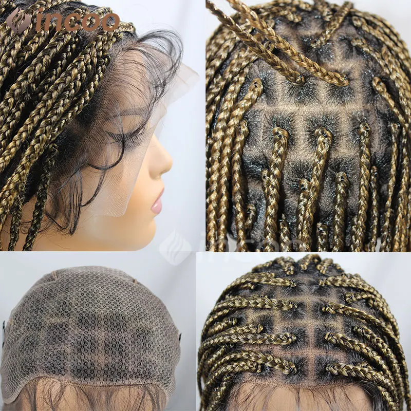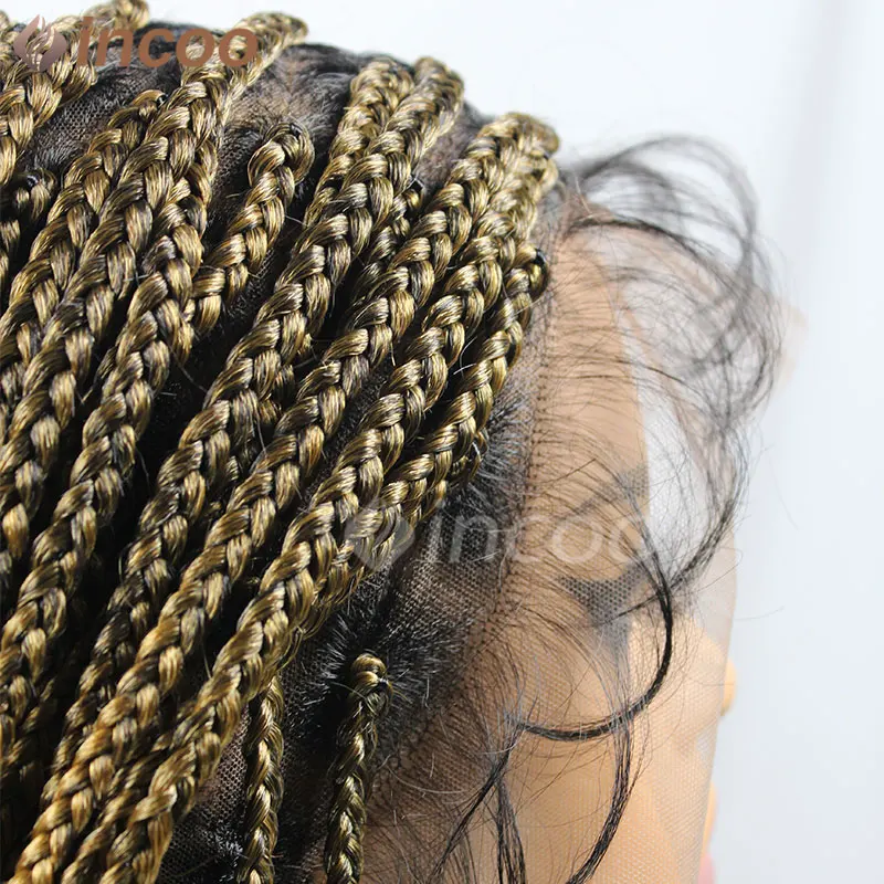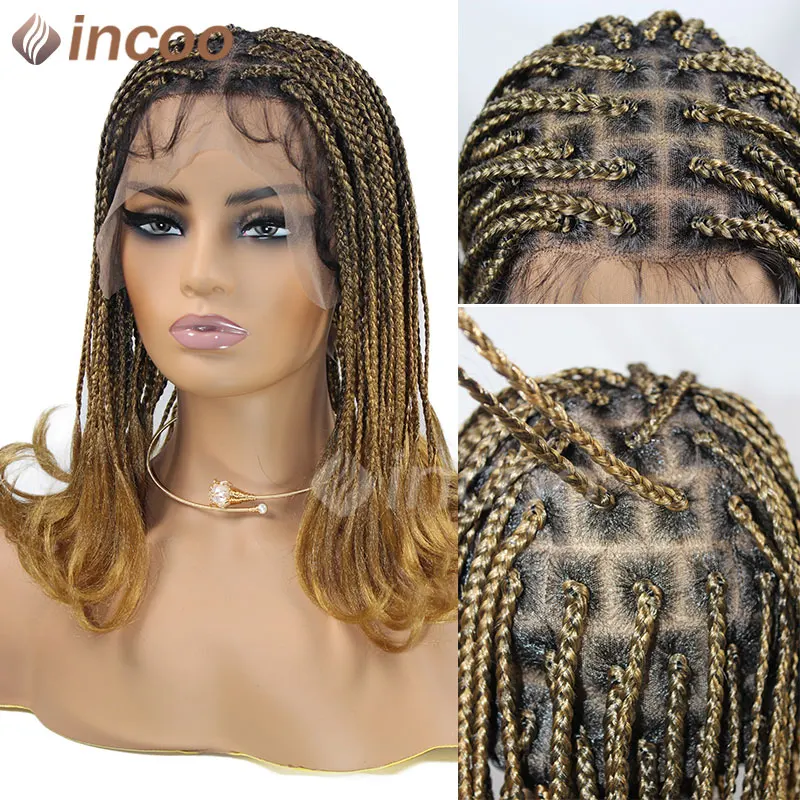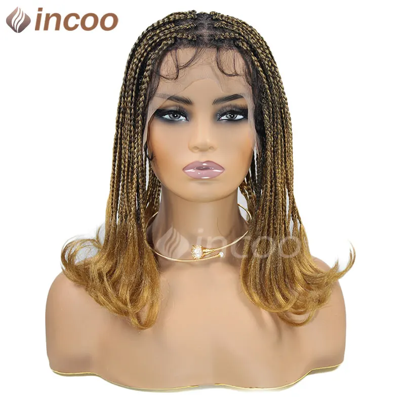 Synthetic Box Braided Wigs For Black Women Jumbo Braids Wigs Box Braids Cornrow Ombre Blonde African Short Bob Braiding Hair Wig