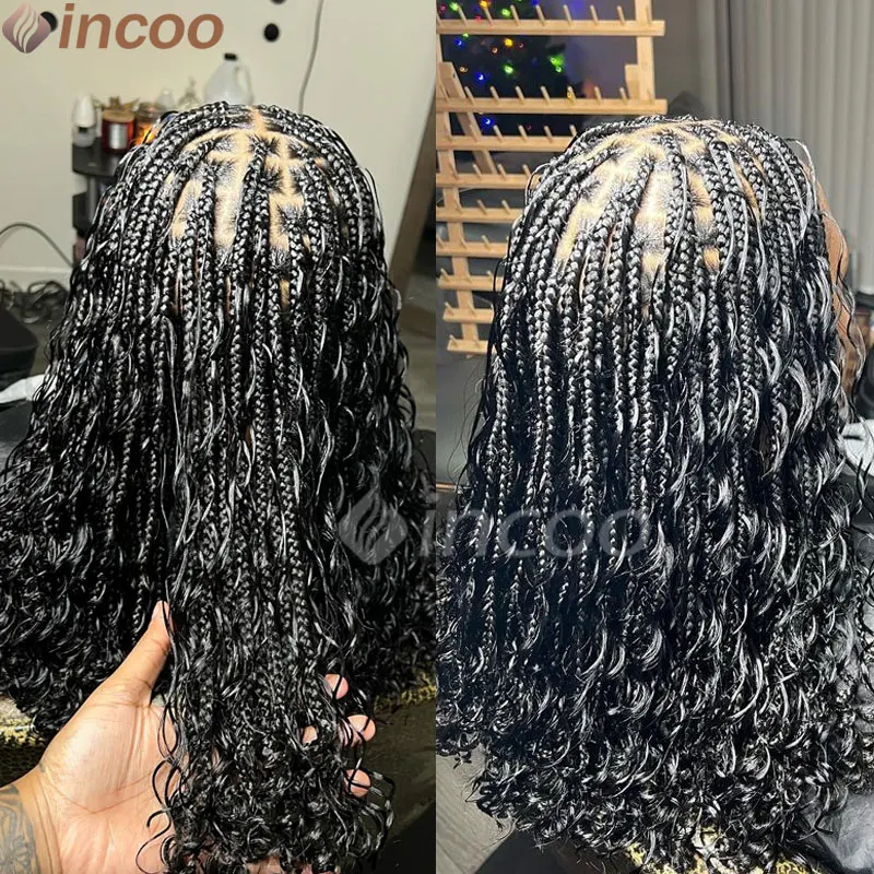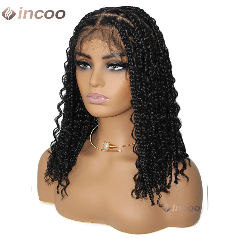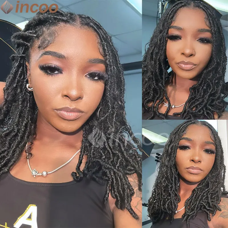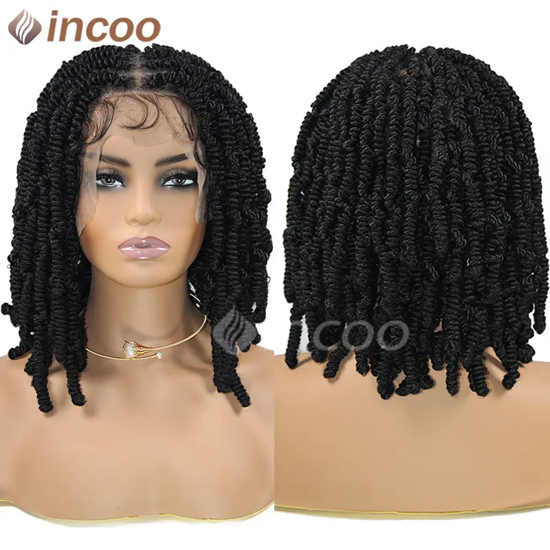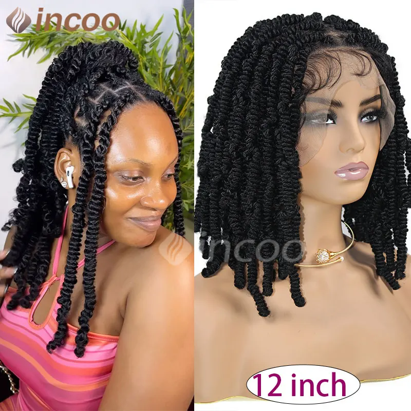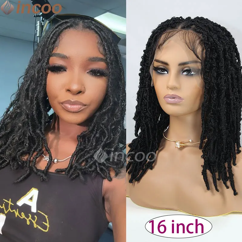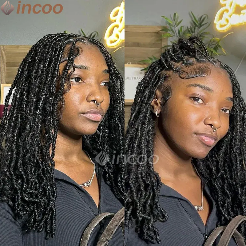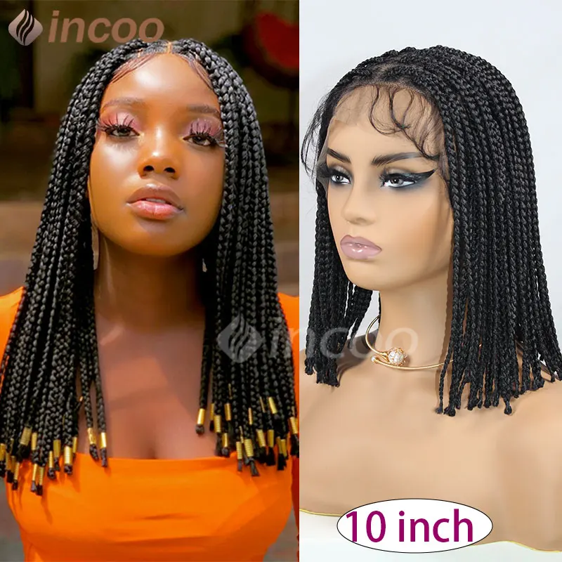 Synthetic Box Braided Wig Full Lace Front Wig Butterfly Locs Braided Wigs Dreadlock Wig 12" Short Knotless Wigs For Black Women