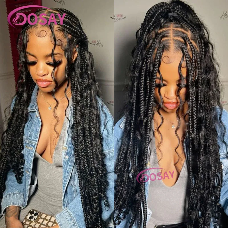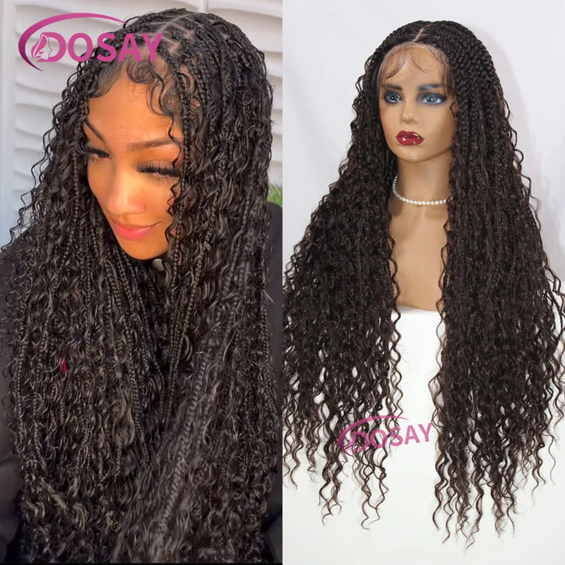 Synthetic Braid Lace Frontal Wig Faux Goddess Locs Boho Braided Wigs With Baby Hair Black Twist Wigs Full Lace Braid Wigs 32Inch