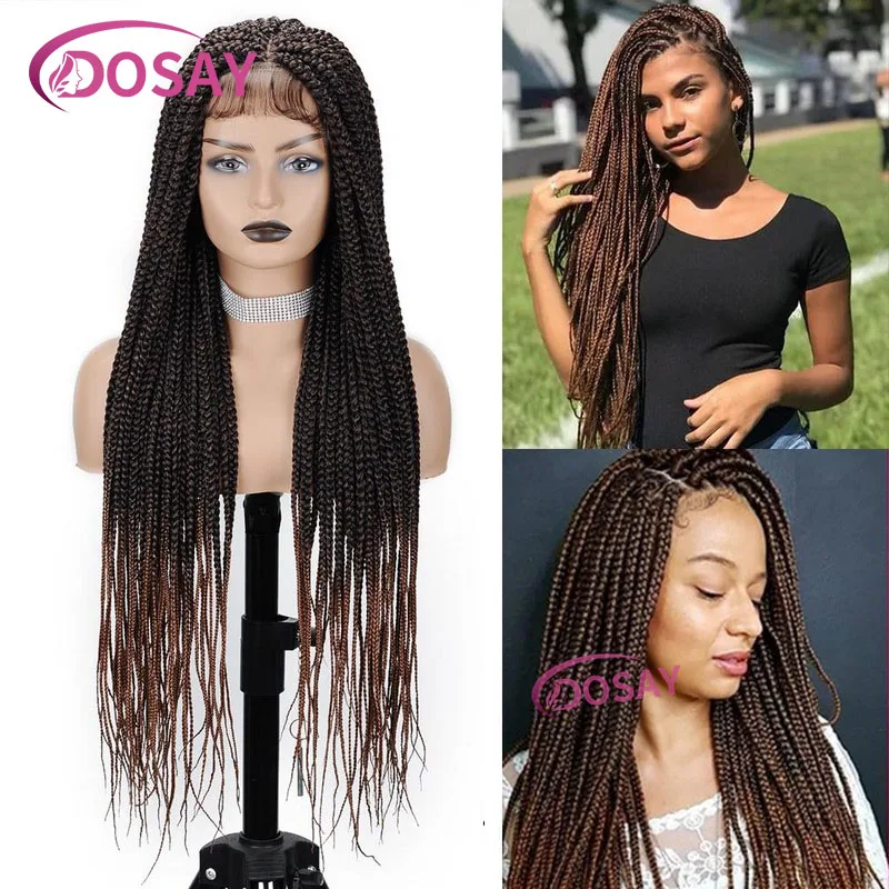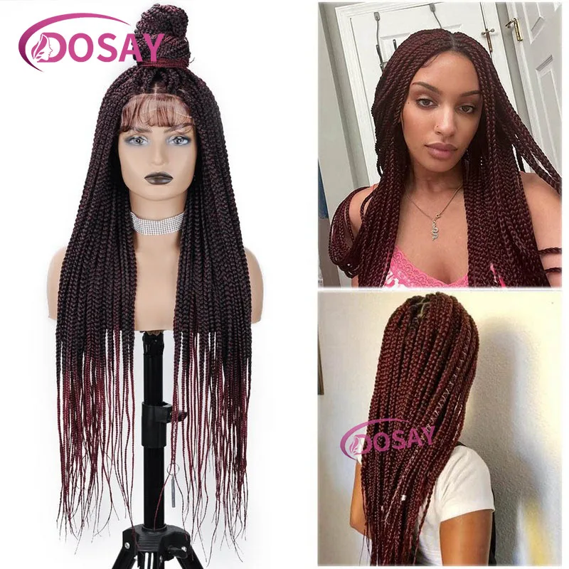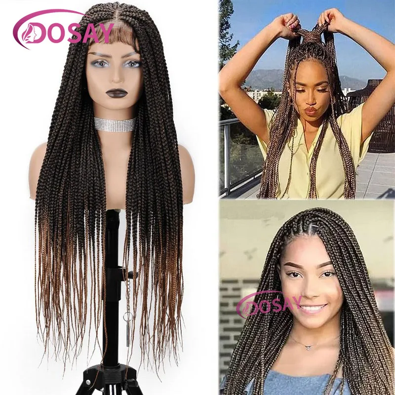 Synthetic Braided Lace Front Wigs With Baby Hair 360 Full Lace Frontal Wig Jombo Knotless Box Braided Wig For Black Women 36Inch