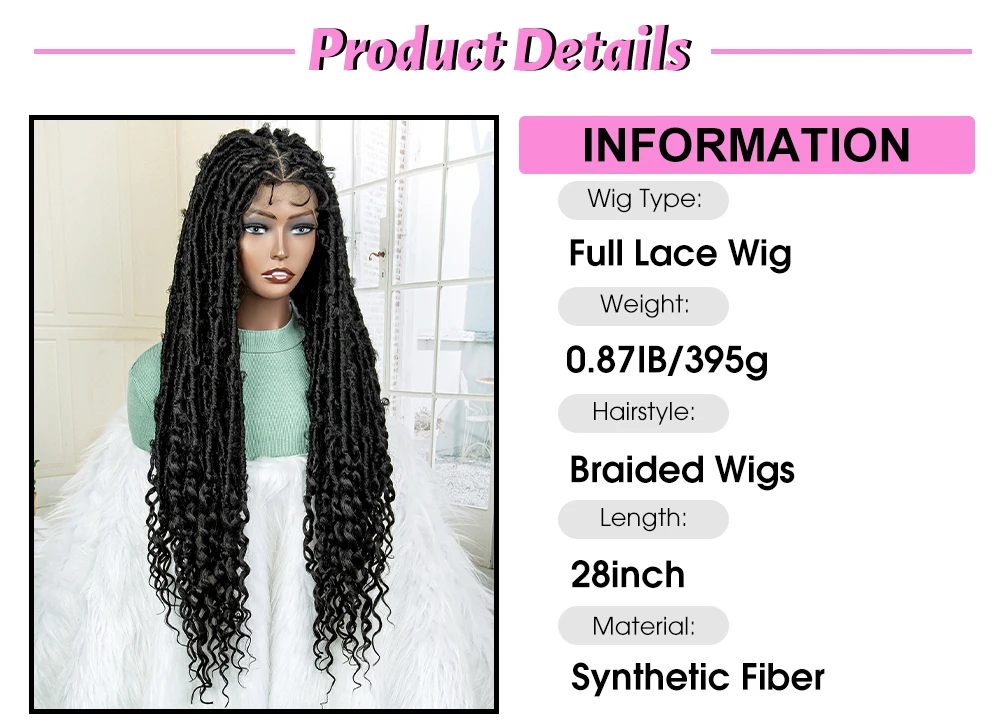 Synthetic Braided Wigs 28 Inches Full Lace Frontal Wigs Water Curly Wave Knotless Dreadlock Braiding Wigs with Baby Hair