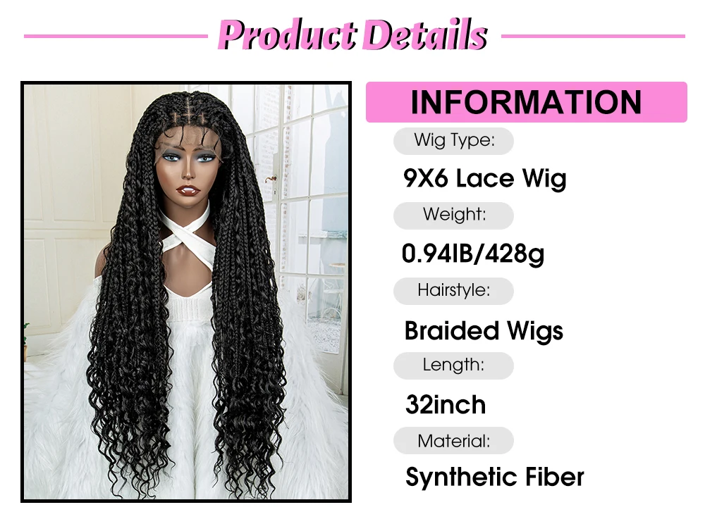Synthetic Braided Wigs Lace Front Wig Frontal Long Curly 32 Inches with Baby Hair for Black Woman Braided Box Afro Hair Wig