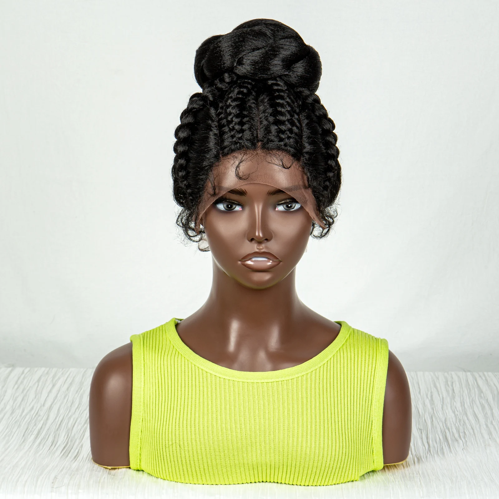 Synthetic Bun Updo Braided Wigs Knotless Box Lace Front Wig for Women Cornrow Ponytail Lace Braiding Hair Wig with Baby Hair