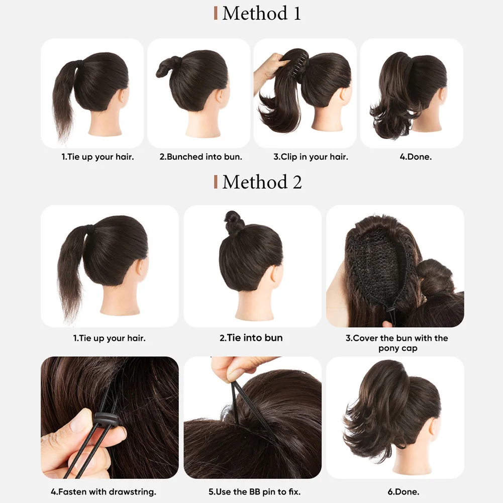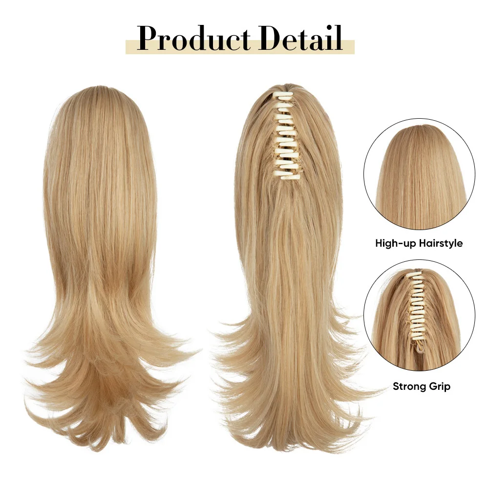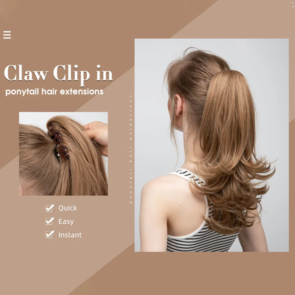 Synthetic Claw Clip In Ponytail Hair Extensions Hairpiece 14" Fake Blonde Hair Wavy False Pigtail With Elastic Band Horse Tail