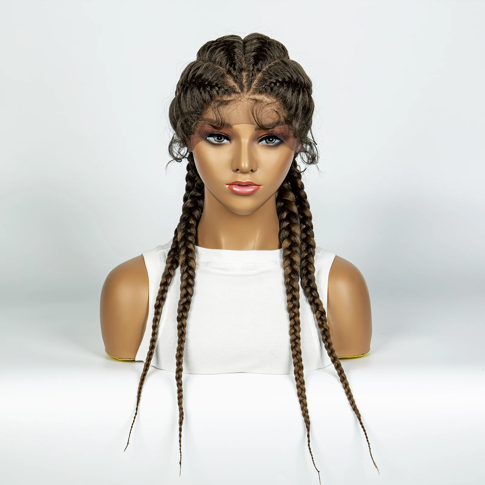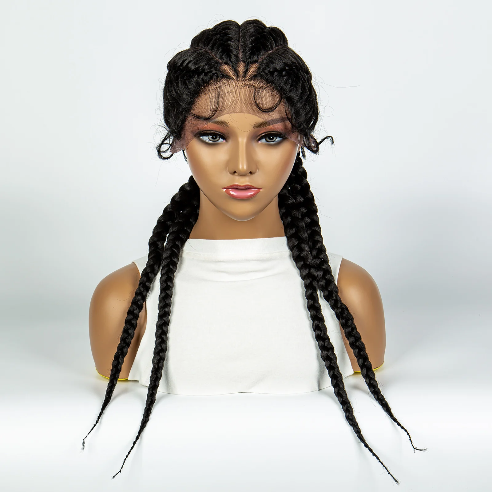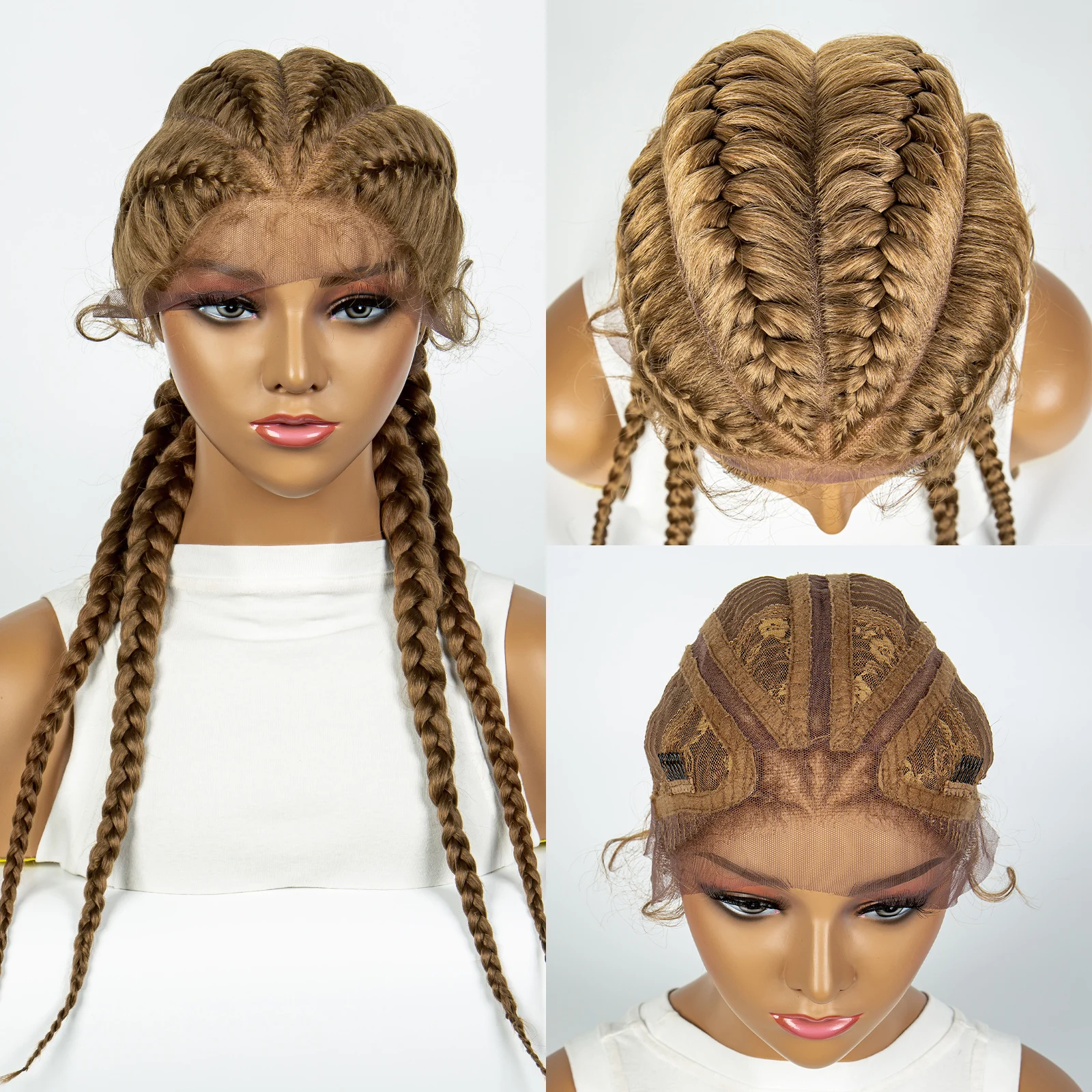 Synthetic Cornrow Braiding Wigs for Women with Baby Hair Natural Color Handmade Braided Braids Wig Lace Front Double Dutch Braid