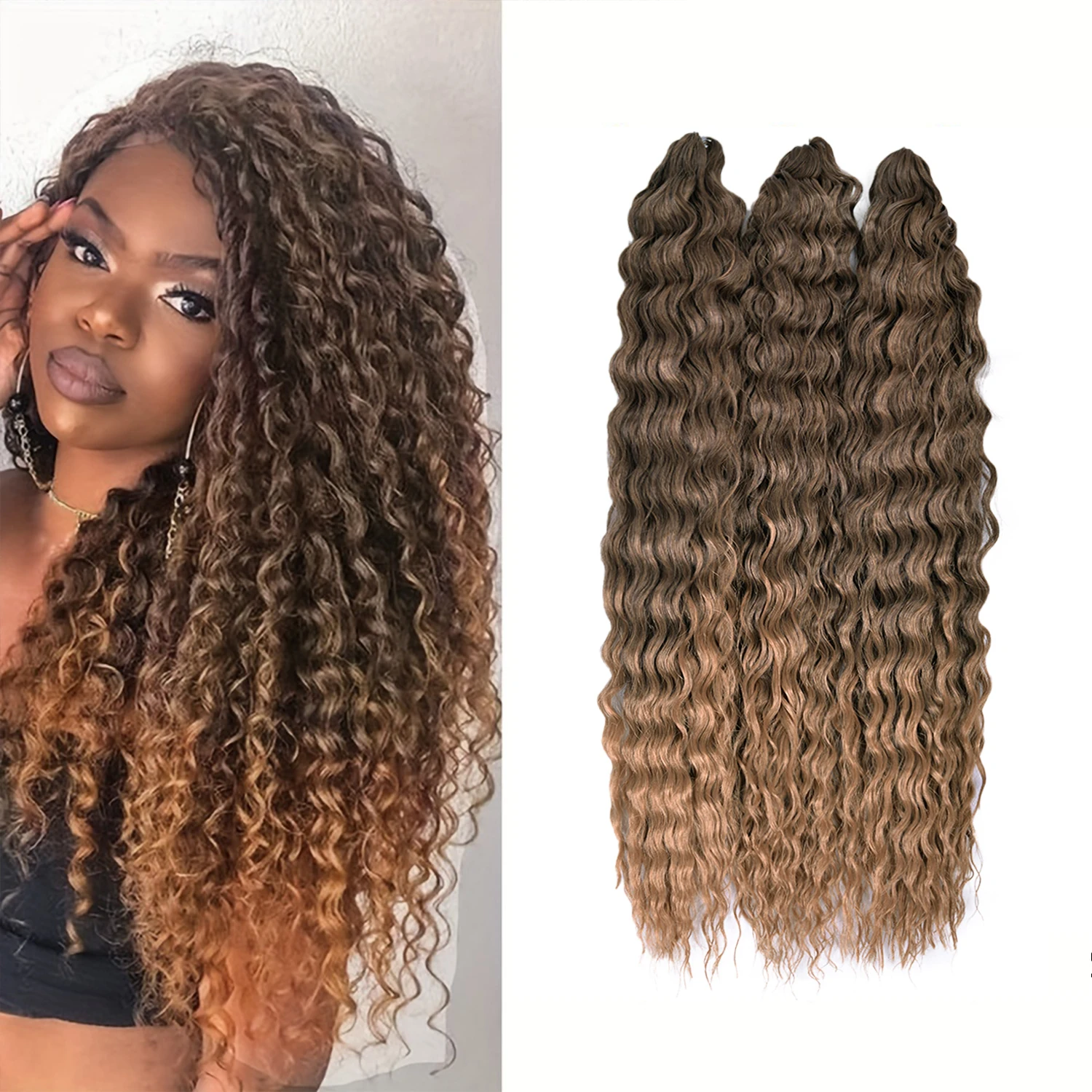 Synthetic Deep Wave Twist Crochet Braids Hair 22Inch Ariel Curl Crochet Hair Long Soft Curly Braiding Hair Extensions for Women