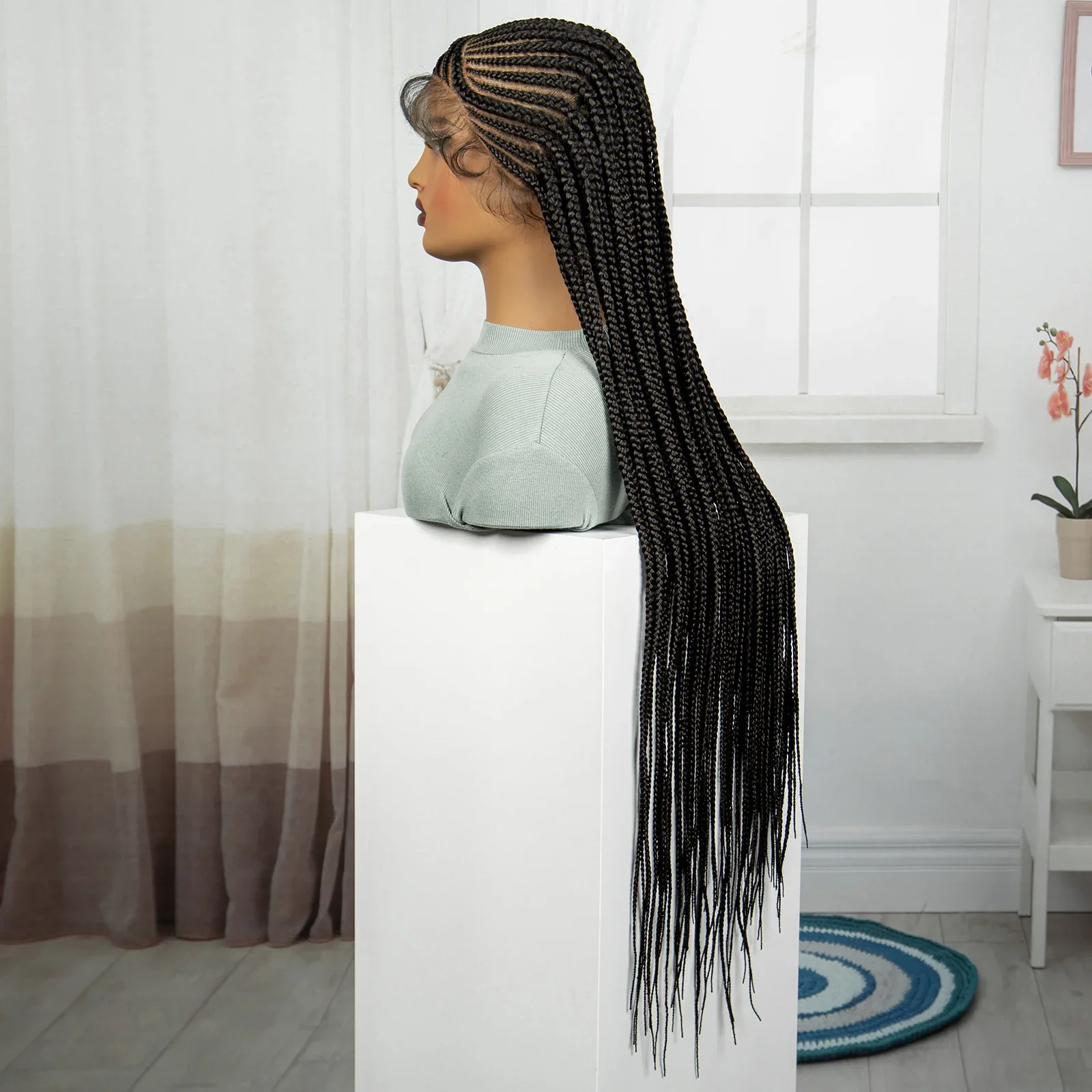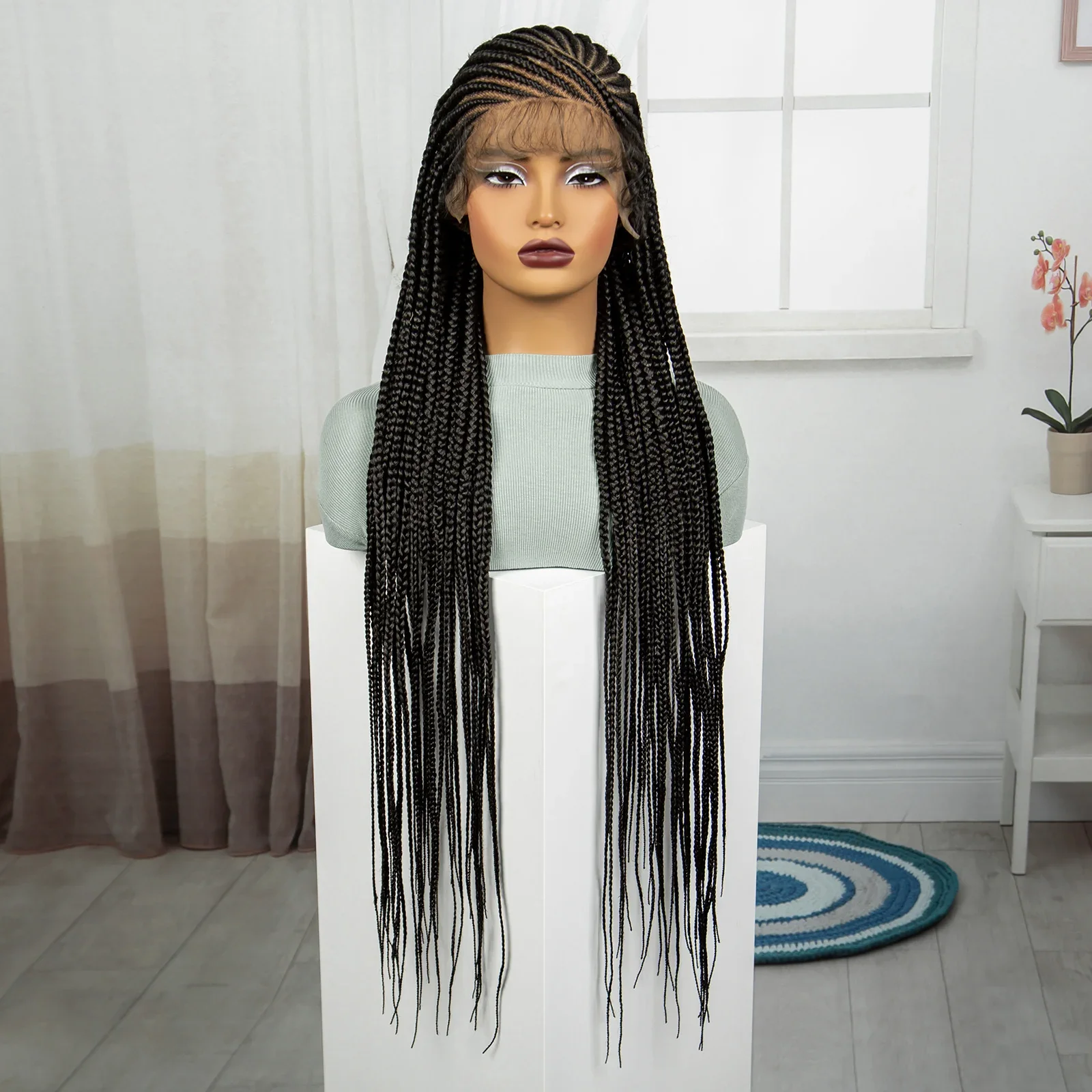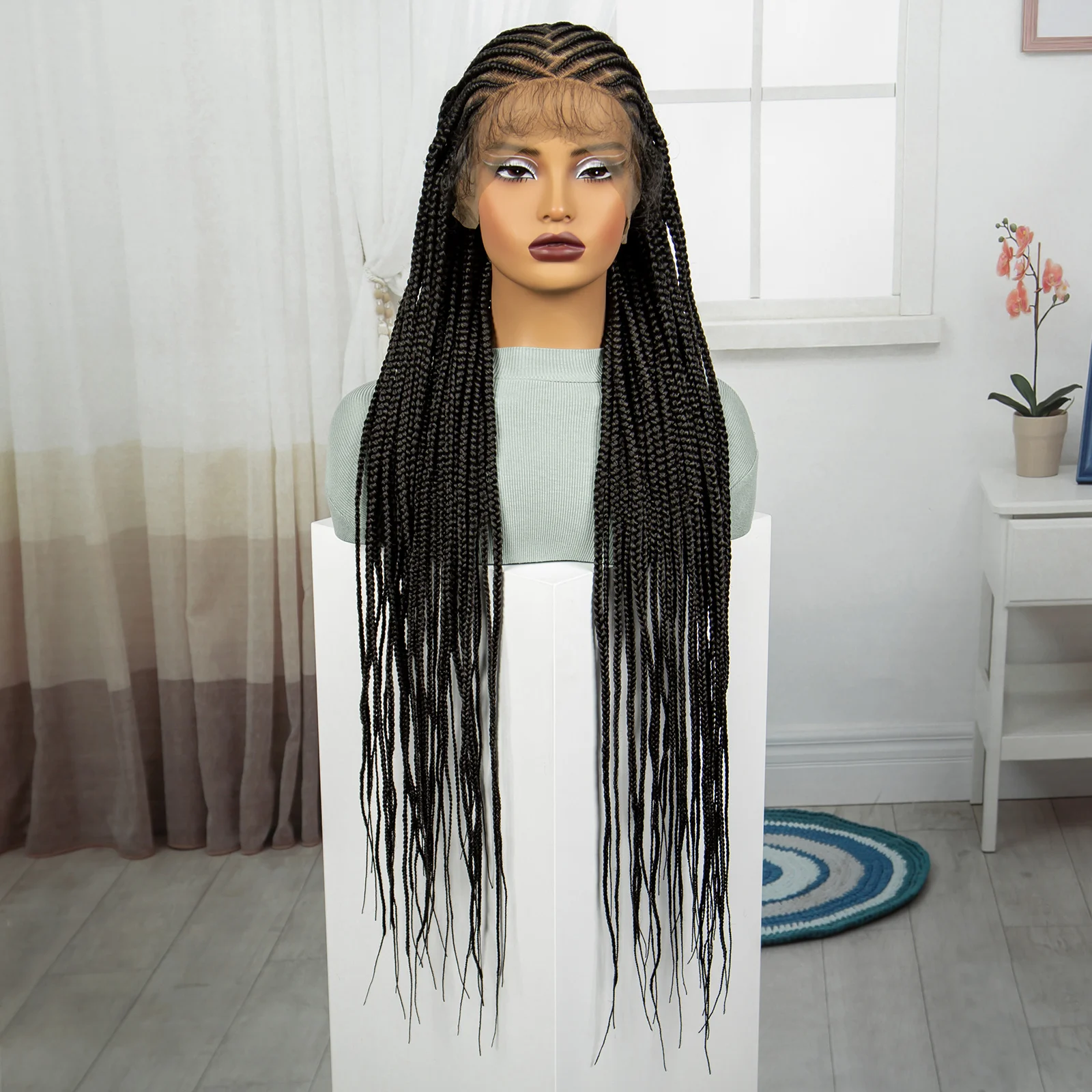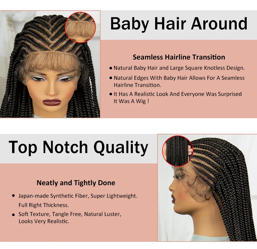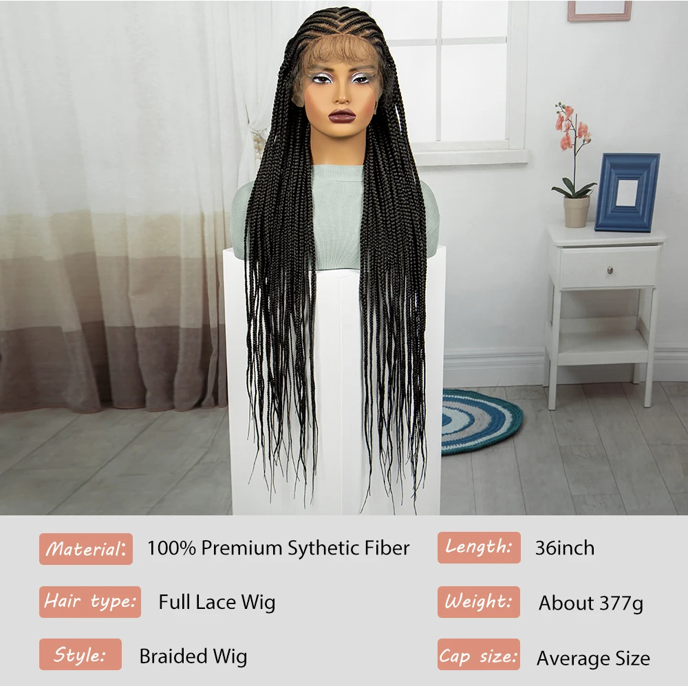 Synthetic Full Lace Braided Wig Cornrow Braided Wigs 36 Inch Natural Knotless Braiding Hair Wig with Baby Hair for Black Women
