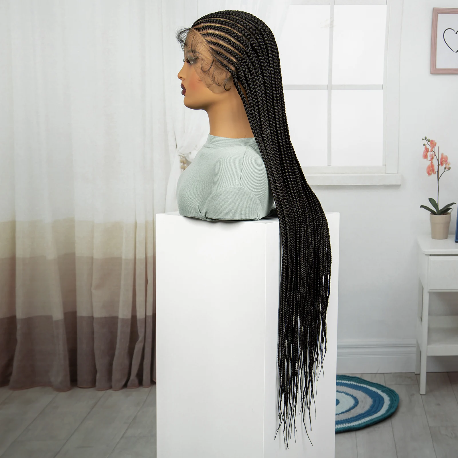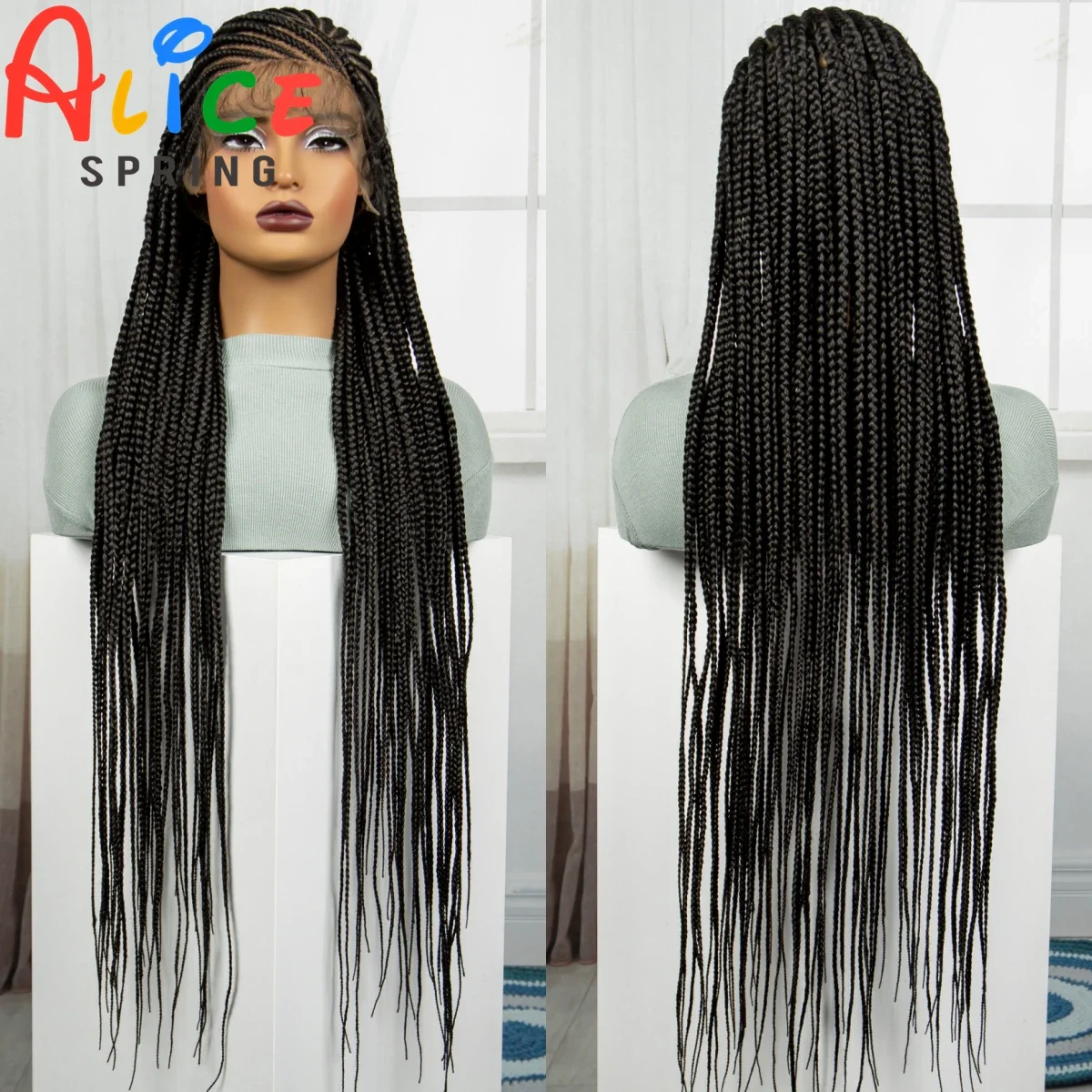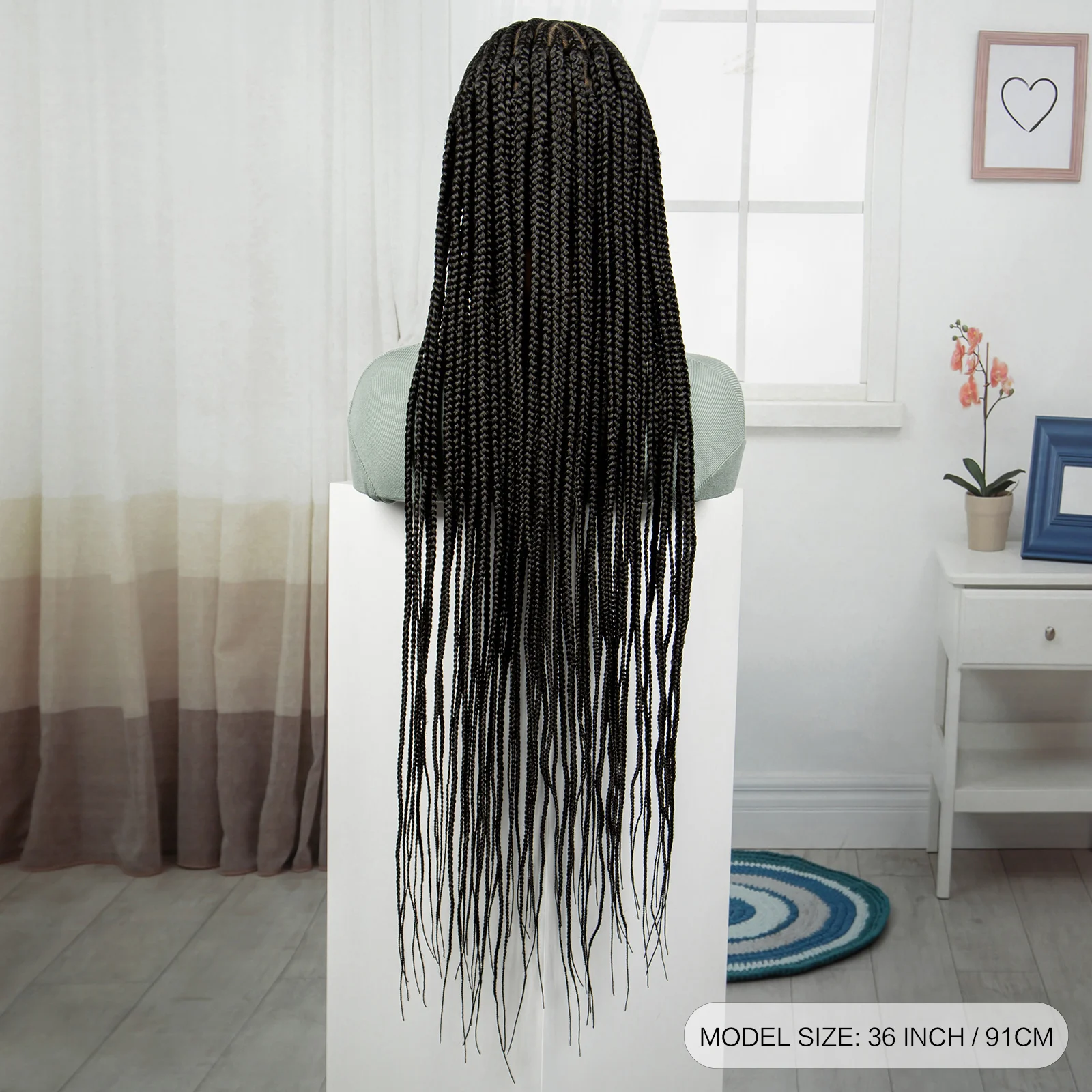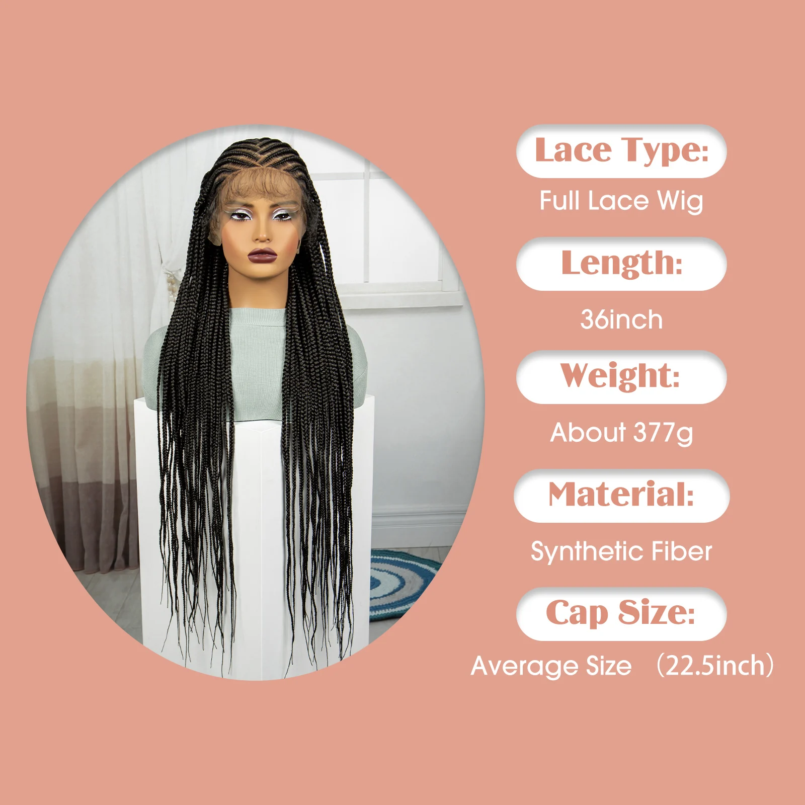 Synthetic Full Lace Braided Wig Cornrow Braided Wigs 36 Inch Natural Knotless Braiding Hair Wig with Baby Hair for Black Women
