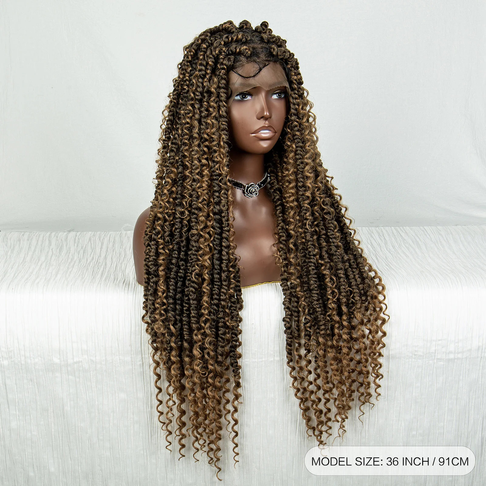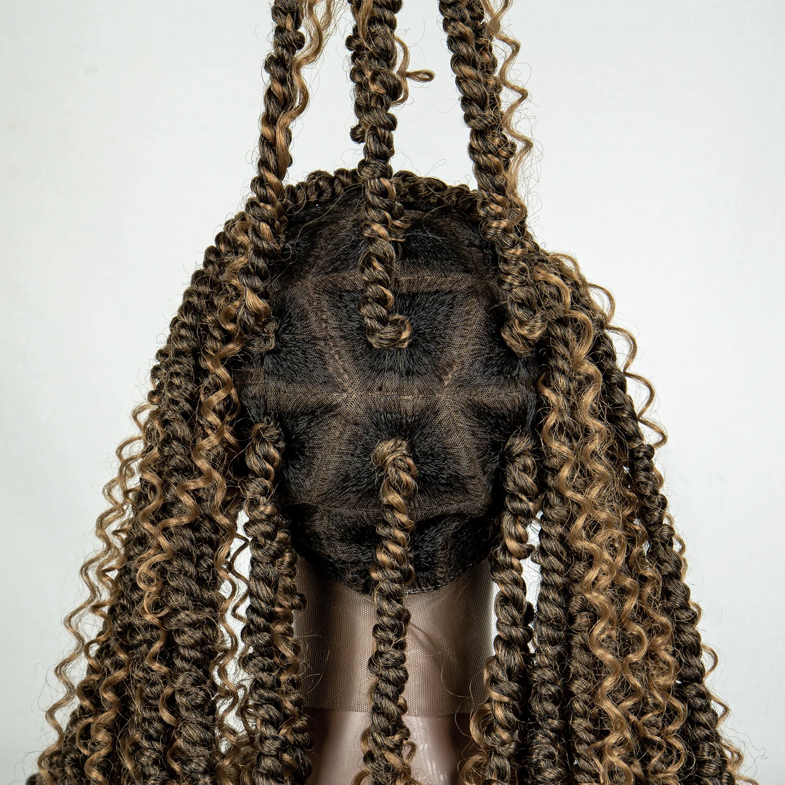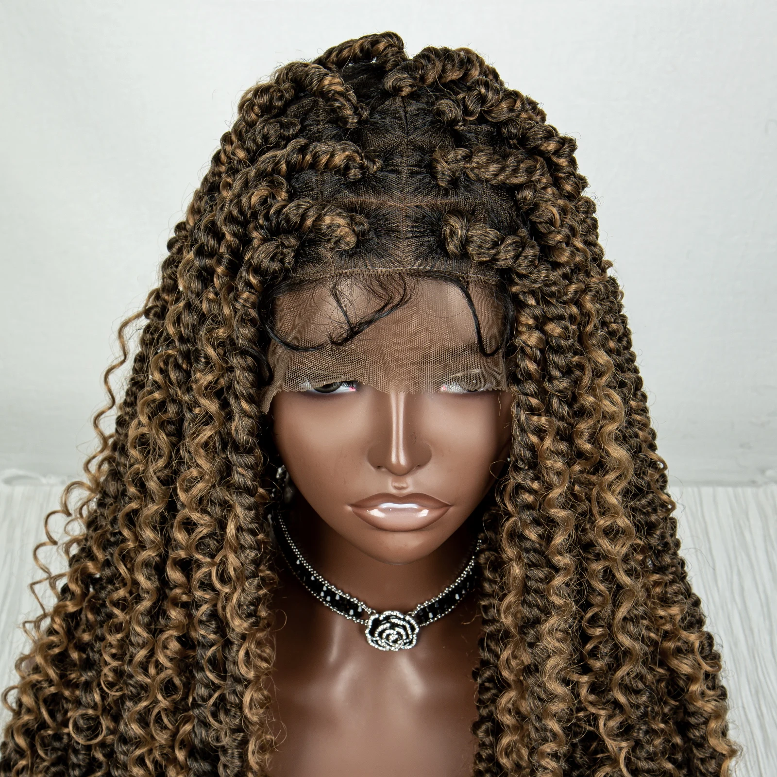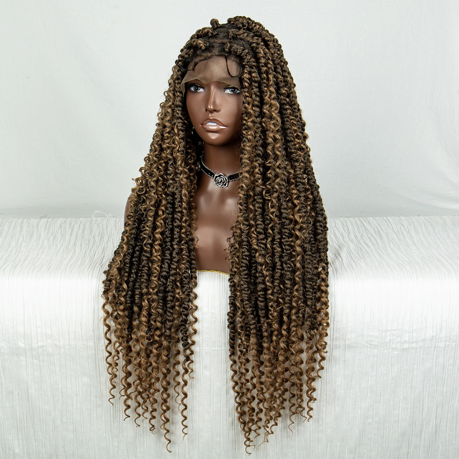 Synthetic Full Lace Braided Wigs Brown Curly Twist Braiding Hair Wig for Women Knotless Box Braids Lace Front Wig with Baby Hair