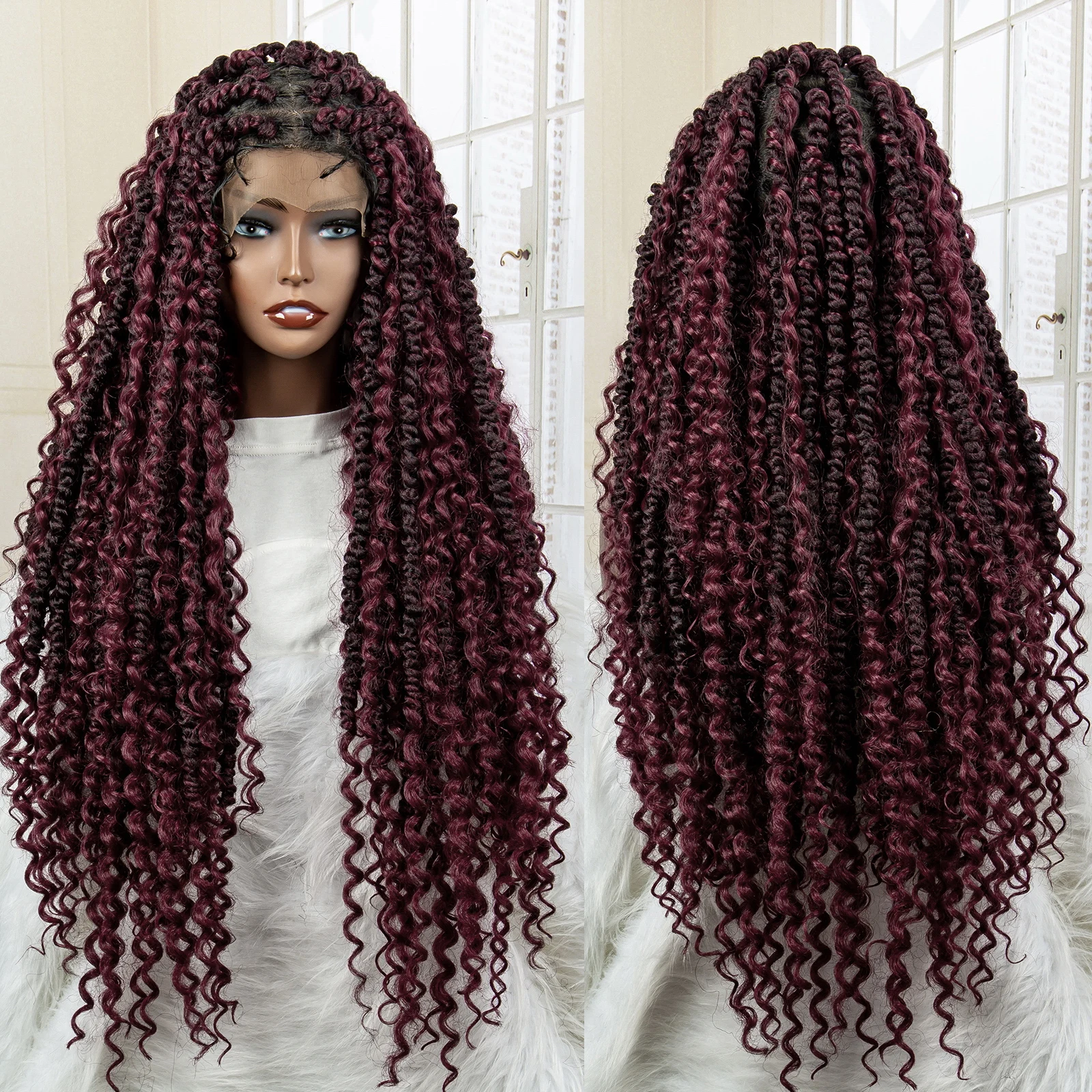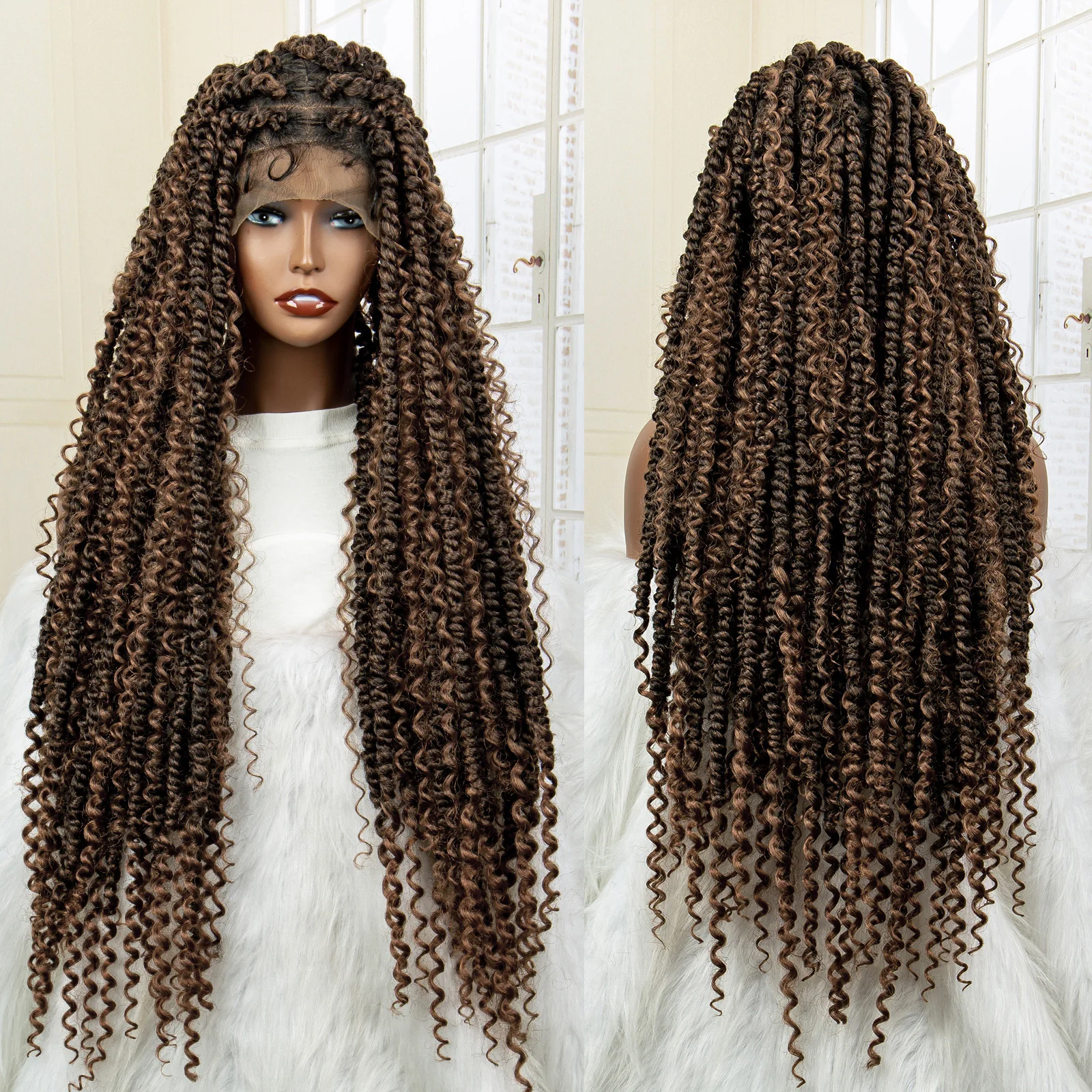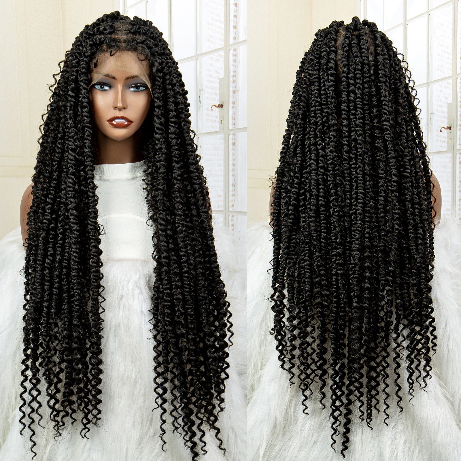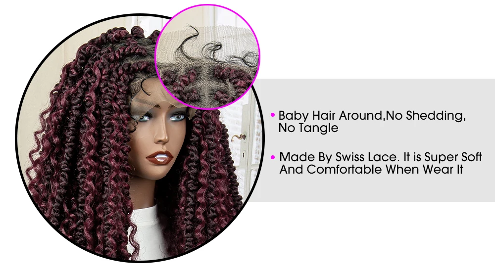 Synthetic Full Lace Braided Wigs Curly Twist Braiding Wig for Balck Women Lace Front Knotless Box Braids Hair Wig with Baby Hair