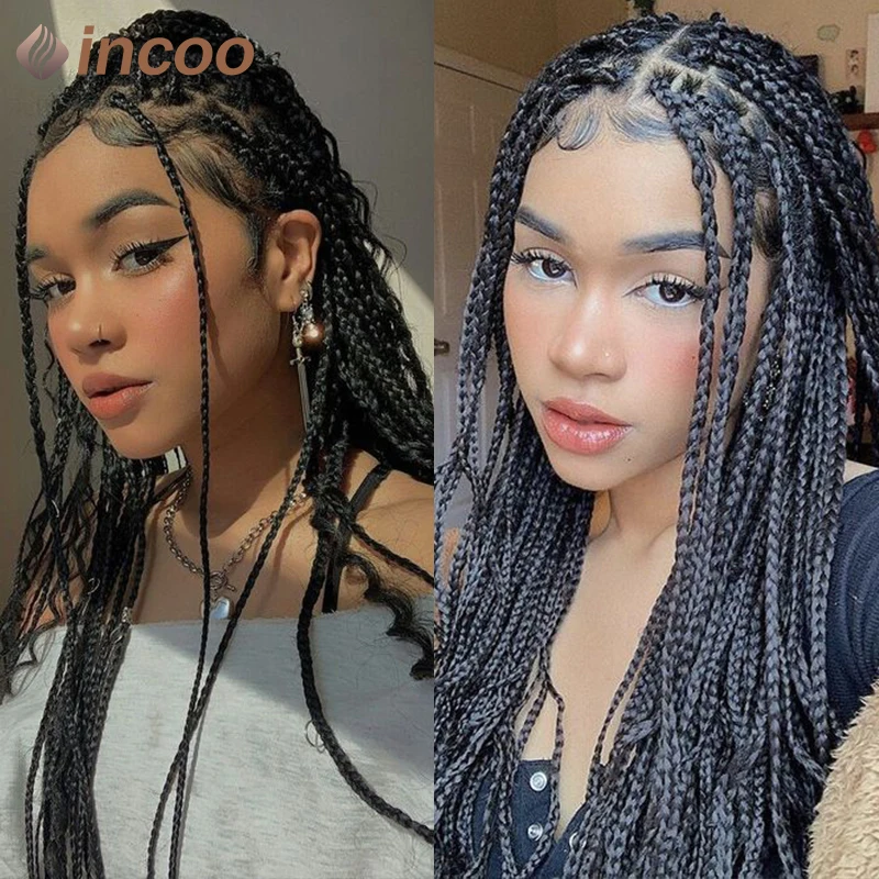 Synthetic Full Lace Braided Wigs for Black Women 36 Inches Knotless Box Braids Wig Lace Frontal Wig with Baby Hair Afro American