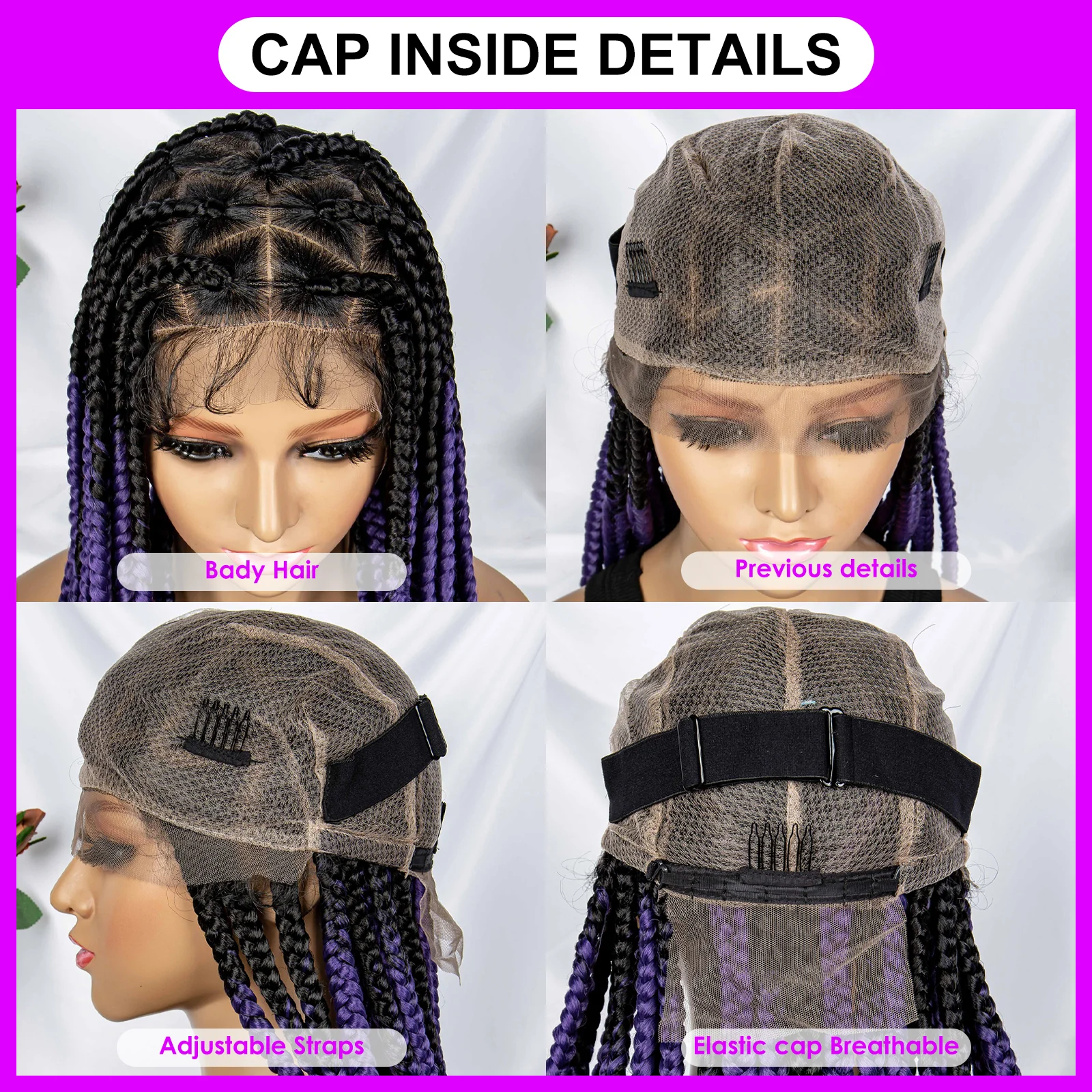 Synthetic Full Lace Braided Wigs Purple Colored Transparent Knotless Box Braids Wig Lace Front Braiding Hair Wig for Black Women
