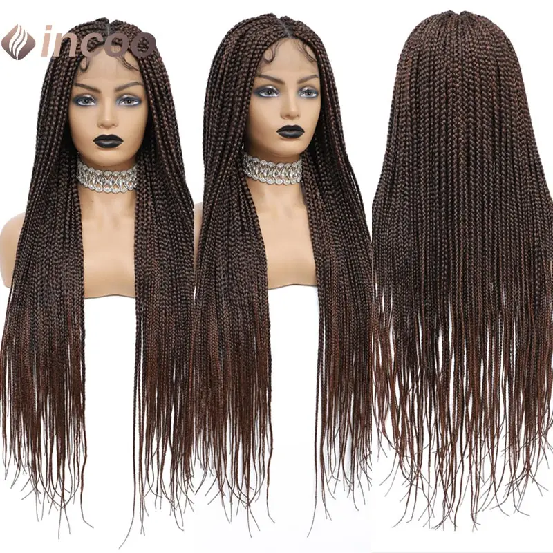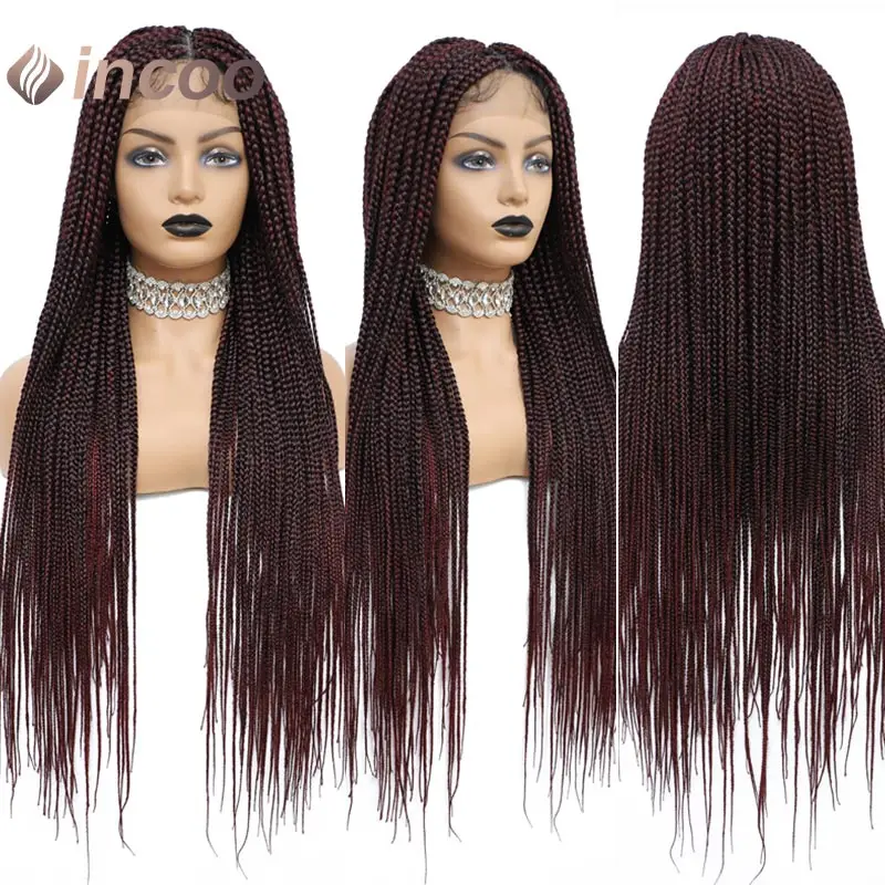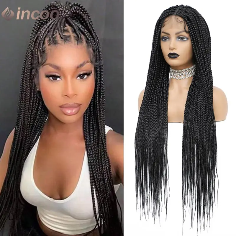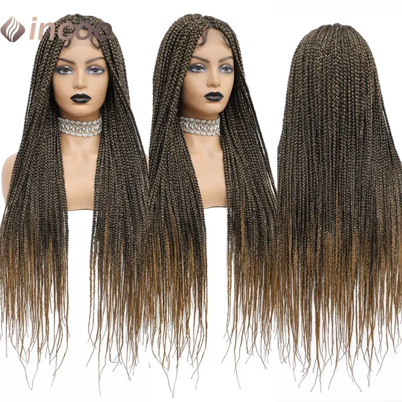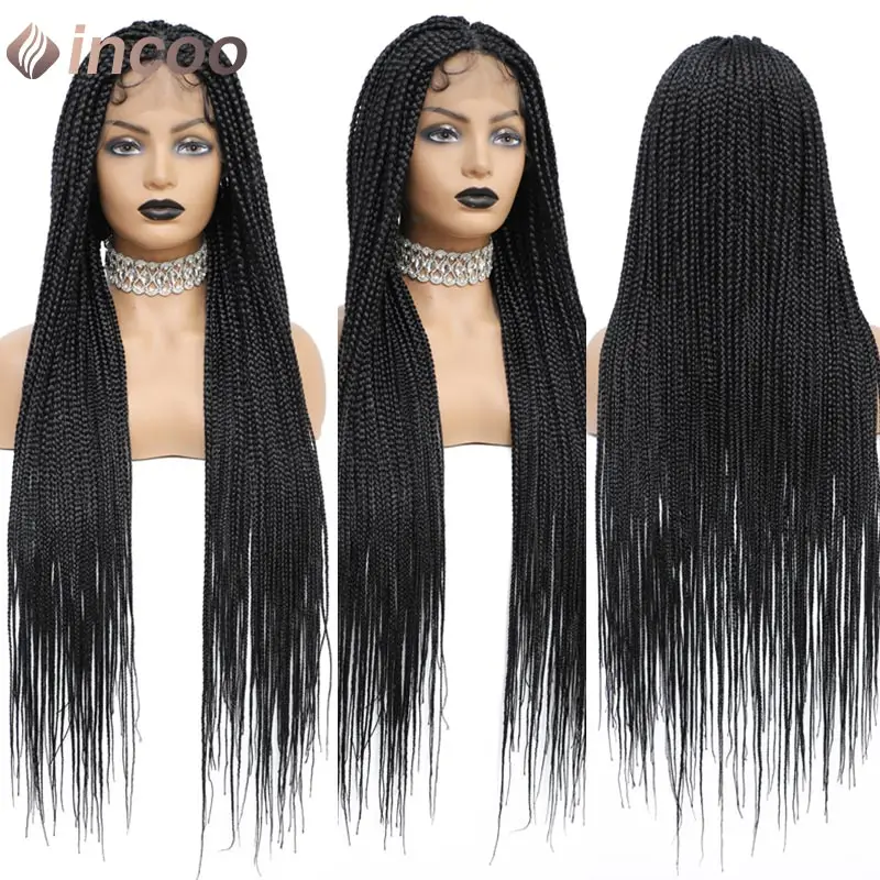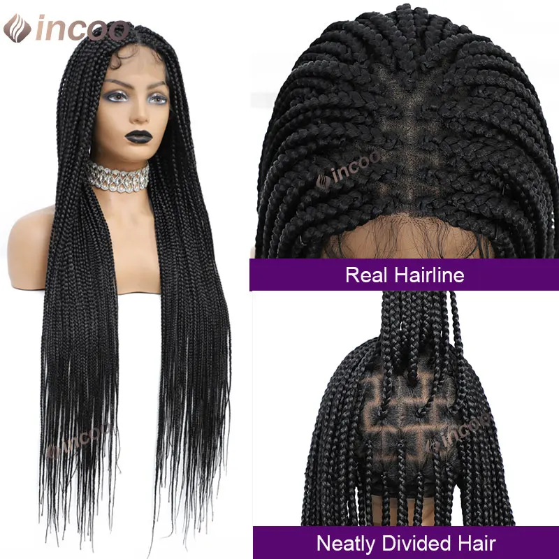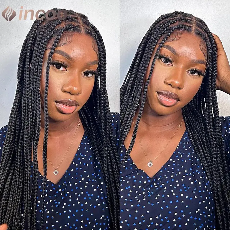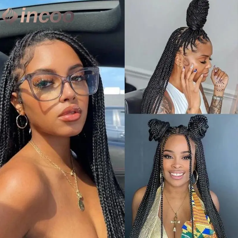 Synthetic Full Lace Braided Wigs Straight Knotless Box Braids Wig for Black Women Transparent Lace Frontal Braiding Hair Wigs