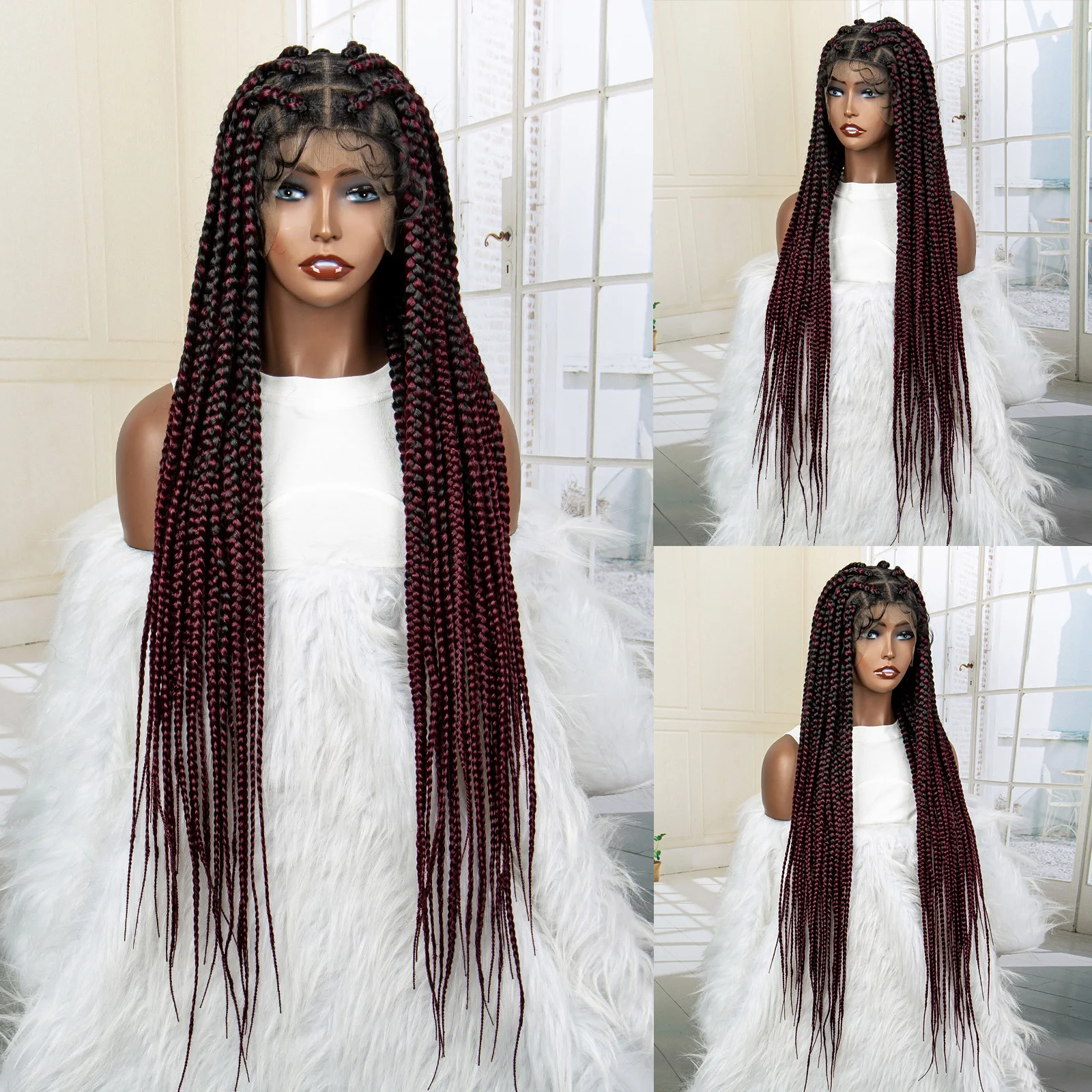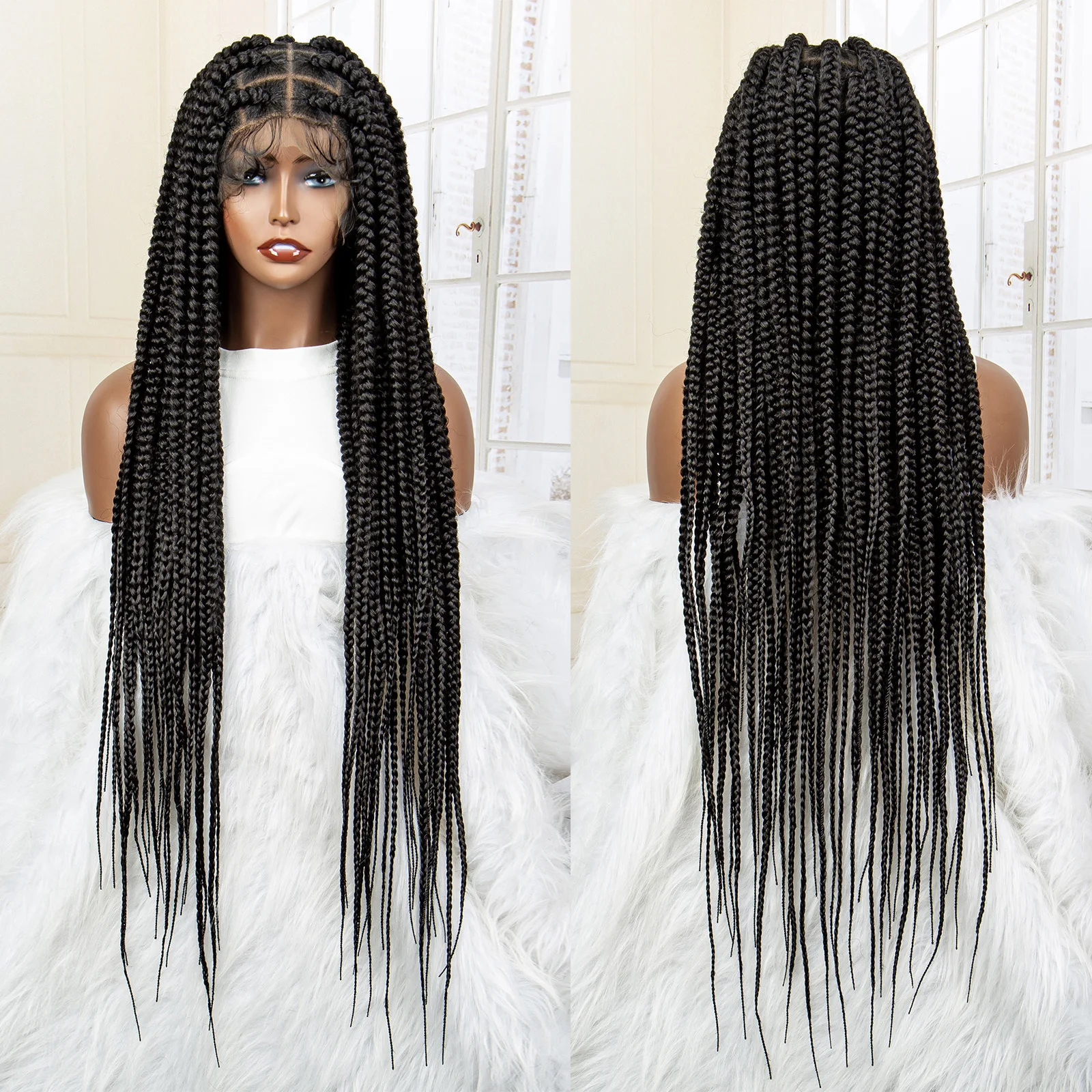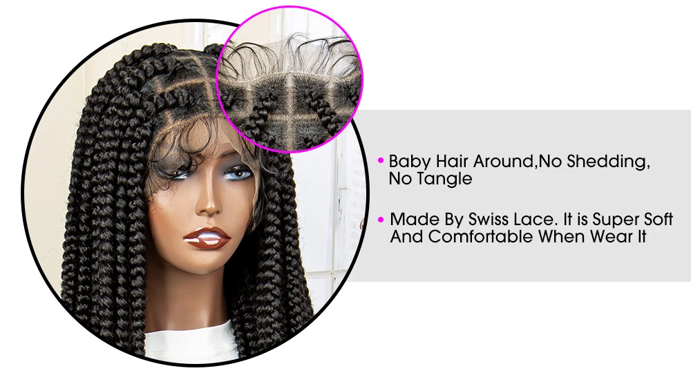 Synthetic Full Lace Cornrow Box Braided Wigs with Baby Hair Wigs for Black Women Lace Frontal Square Knotless Braiding Wigs