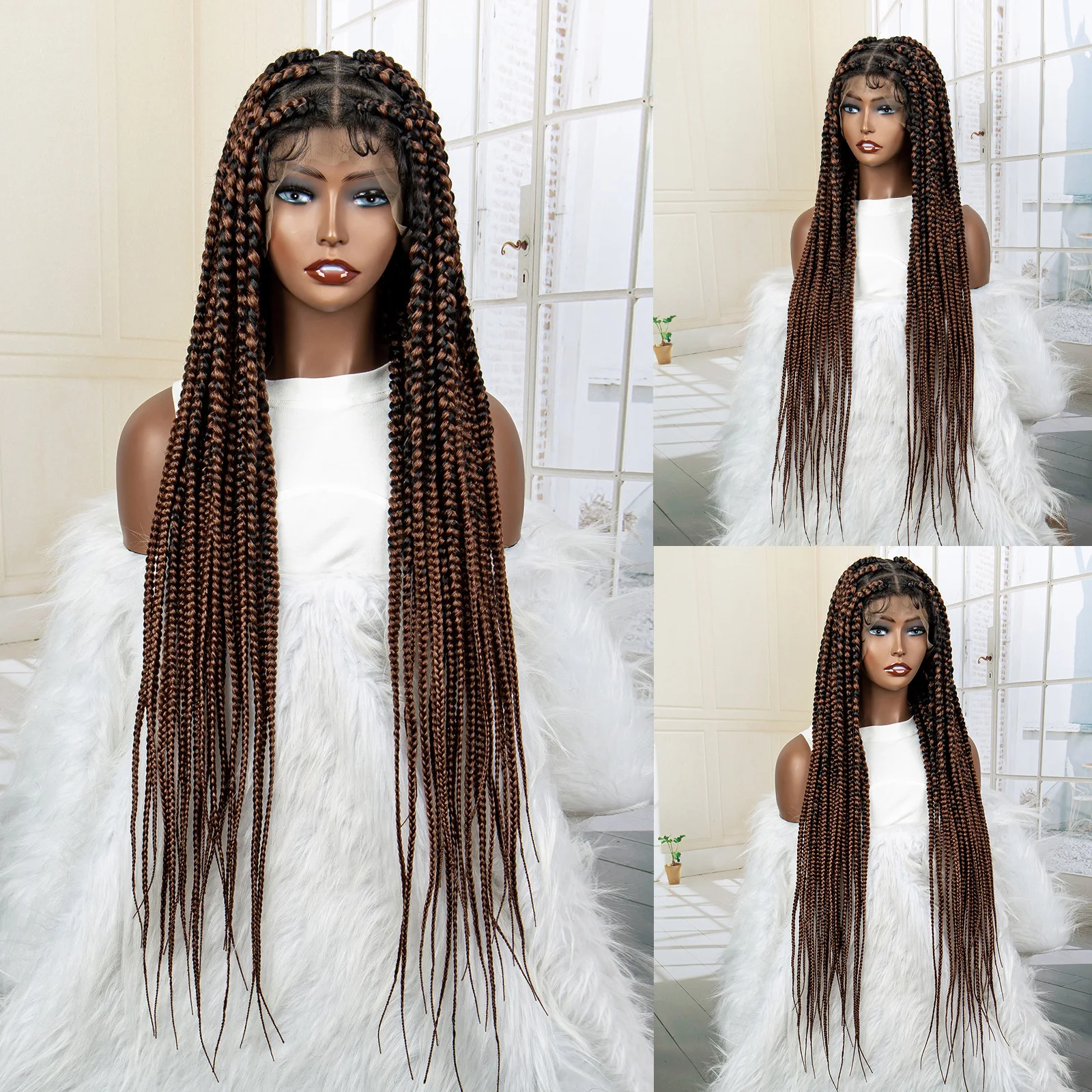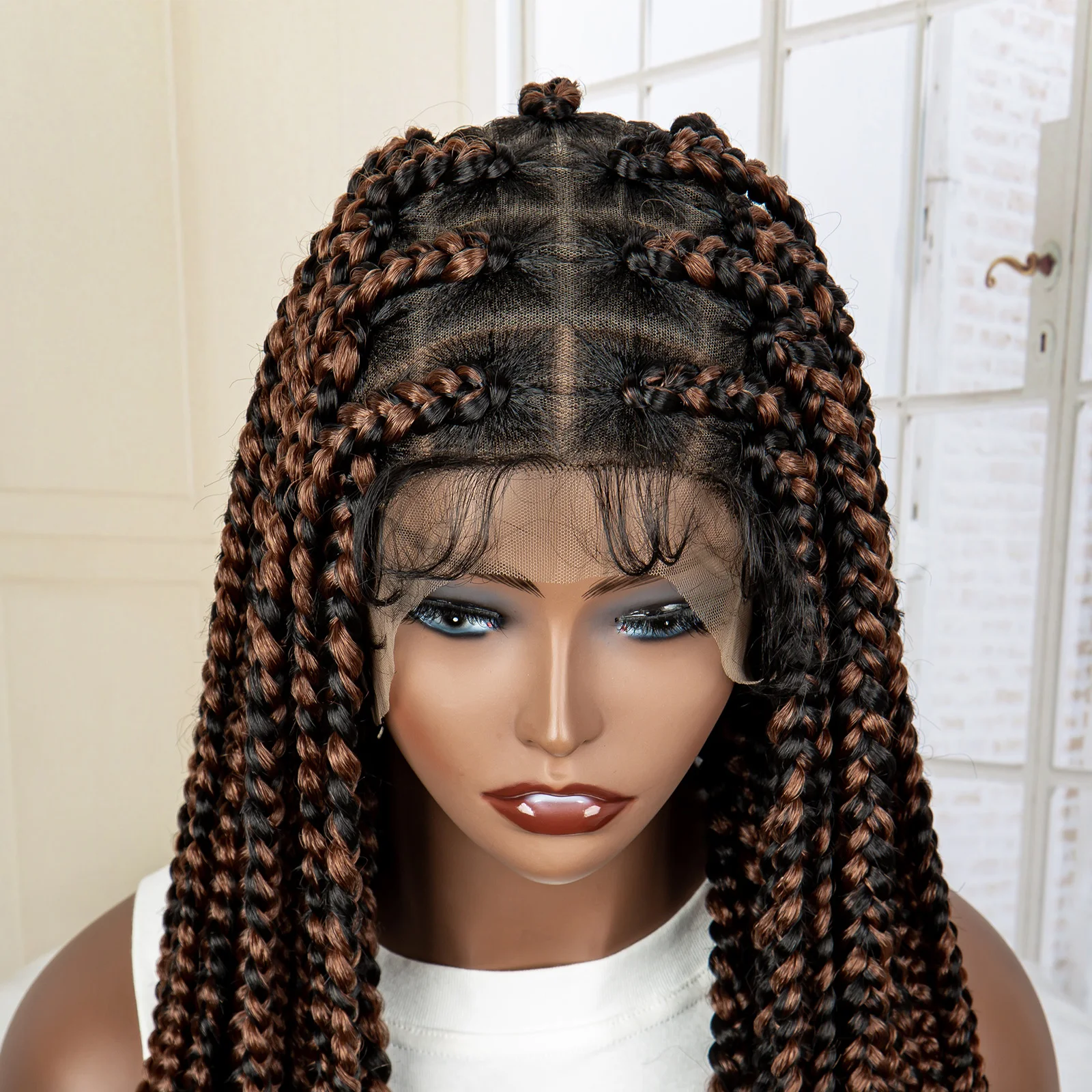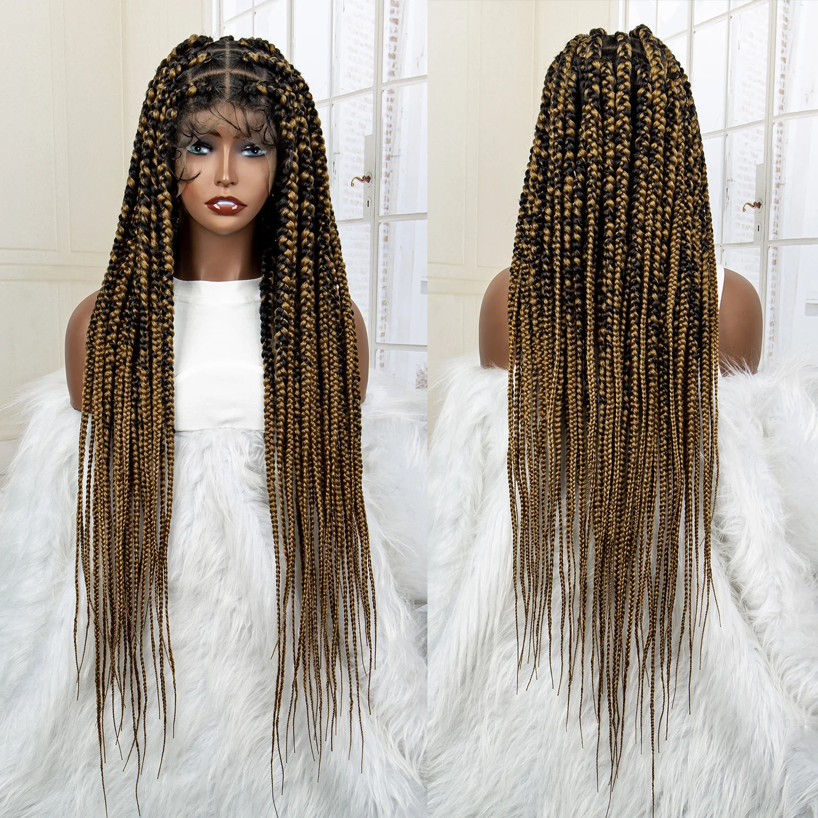 Synthetic Full Lace Cornrow Box Braided Wigs with Baby Hair Wigs for Black Women Lace Frontal Square Knotless Braiding Wigs