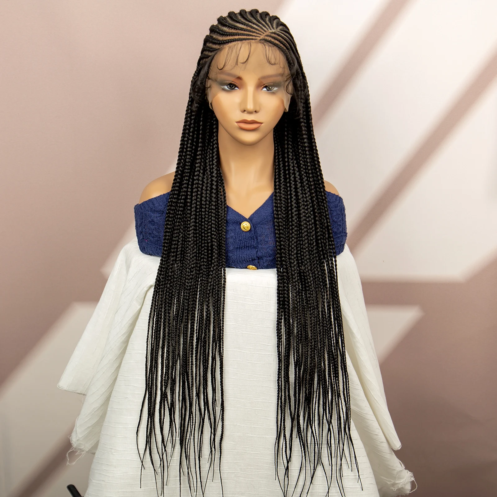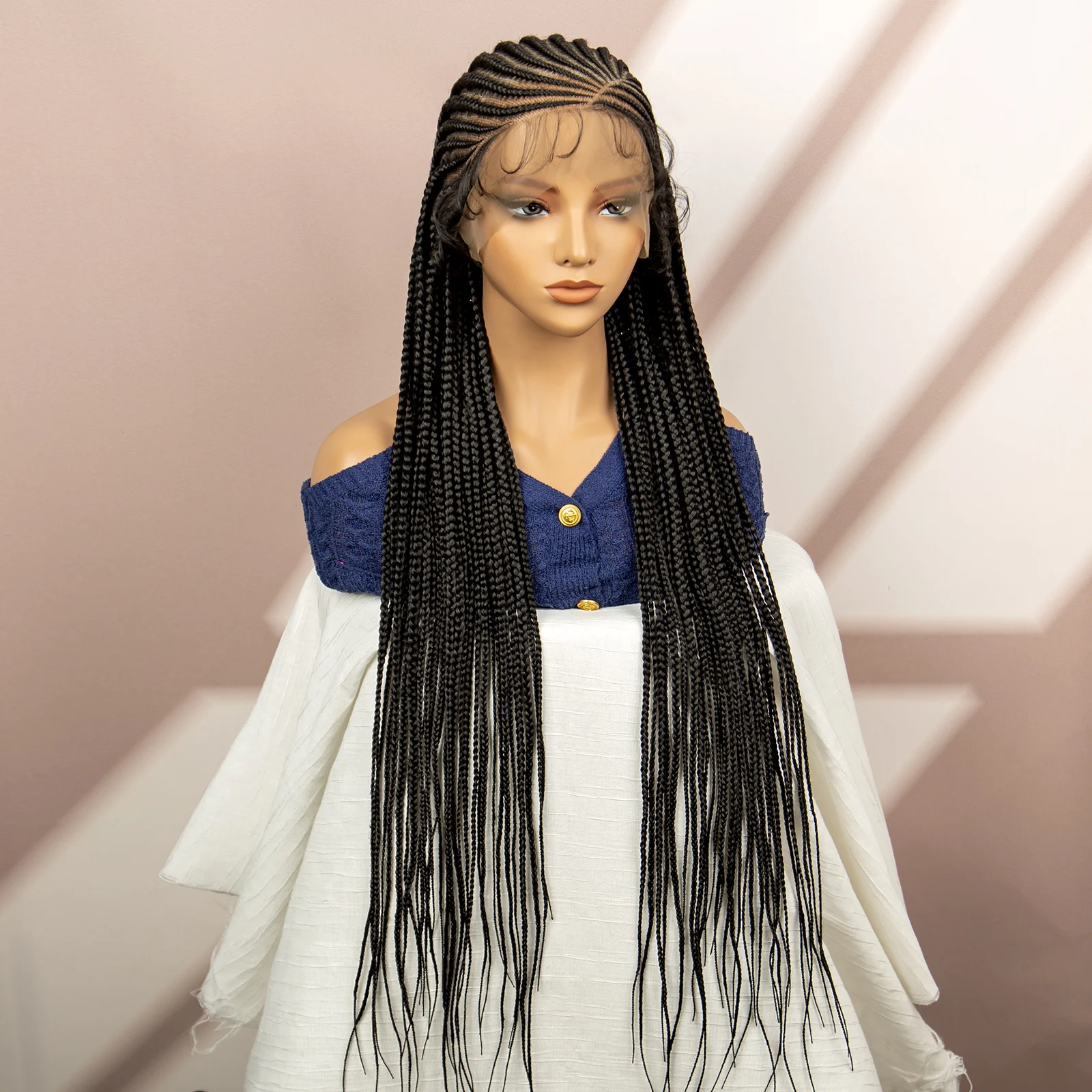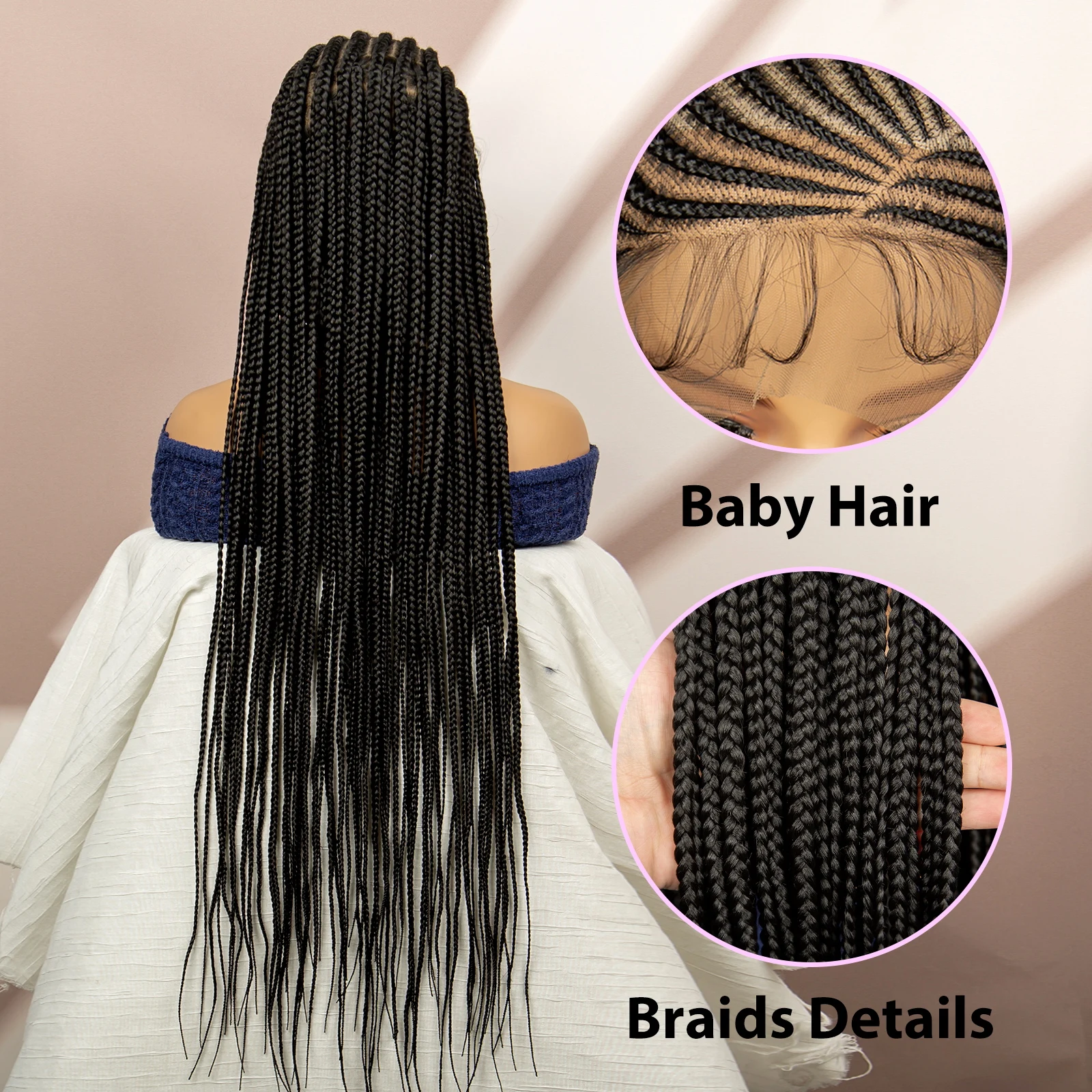 Synthetic Full Lace Cornrow Braided Wigs Box Braided Wigs Goddess Braids Wigs for African Women Afro Wigs with Baby Hair