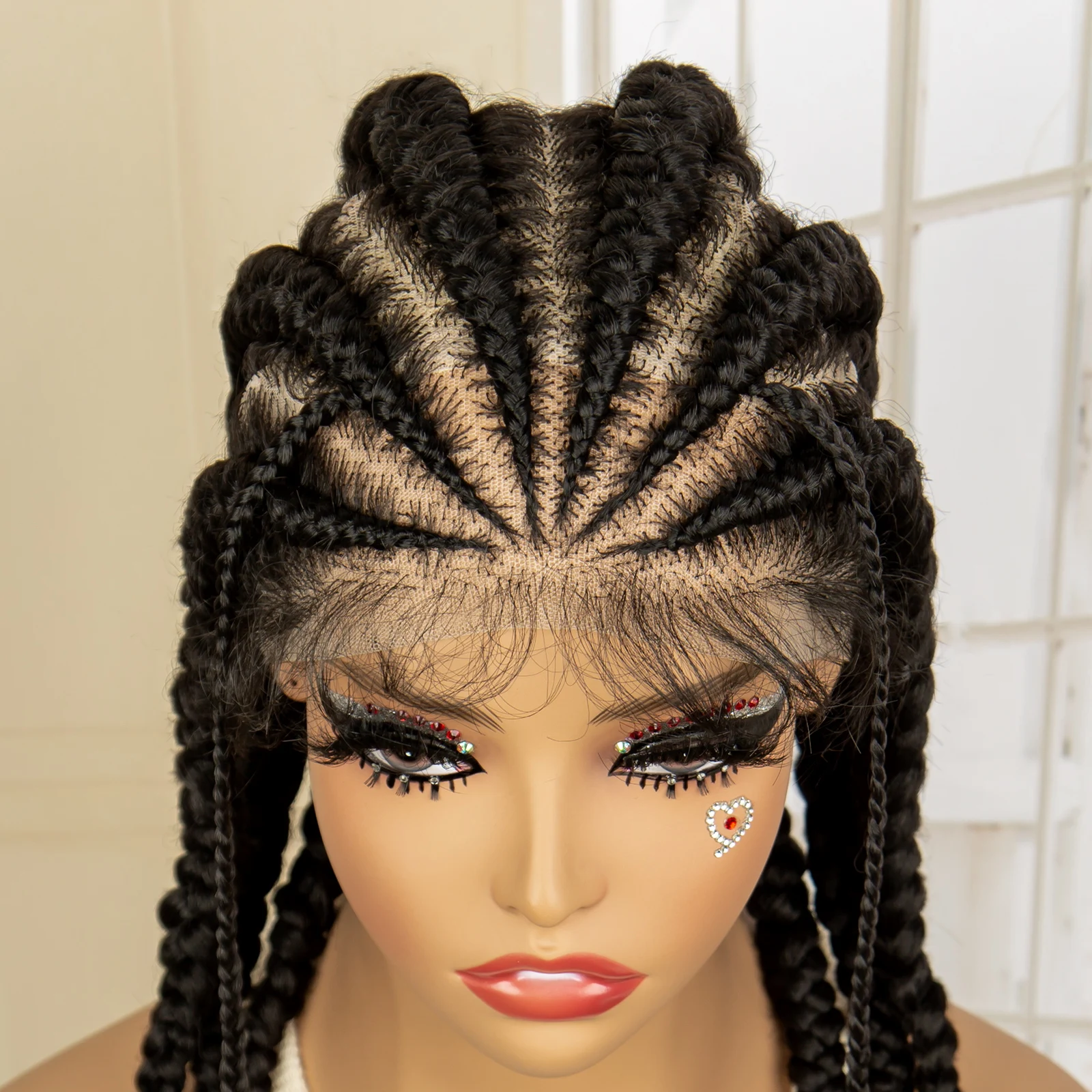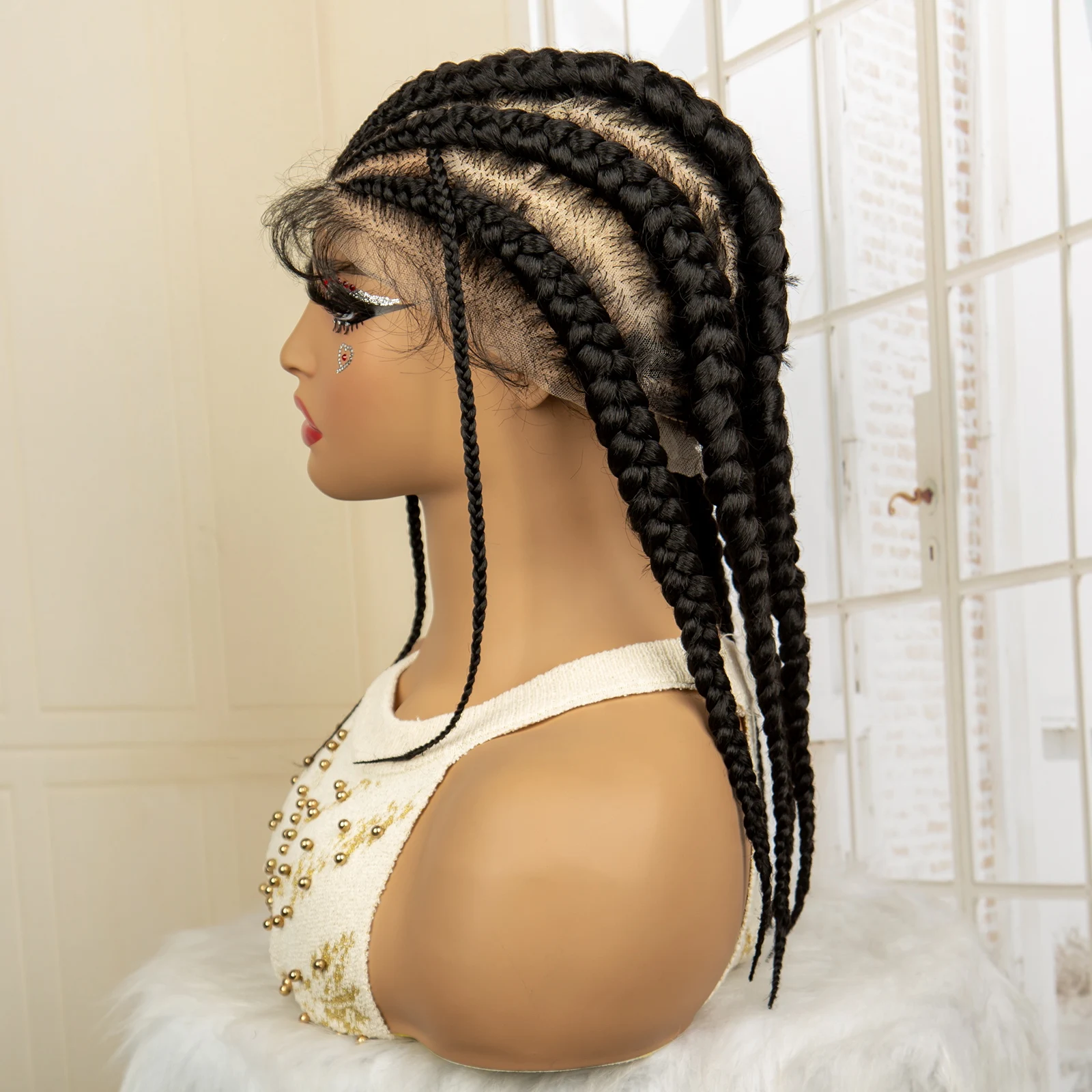 Synthetic Full Lace Cornrow Braided Wigs with Baby Hair for Black Women Lace Frontal Twist Braids Wig Box Braiding Wig