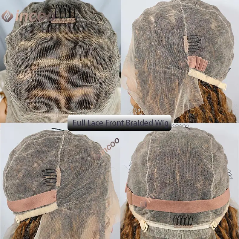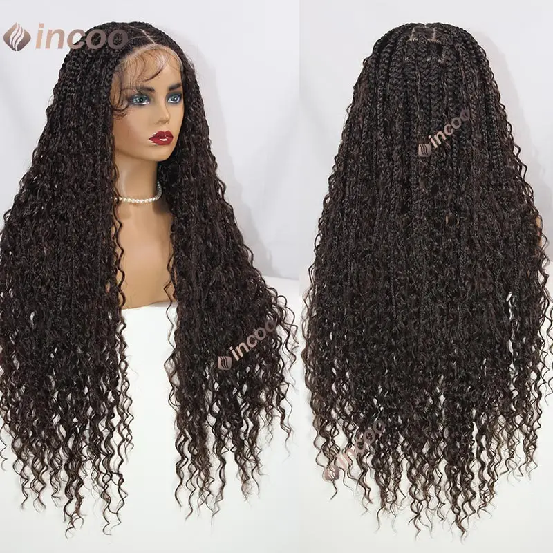 Synthetic Full Lace Front Knotless Box Braided Wigs for Black Women Boho Lace Frontal Braiding Hair Wig with Curly Braids Wig