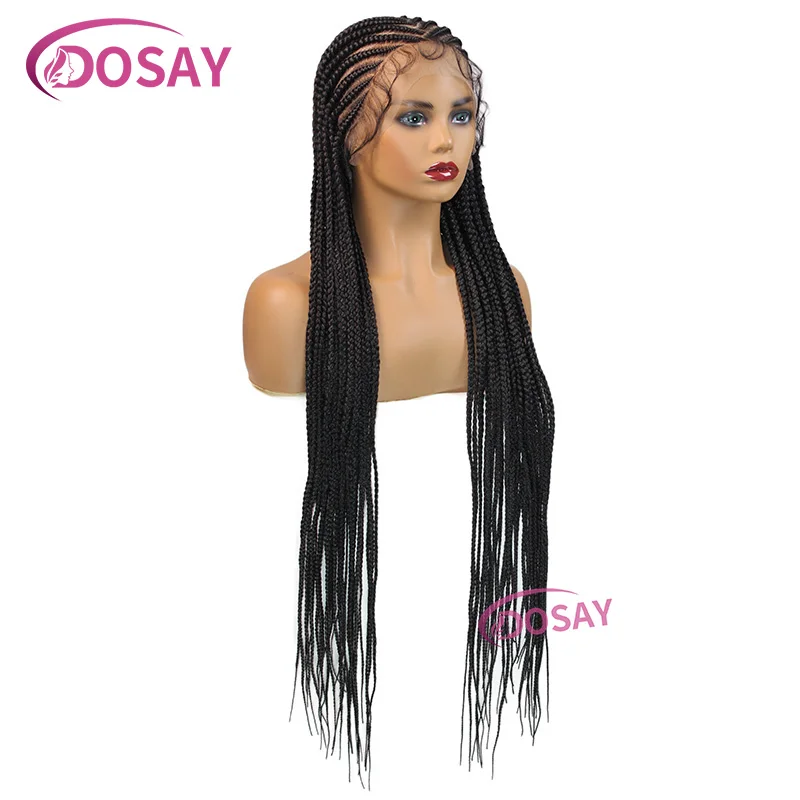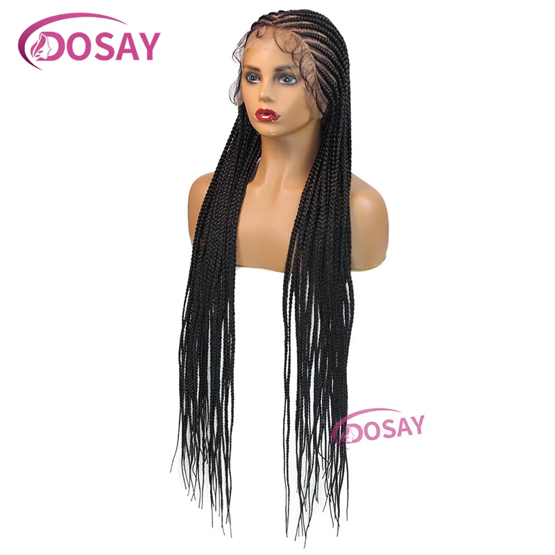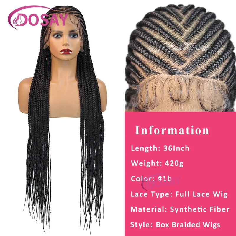 Synthetic Full Lace Front Wigs for Black Women Cornrow Box Braid Wig Middle Part Braid Lace Wigs with Baby Hair 36 Inch