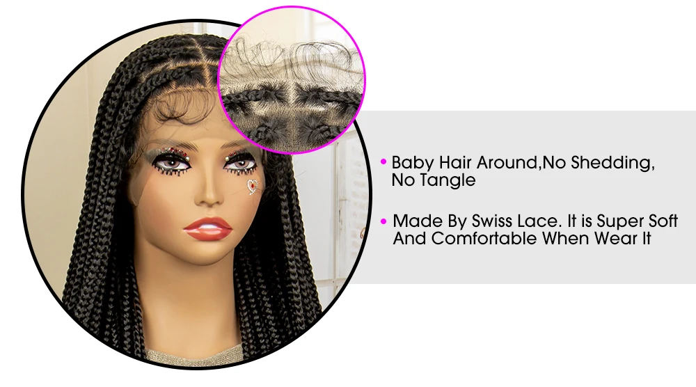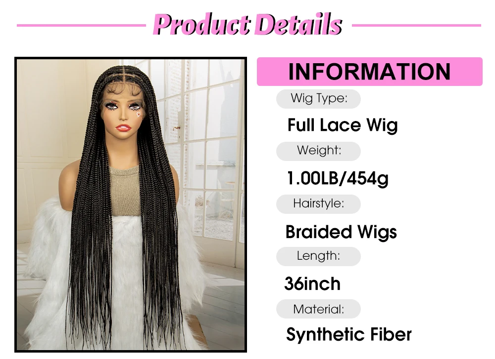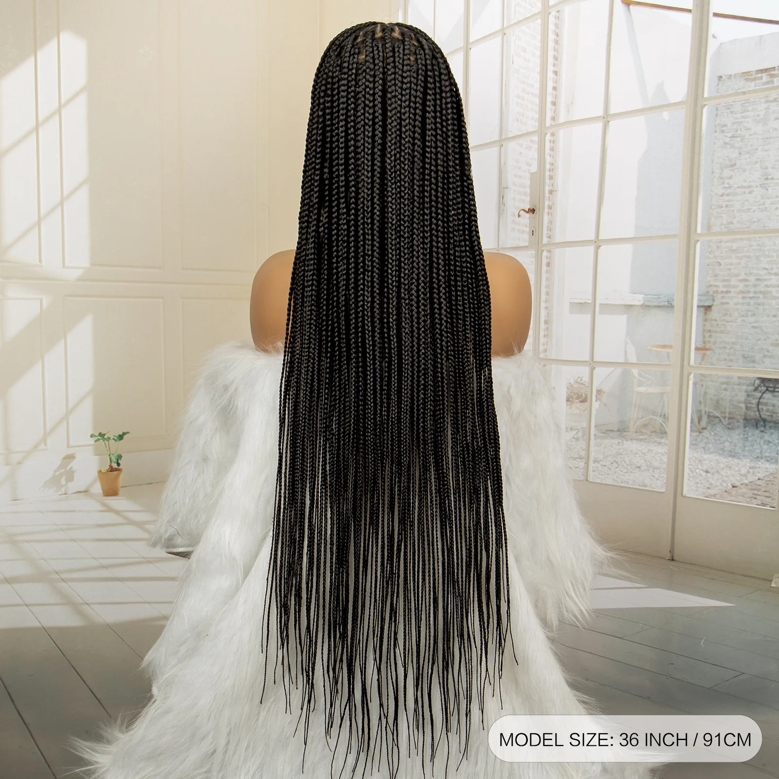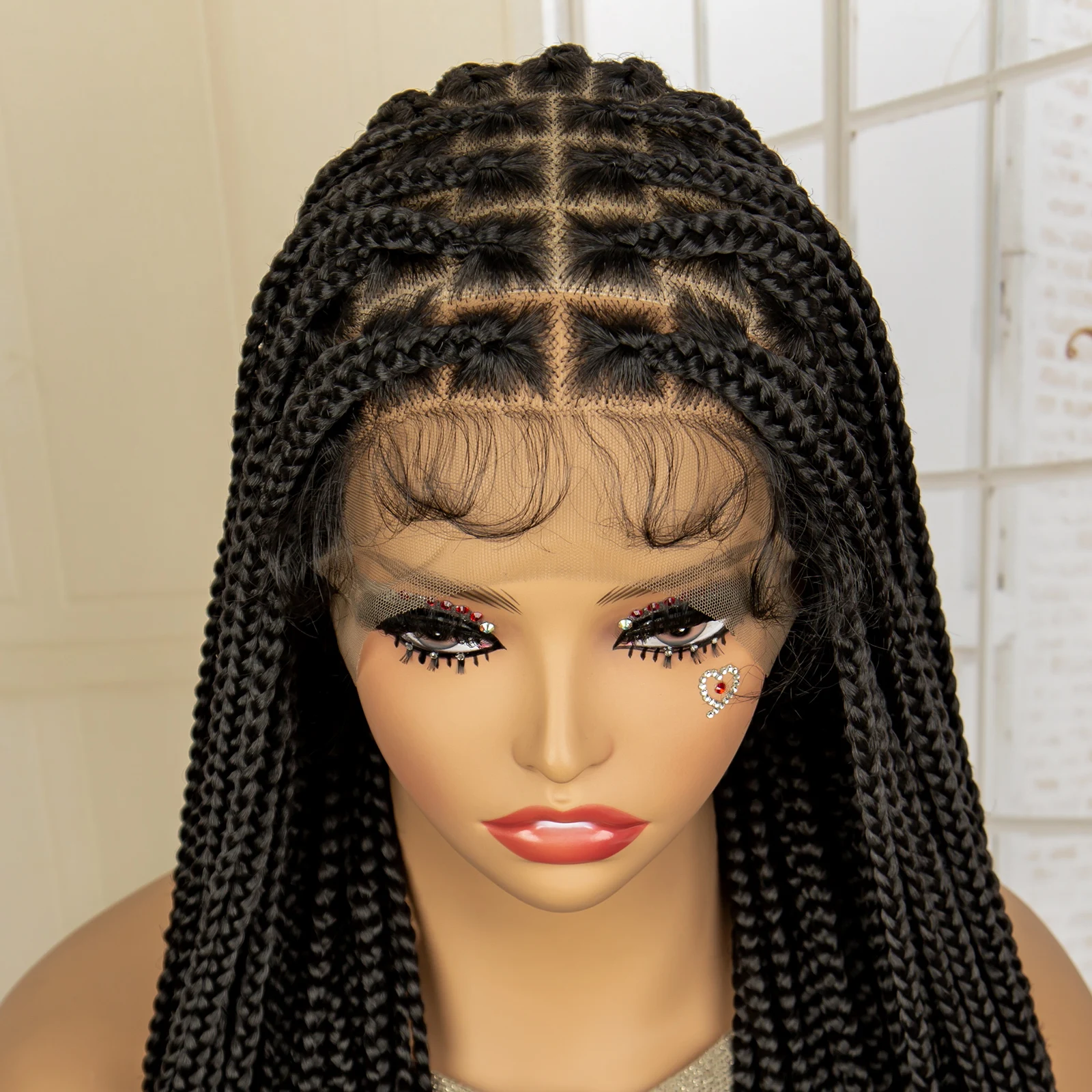 Synthetic Full Lace Knotless Box Braided Wigs for Black Women 36 Inches Lace Frontal Twist Braiding Wig with Baby Hair