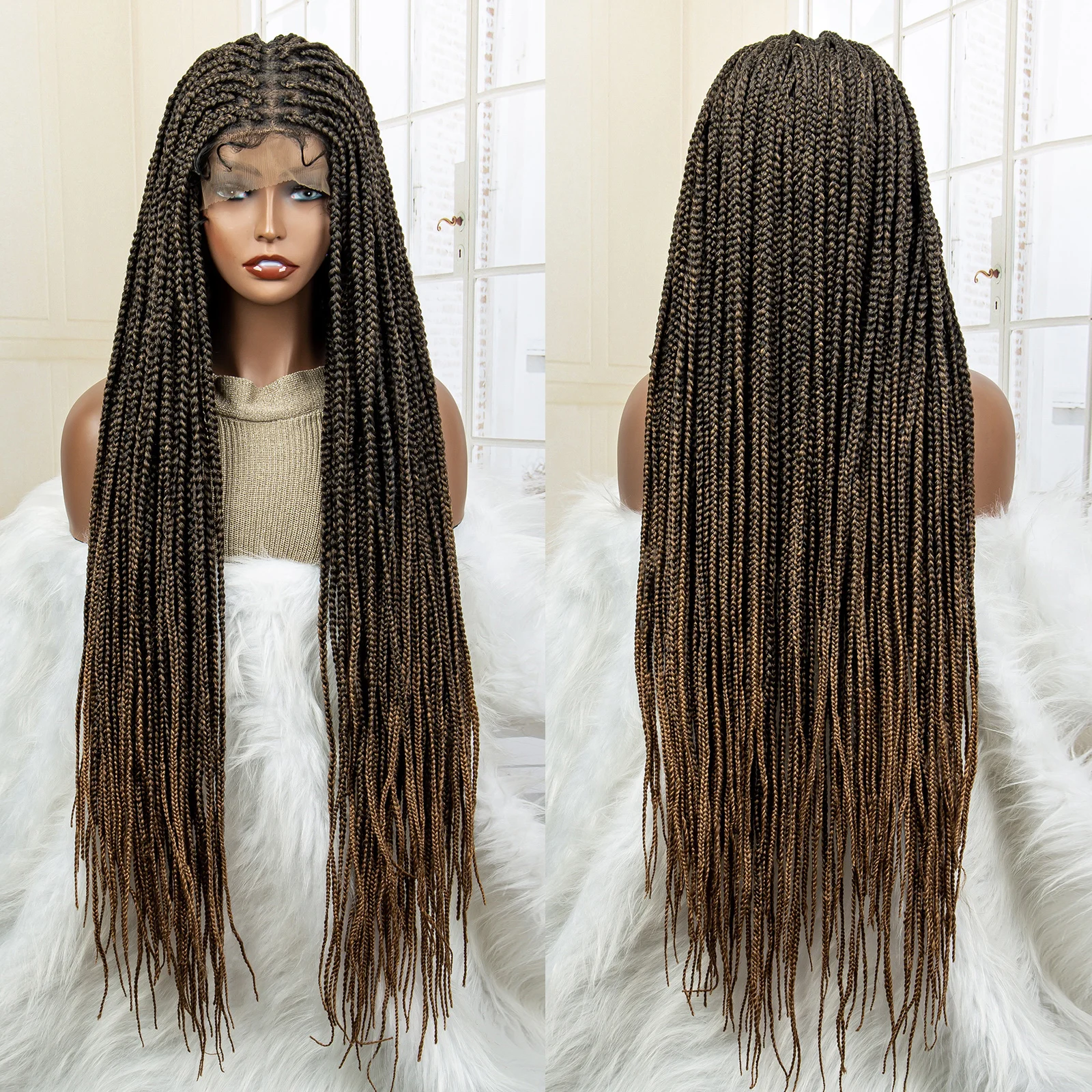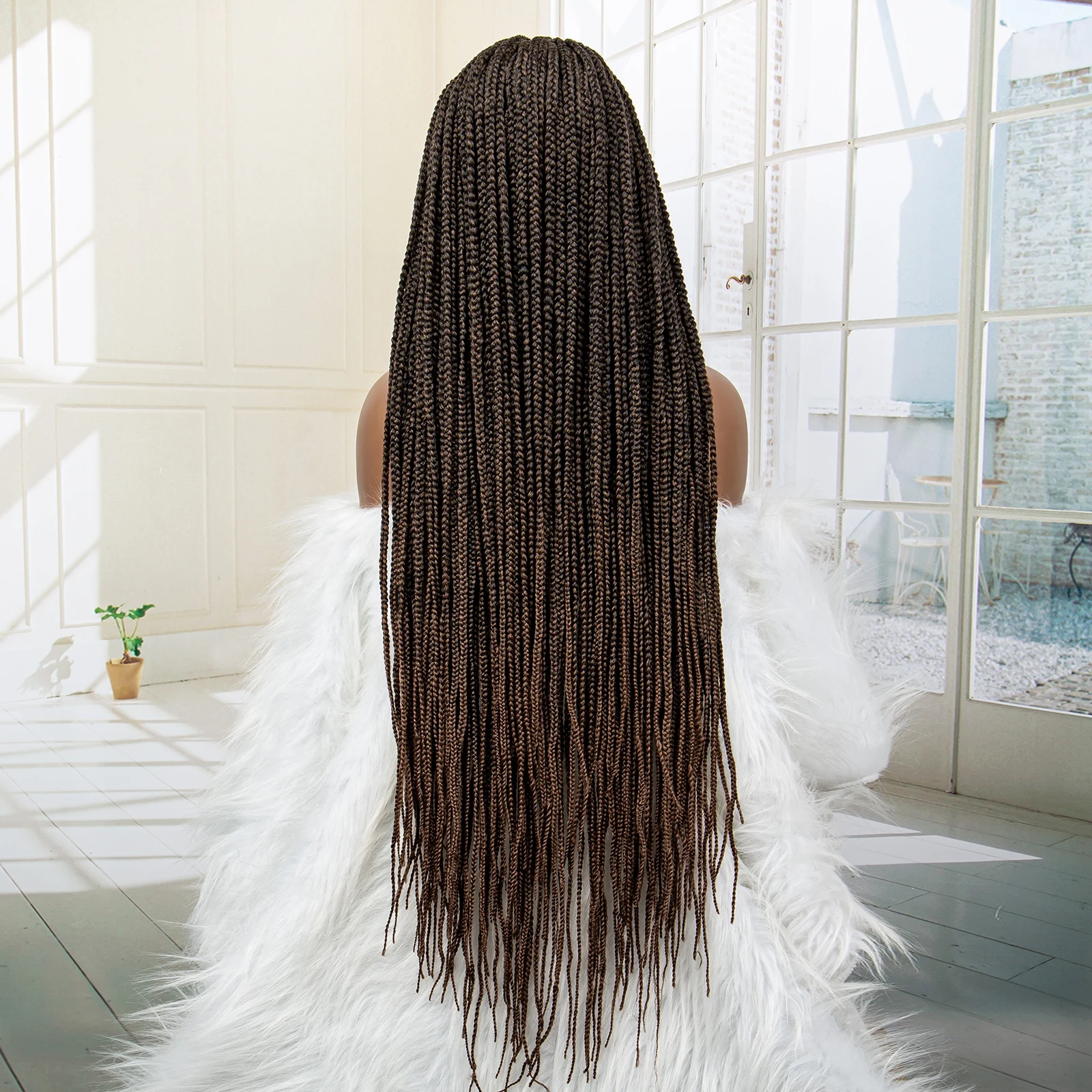 Synthetic Full Lace Knotless Box Braided Wigs with Baby Hair for Women Crochet Box Wig 34 Inches Lace Frontal Braiding Wigs