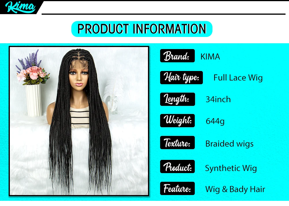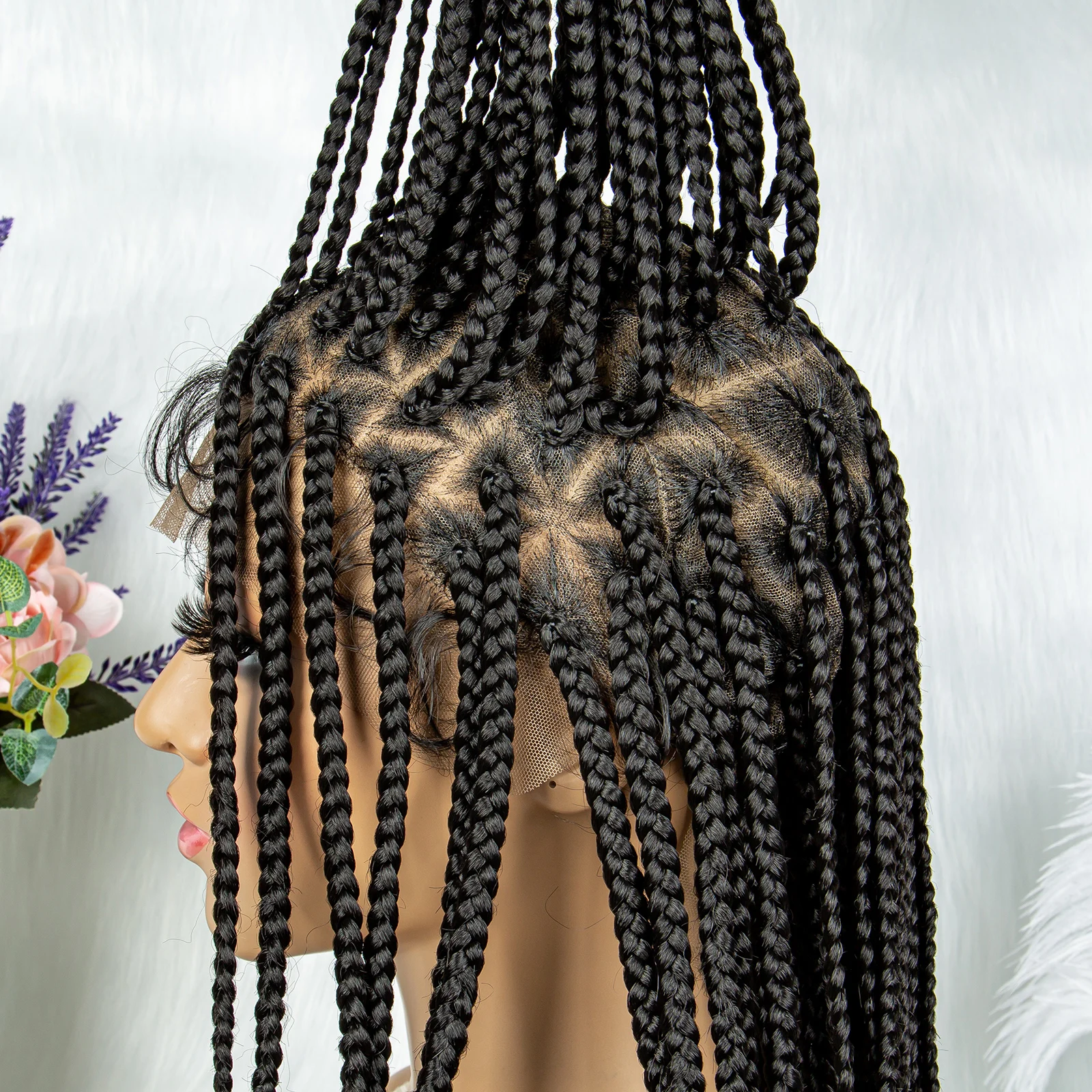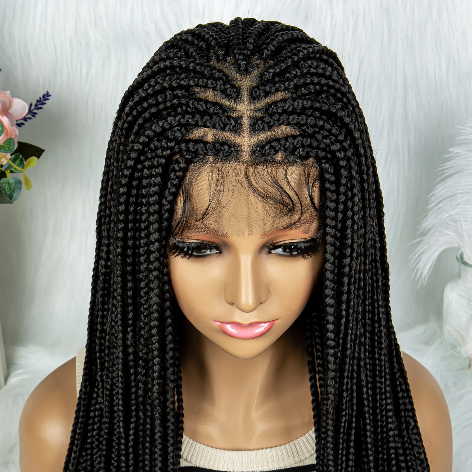Synthetic Full Lace Wig Braided Wigs For Black Women Triangle Box Wig Braid 36 Inches Braiding Hair Knotless Box Braids Wigs
