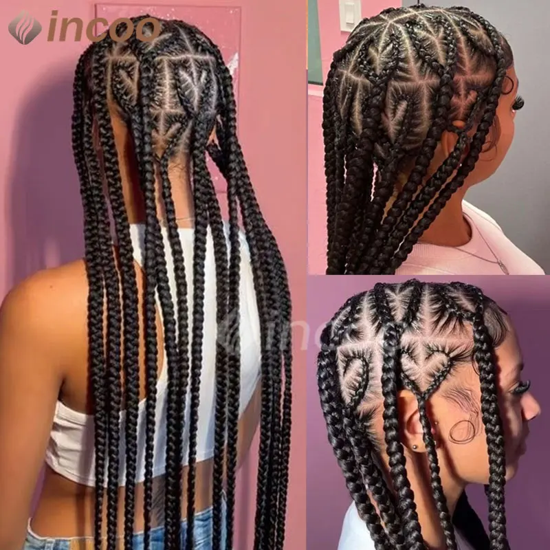 Synthetic Jumbo Braided Wigs Heart Shaped Knotless Full Lace Front Hair For Braiding Crochet Dreadlocks Black Women Knotless Wig