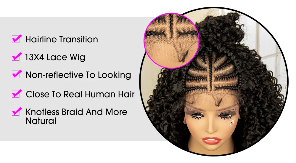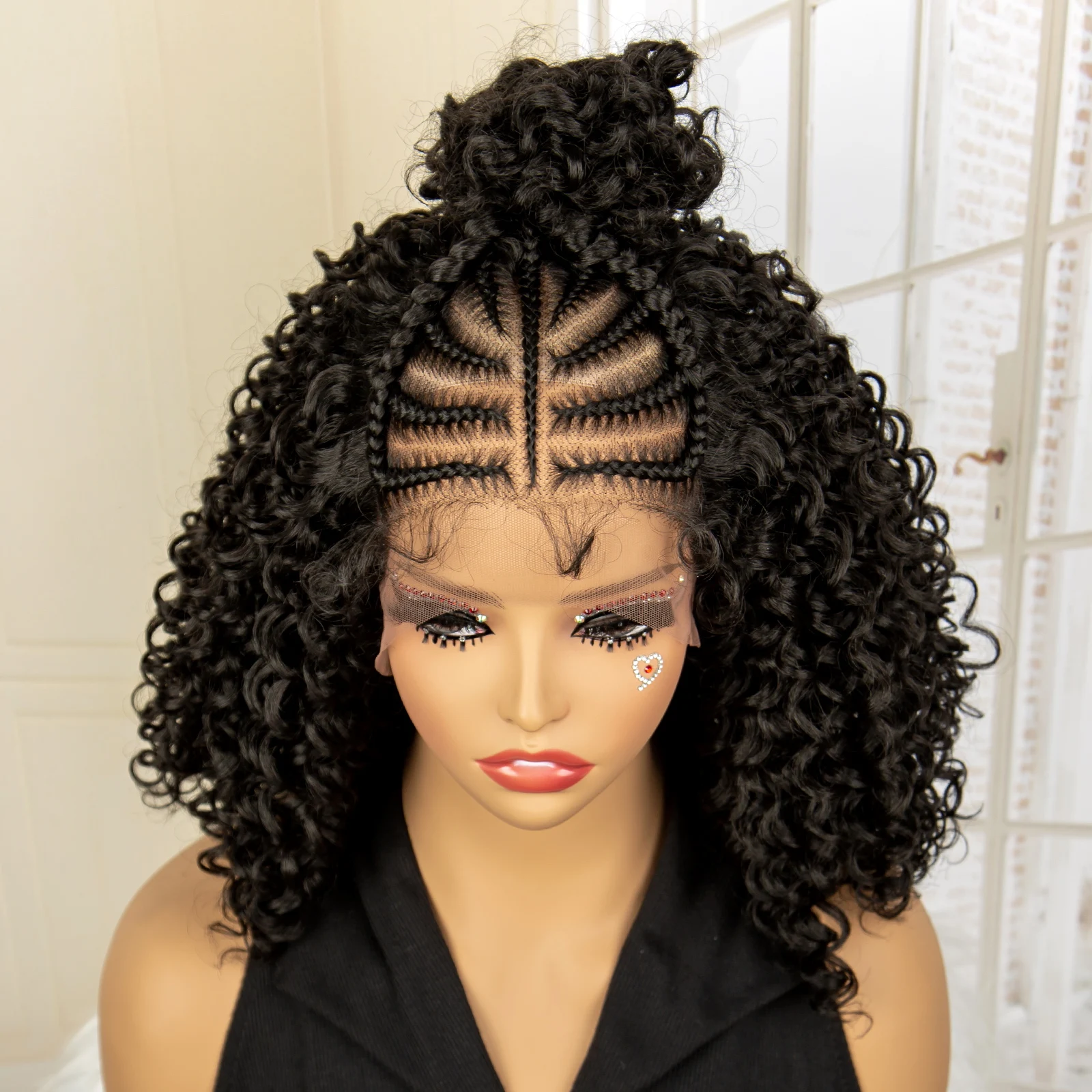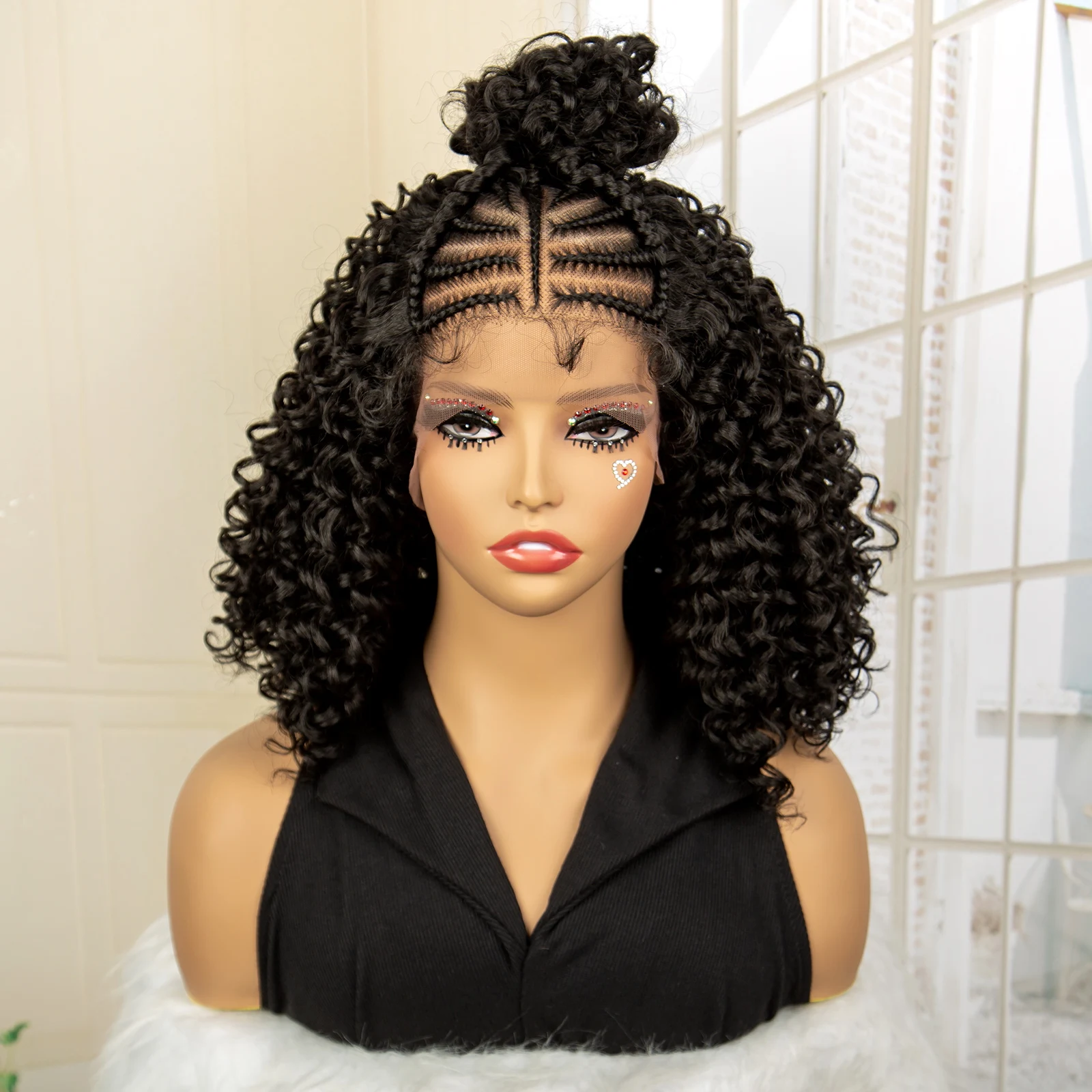 Synthetic Kinky Curly Hair Wigs 13x4 Lace Frontal Braided Wigs Curly Bob Wigs with Buns for Afro Black Women with Baby Hair