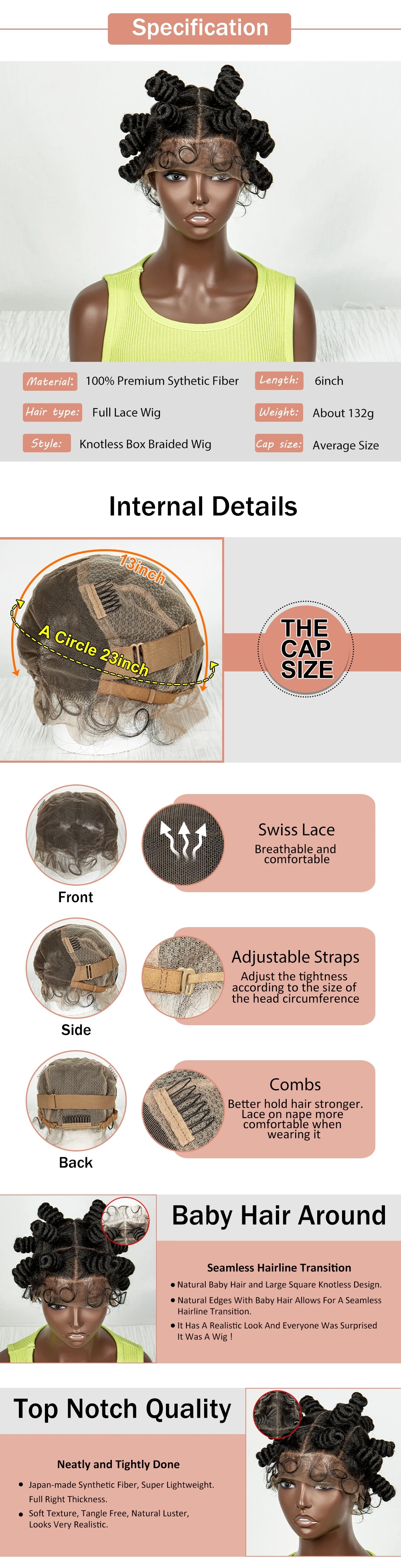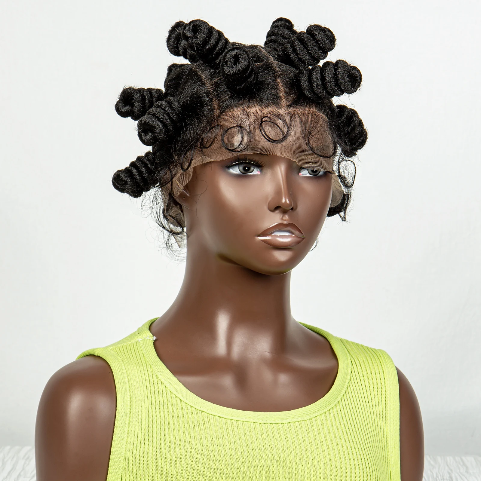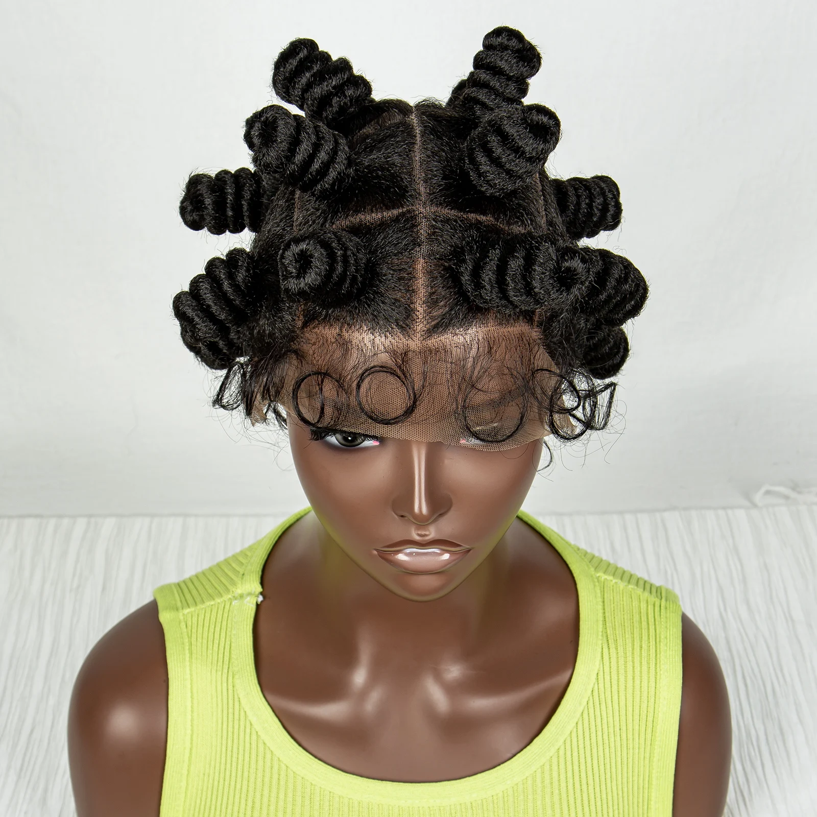 Synthetic Knotless Handmade Bantu Braided Wigs Full Lace Colored Braided Lace Wig African Braiding Hair Wig for Black Women