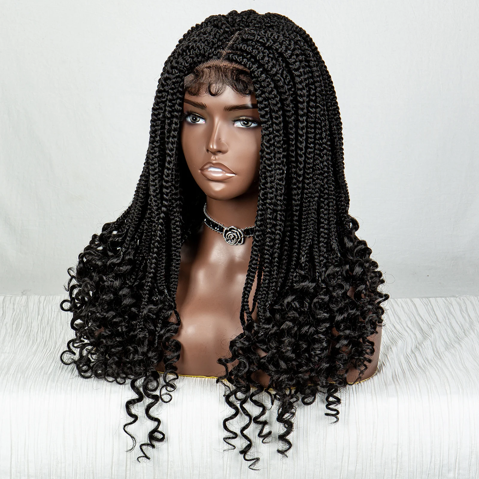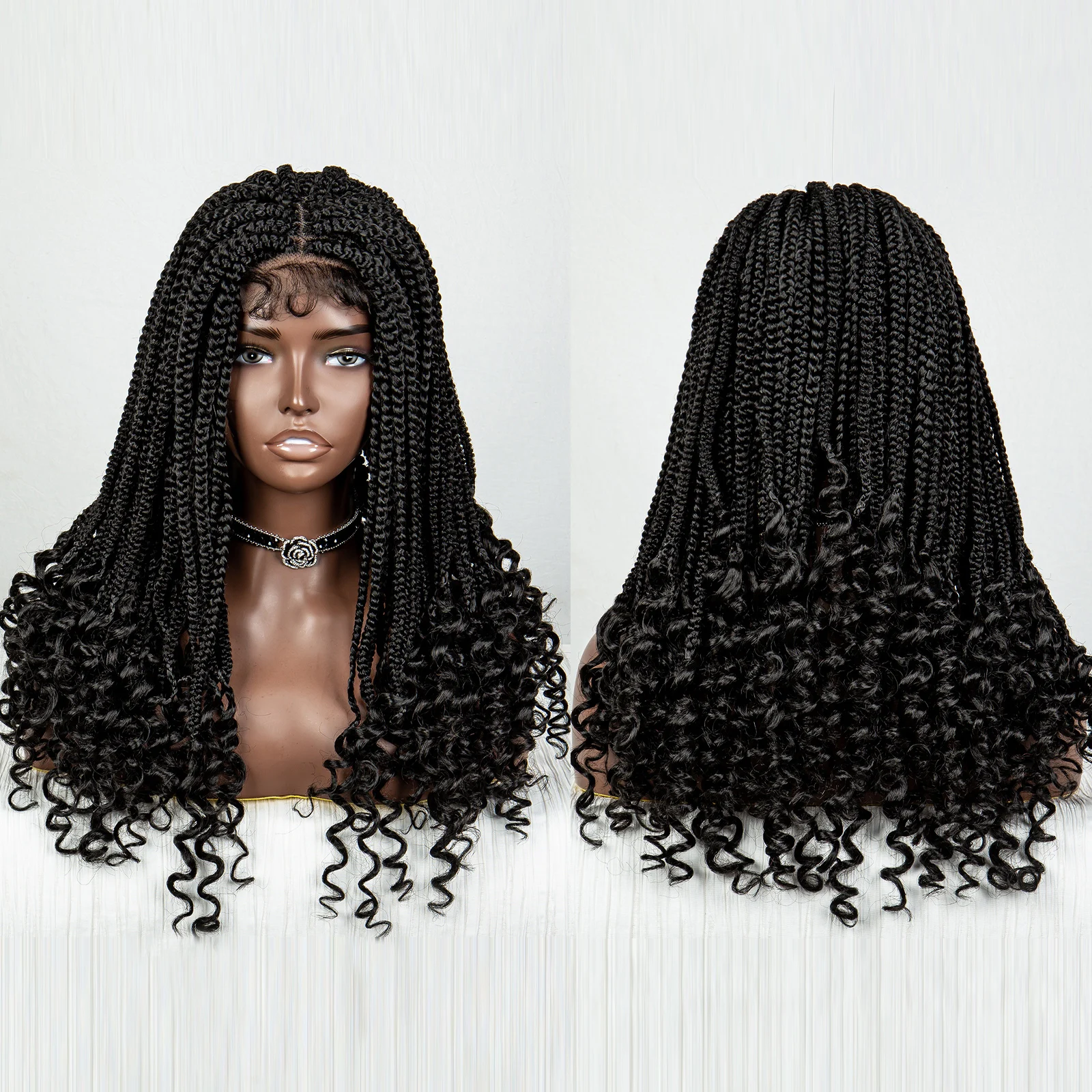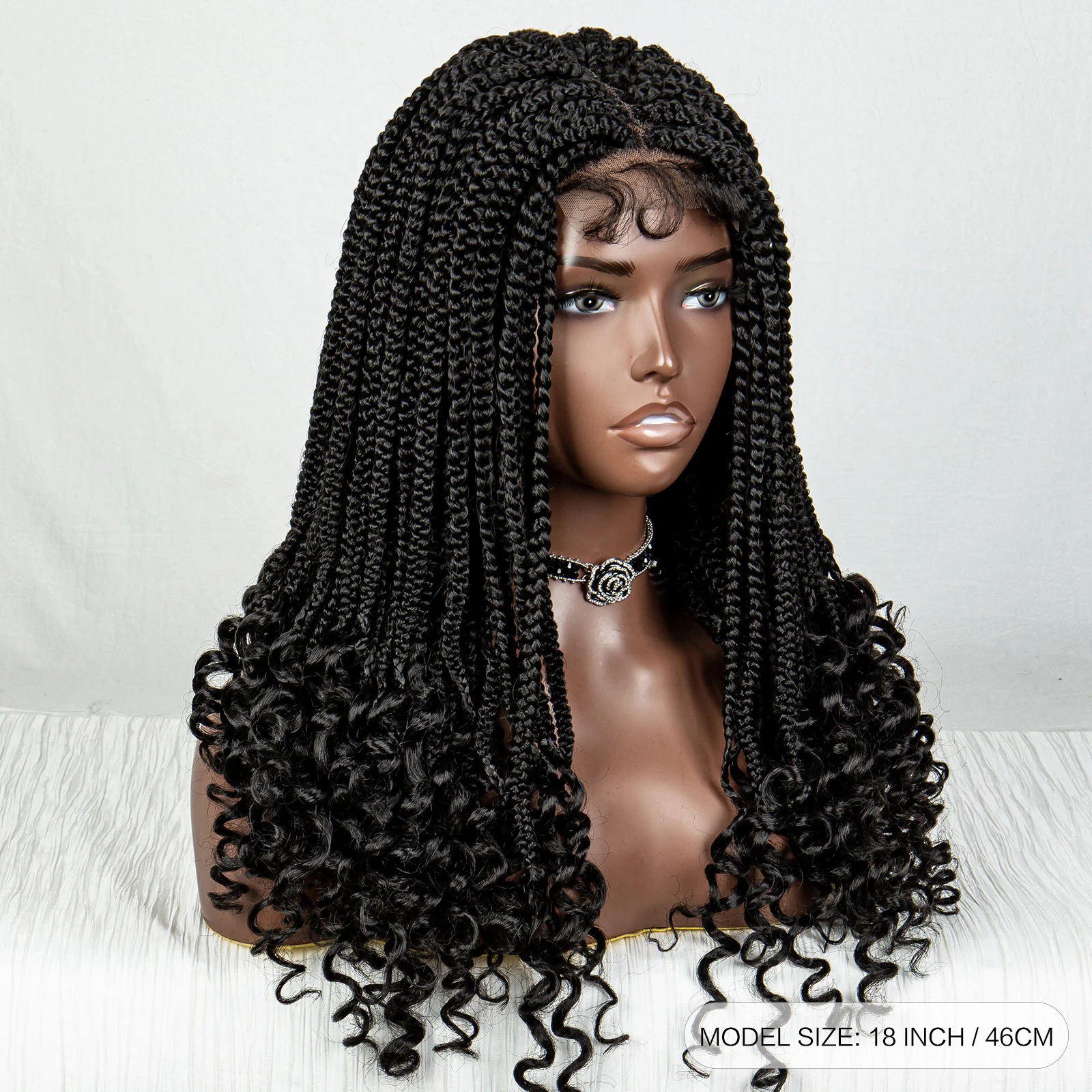 Synthetic Lace Braided Wigs for Black Women 18 Inch Straight/Curly Knotless Box Braiding Wig with Baby Hair Cornrow Braids Wigs
