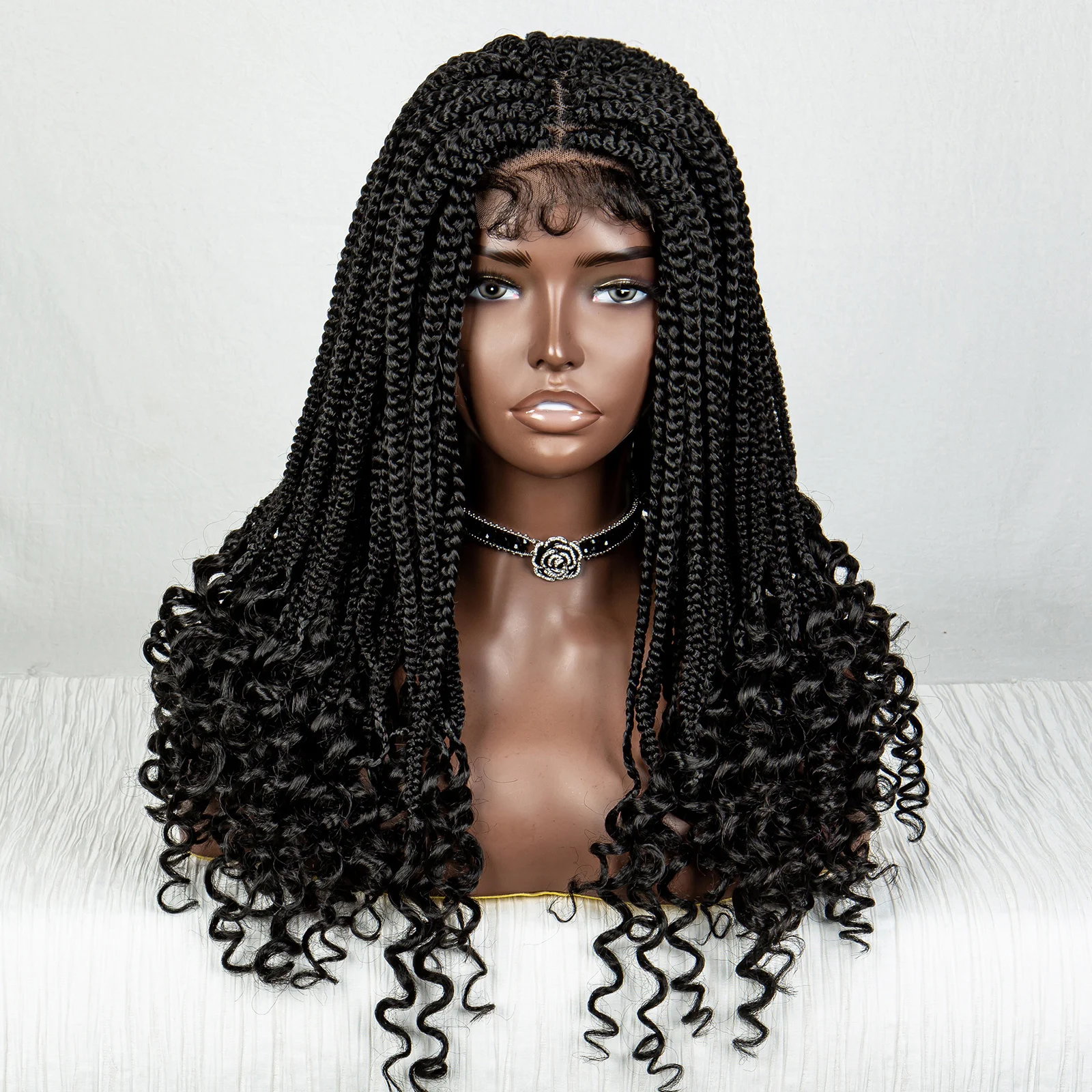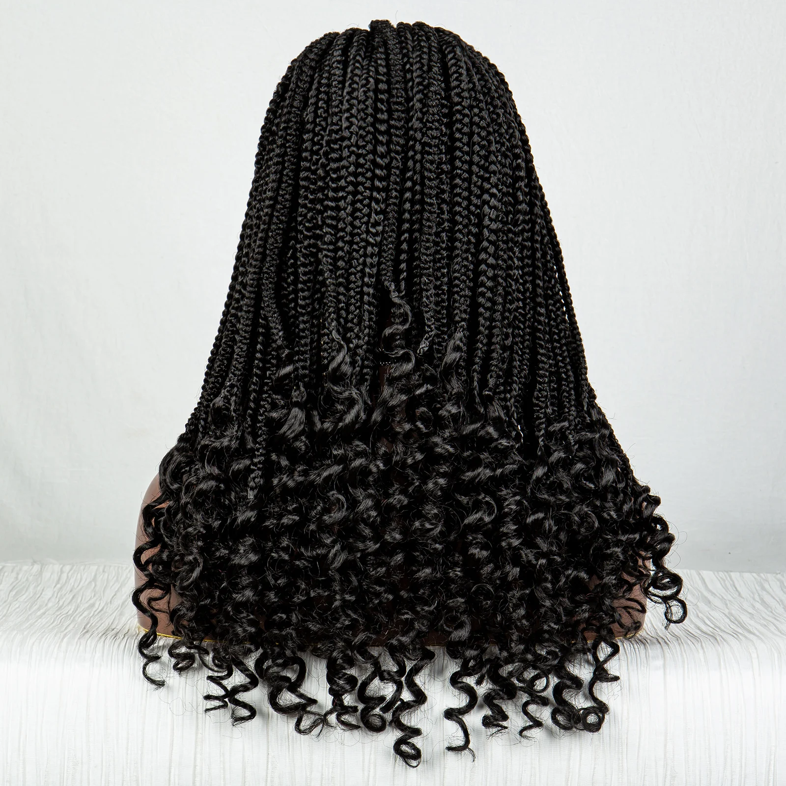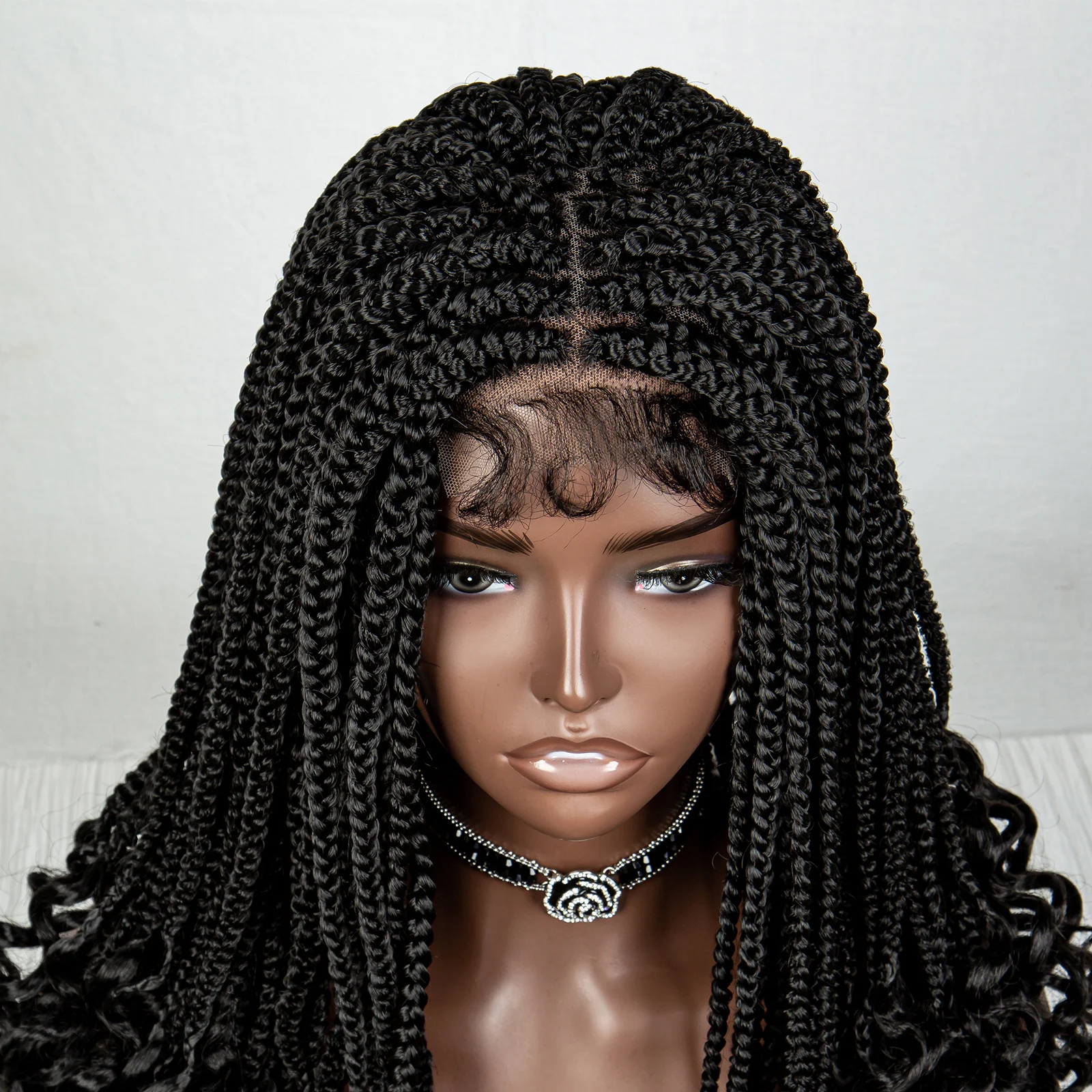 Synthetic Lace Braided Wigs for Black Women 18 Inch Straight/Curly Knotless Box Braiding Wig with Baby Hair Cornrow Braids Wigs